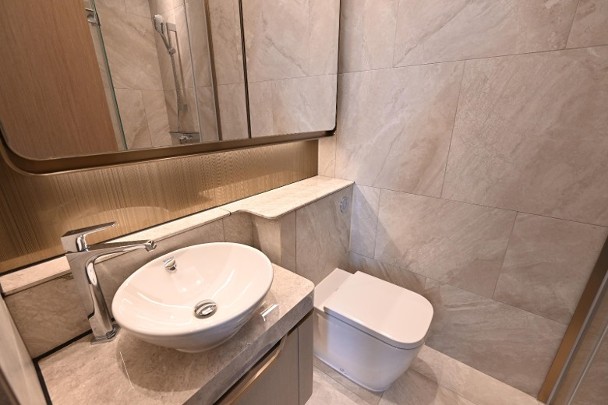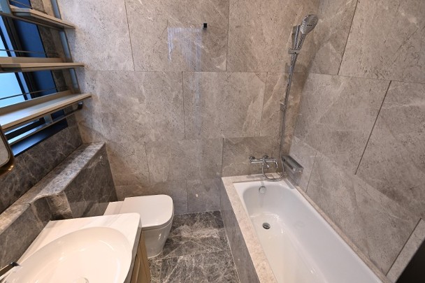 其中一個無改動的現樓示範單位,為低座A座3樓B單位,實用面積649方呎,屬三房一套戶型。客飯廳布局呈長方形,設有開放式廚房。主人睡房設衣帽間,連接22方呎露台,其餘兩間睡房亦方正實用。