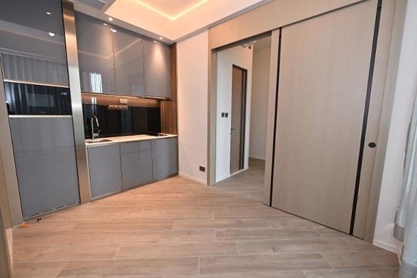 另一個無改動的現樓示範單位為低座A座3樓C單位,實用面積303方呎,屬一房戶型,客廳同樣設開放式廚房,睡房連接22方呎露台。