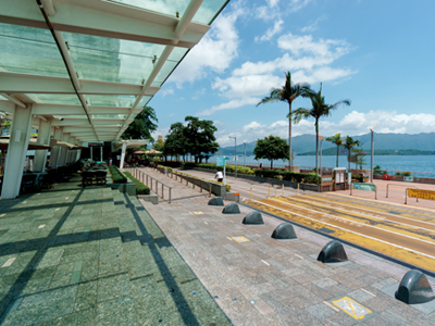 白石角海濱長廊上的露天茶座景色優美、休閒寫意,旁邊設有單車徑。
