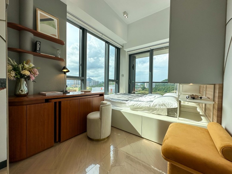 上述單位的層與層之間高度有約3.5米,有助提升整體空間感。單位設有銀幕式玻璃幕牆,不但引入天然日光,更可望及開揚的翠綠山景及將軍澳南的市景。該單位會將於周末起對外開放。而項目會在周日(2日)發售26伙,折實售價由372.2萬元起。發展商指,新買家更可享有全屋度身訂造家具組合的禮遇。