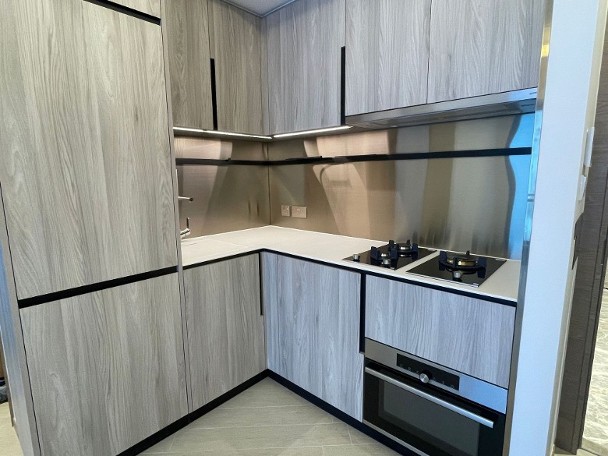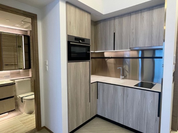 另一個無改動示範單位以第1座8樓A02室為藍本,實用面積339方呎,一房間隔,長形客廳方便擺放傢俬,連接38方呎三合一露台。廚房採開放式設計,睡房與客廳同向,間隔方正實用。