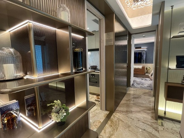 該單位採遊艇及海洋作為設計概念,進入單位,經過走廊,到達客廳及飯廳。客廳設有大玻璃窗,可引景入戶及增加採光。而飯廳則擺放足夠六人使用的圓形餐枱。