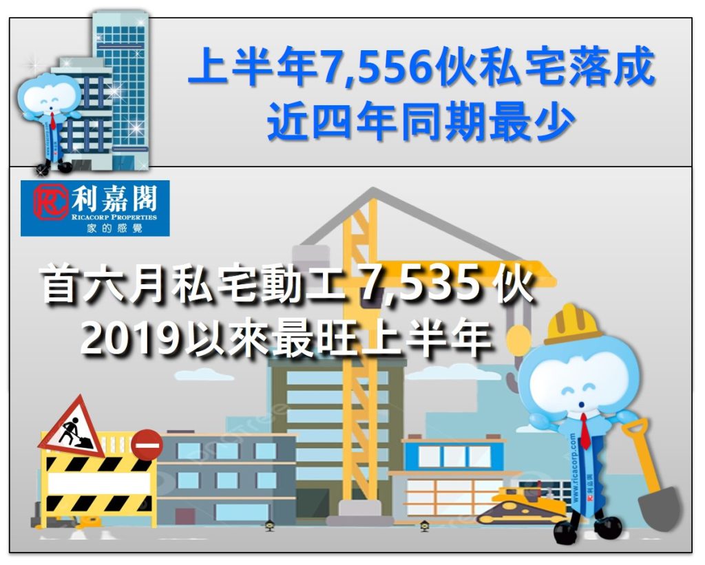 六月私宅動工量2,579伙 19個月新高 上半年達7,535伙 近5年同期最旺