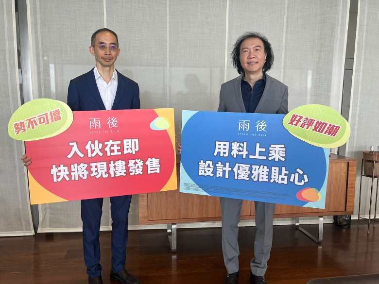 該公司主席及首席執行官陳文輝(右)表示,已邀請兩位知名驗樓師檢測單位,評分不俗,故對交樓質素具有信心。他續指,目前已售出的單位平均成交呎價約15,020元,買家不乏區內換樓客。而餘貨單位市值約12億元,將積極部署於入伙階段出售車位,有機會供三房戶買家優先選購。