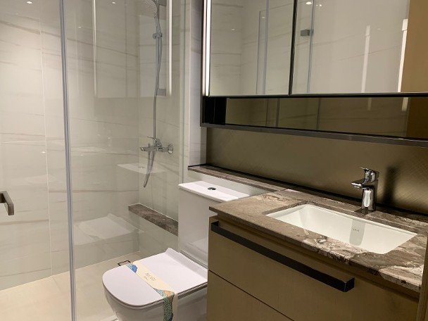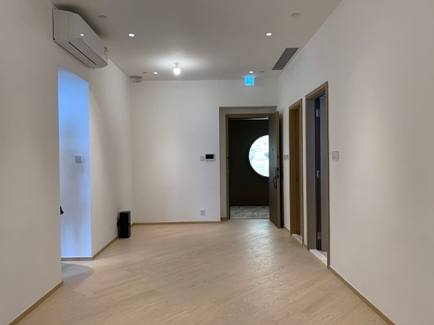 至於另一個兩房無改動示範單位,則以1座15樓F室為藍本搭建,實用面積586方呎。客飯廳外連22方呎露台,梗廚及浴室位於大門左側,主人睡房連接16方呎工作平台,並預留位置放置衣櫃。
