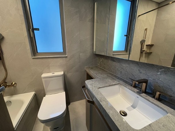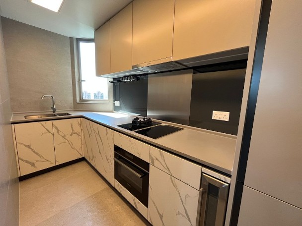 該單位客飯廳方正,不設露台及工作平台,備有大玻璃窗,可眺望大欖一帶的海景。廚房採傳統梗廚設計,以長形開則,備有通風窗,並內設儲物室。三間睡房與客廳同向,景觀相若,主人睡房預留有衣櫃位,連接套廁。
