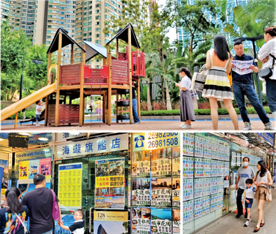 (上圖)九龍站上蓋屋苑吸引不少內地客參觀睇樓;(下圖)各區買家及 租客積極物色入市機會。