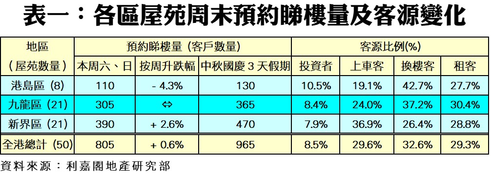 歡度中秋國慶長假 熱盼施政報告減辣 50指標屋苑週末預約睇樓量窄幅爭持