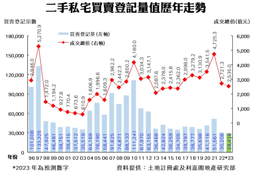 利嘉閣地產研究部主管陳海潮表示,二手私宅買賣登記在今年首季衝高後,即連季回落,本季減辣措施可望成為樓市轉捩點,登記量可望止跌回升;惟全年埋單計數,仍有機會少於3萬宗,恐創1996年有史以來新低,慘過新冠疫情、慘過社會運動、慘過金融海嘯、慘過沙士、慘絕歷史!根據土地註冊處最新數據,2023年第三季全港共錄5,865宗二手私宅買賣登記,較次季的7,534宗挫22%,連跌兩季兼創自2019年首季以來的19季新低。成交總值方面,第三季按季相應跌24%,險守五百億元,錄504.67億元,同創19季最少;季內每宗均價860.5萬元,按季微跌2.5%,為年內次低的一季。