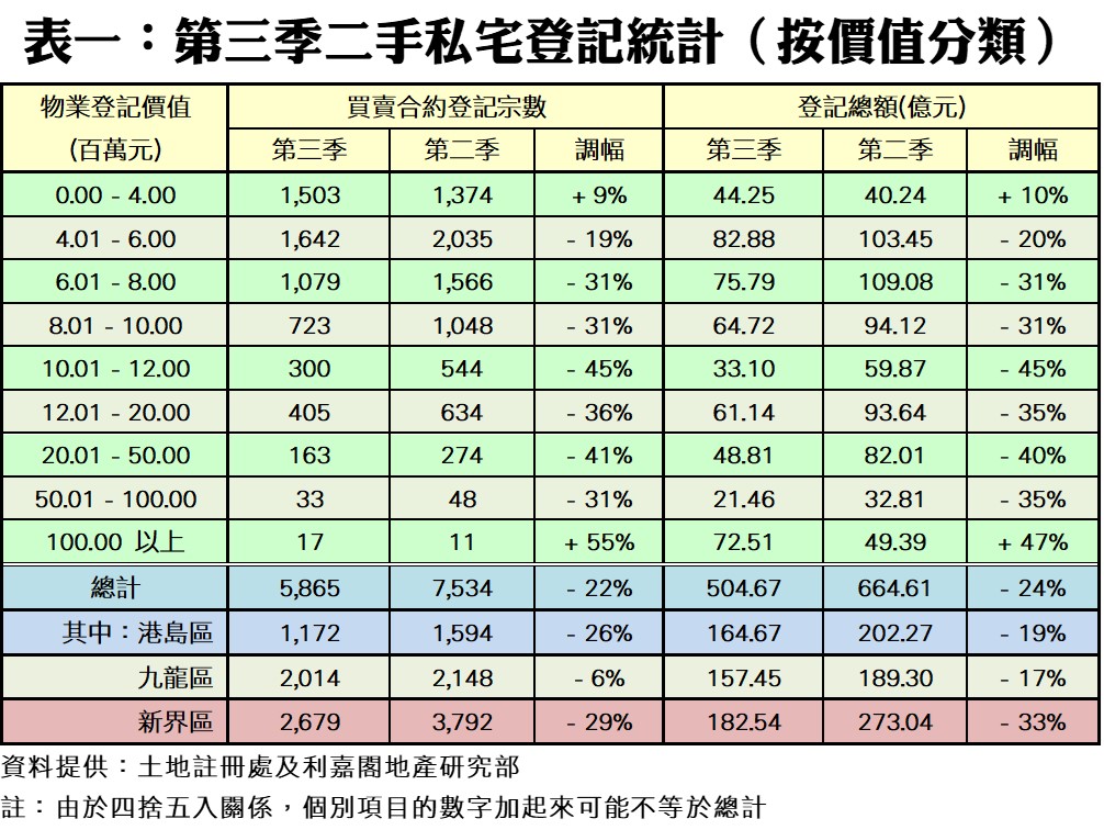 Q3二手私宅登記5,865宗 19季最少 減辣料助Q4止跌回升 全年恐創歷史新低