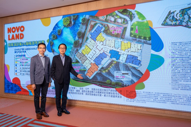 樓市政策將於施政報告後明朗化,發展商着手展開推盤部署,新鴻基地產(00016)副董事總經理雷霆(右)指出,旗下屯門兆康NOVO LAND第2A期,計劃於未來兩周加推壓軸1座單位。而整個系列已累沽逾2,618伙。
