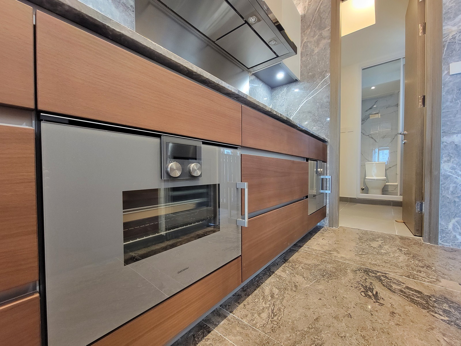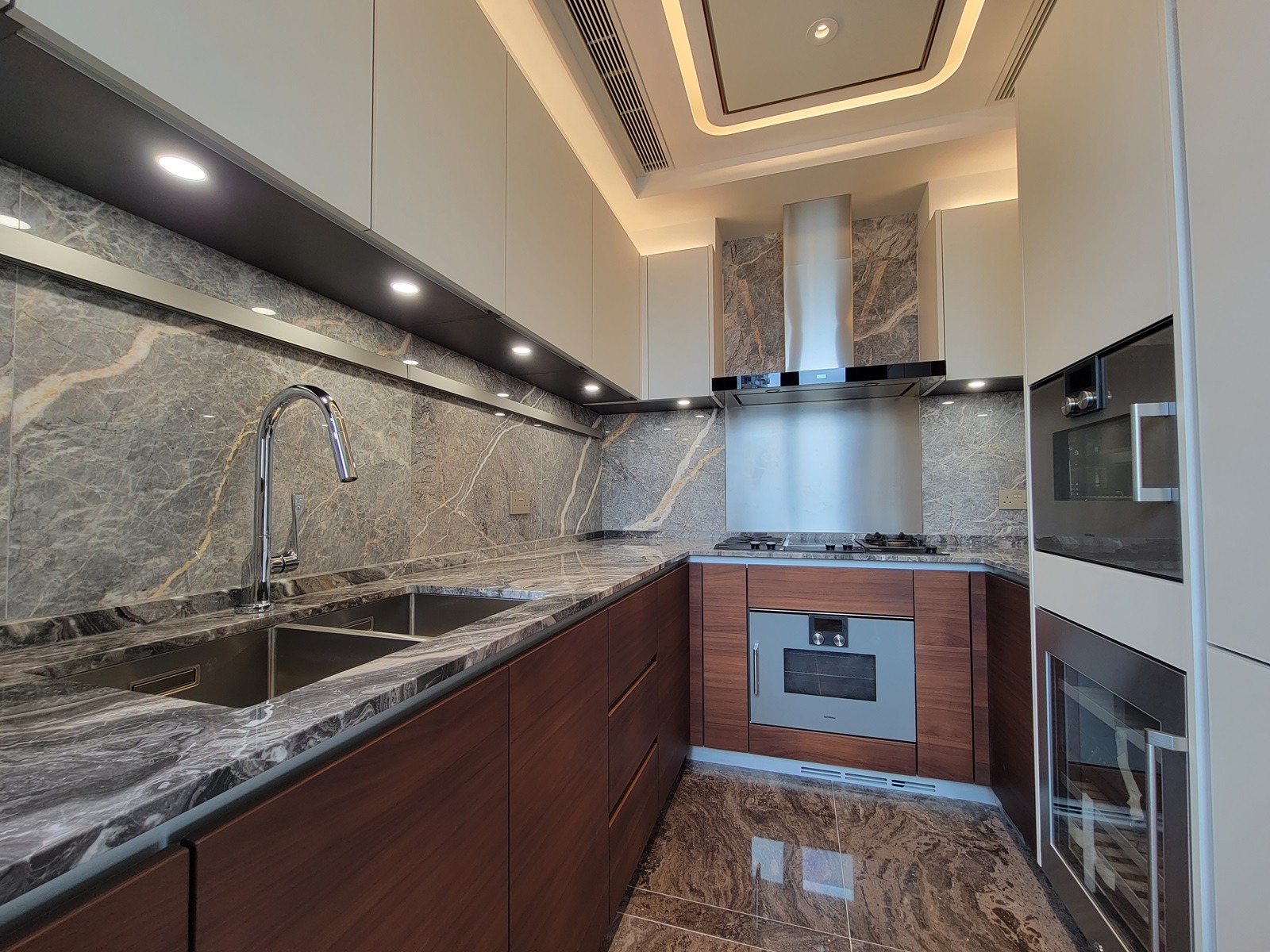 單位設備方面,所有單位均配備如Gaggenau、Kaldewei、Hansgrohe 等歐洲著名品牌設備;廚房亦配備Gaggenau煤氣及電磁煮食爐、洗碗碟機、微波焗爐、蒸爐等,示範單位中的三房全套單位更附設Gaggenau名牌紅酒櫃;另各單位的浴室更配備Panasonic浴室寶。