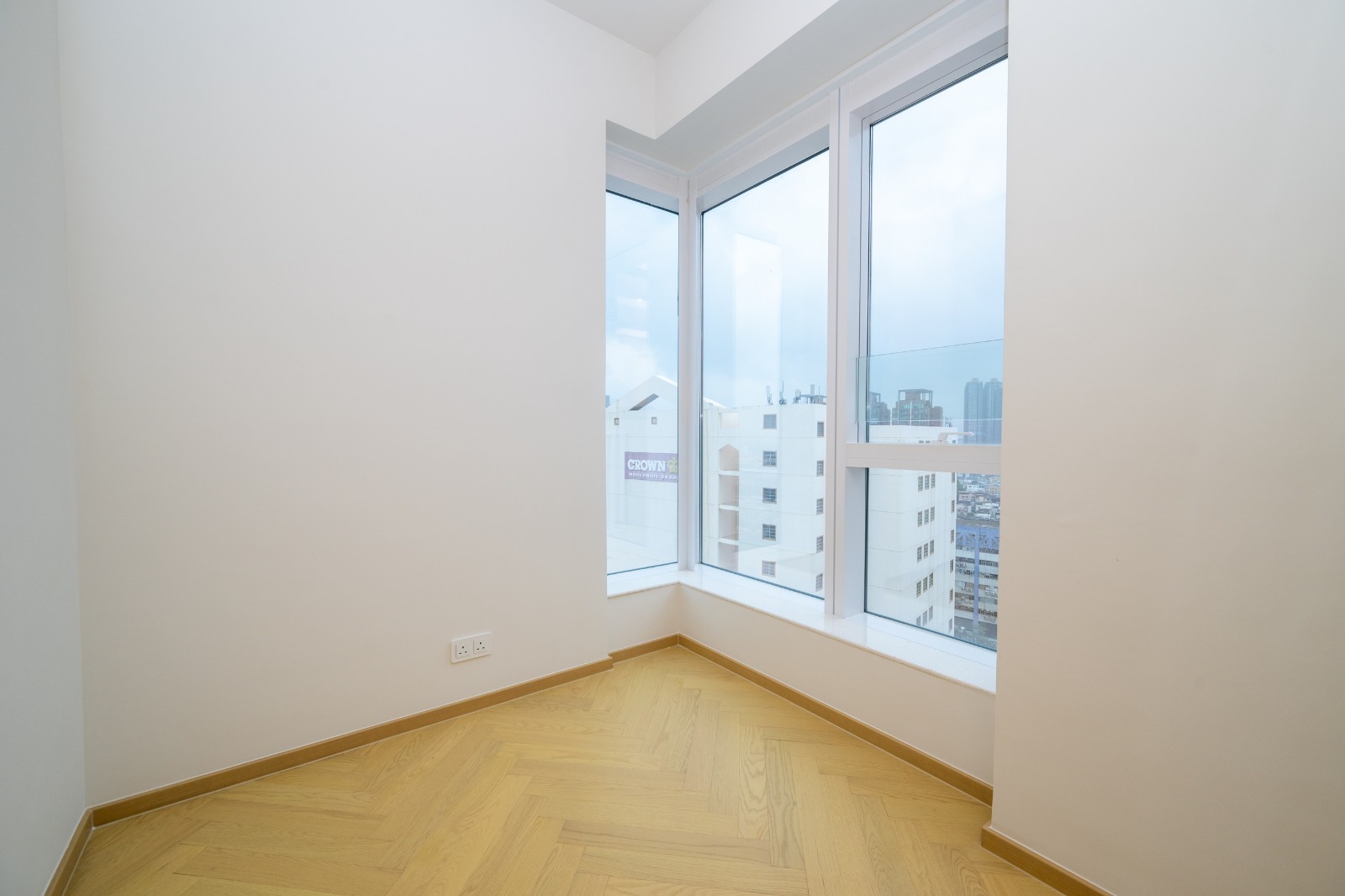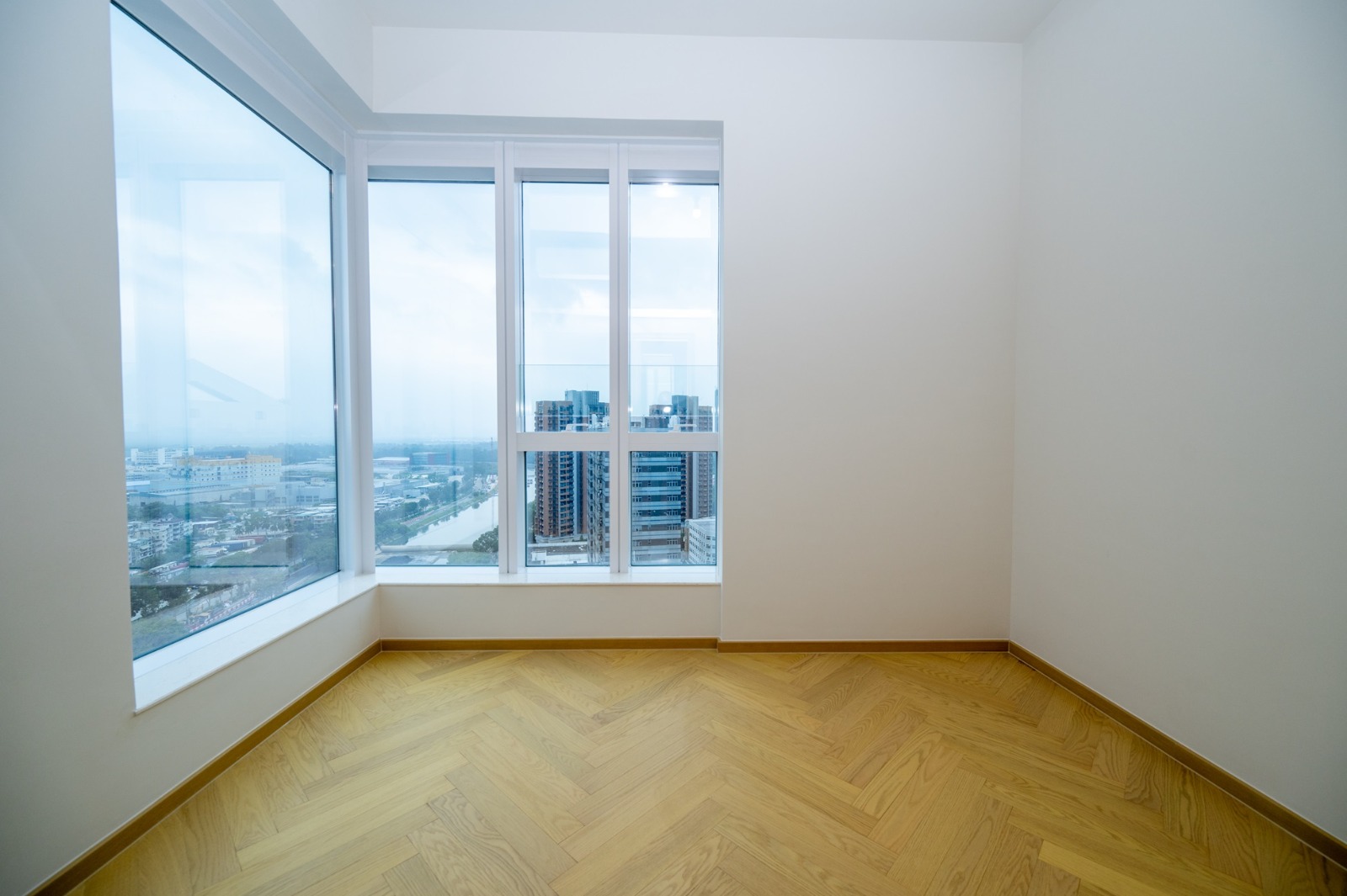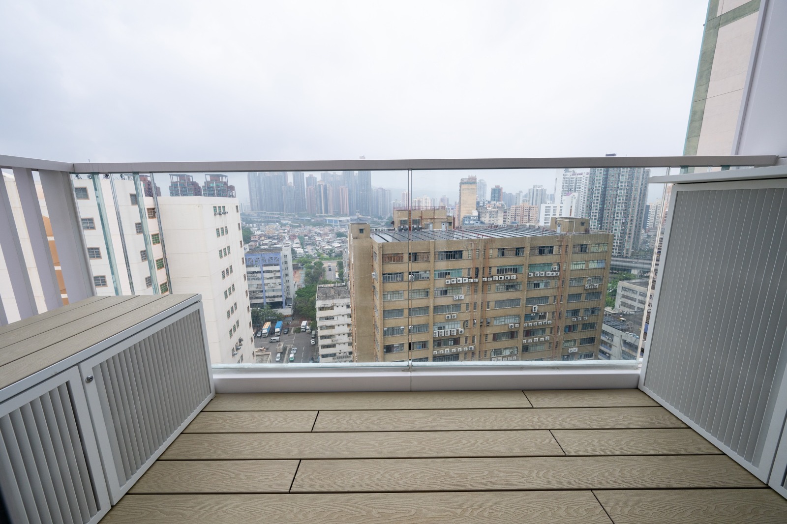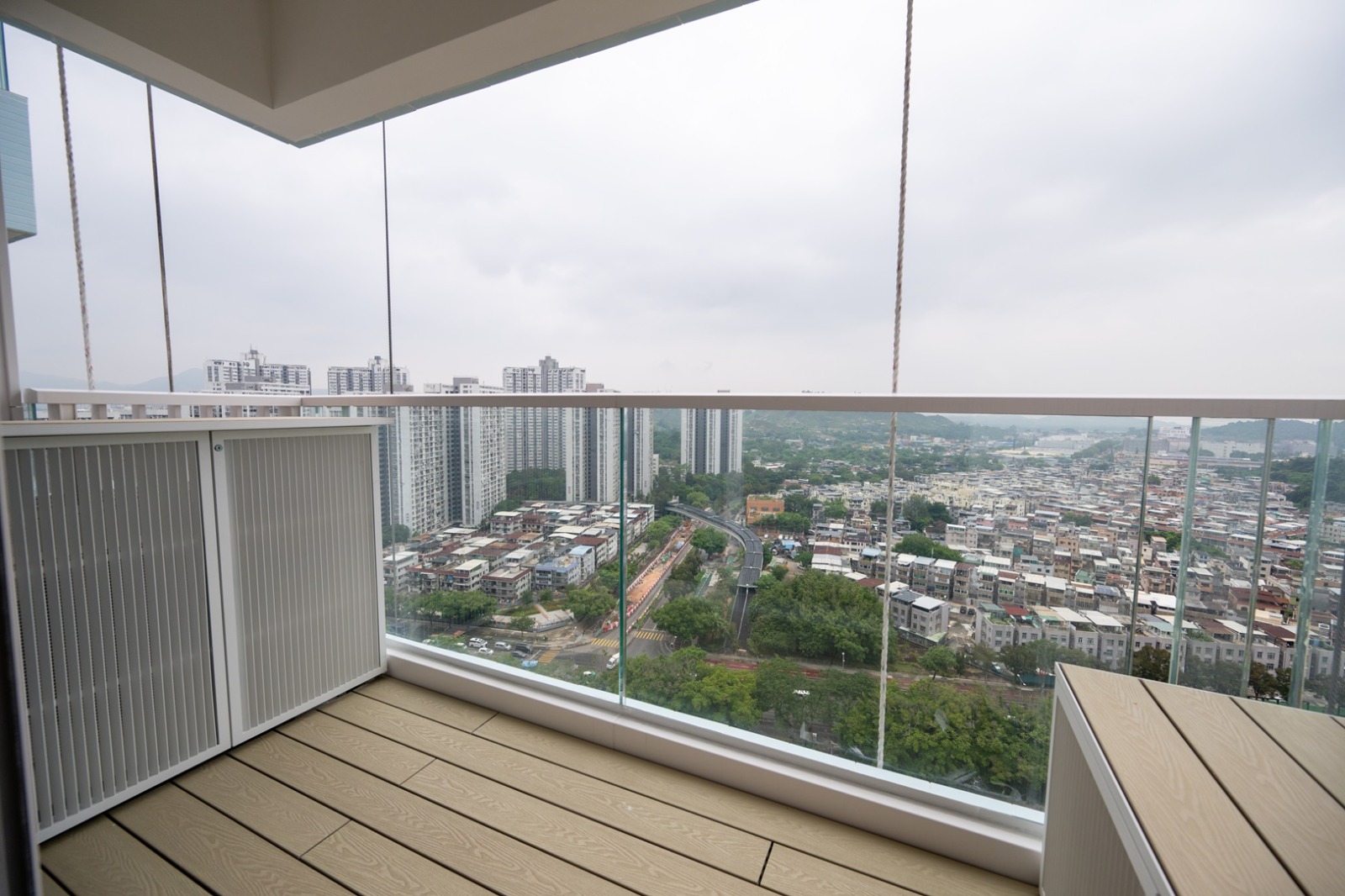 單位大門採用LOCKLY纖幼智慧電子門鎖,多種開鎖方式,為住戶提供高私隱度且便捷的生活享受。單位內的地板亦貼心鋪砌減衝擊噪音墊層,大大降低衝擊所產生的噪音,住戶盡享寧謐安逸的居住環境。單位客飯廳空間寬敞實用,長方形設計讓住戶可隨意放置各種大型傢俬,更以玻璃趟門設計連接室外空間,為屋內提供大量自然光線,延伸室內空間,令客飯廳更顯寬敞明亮。