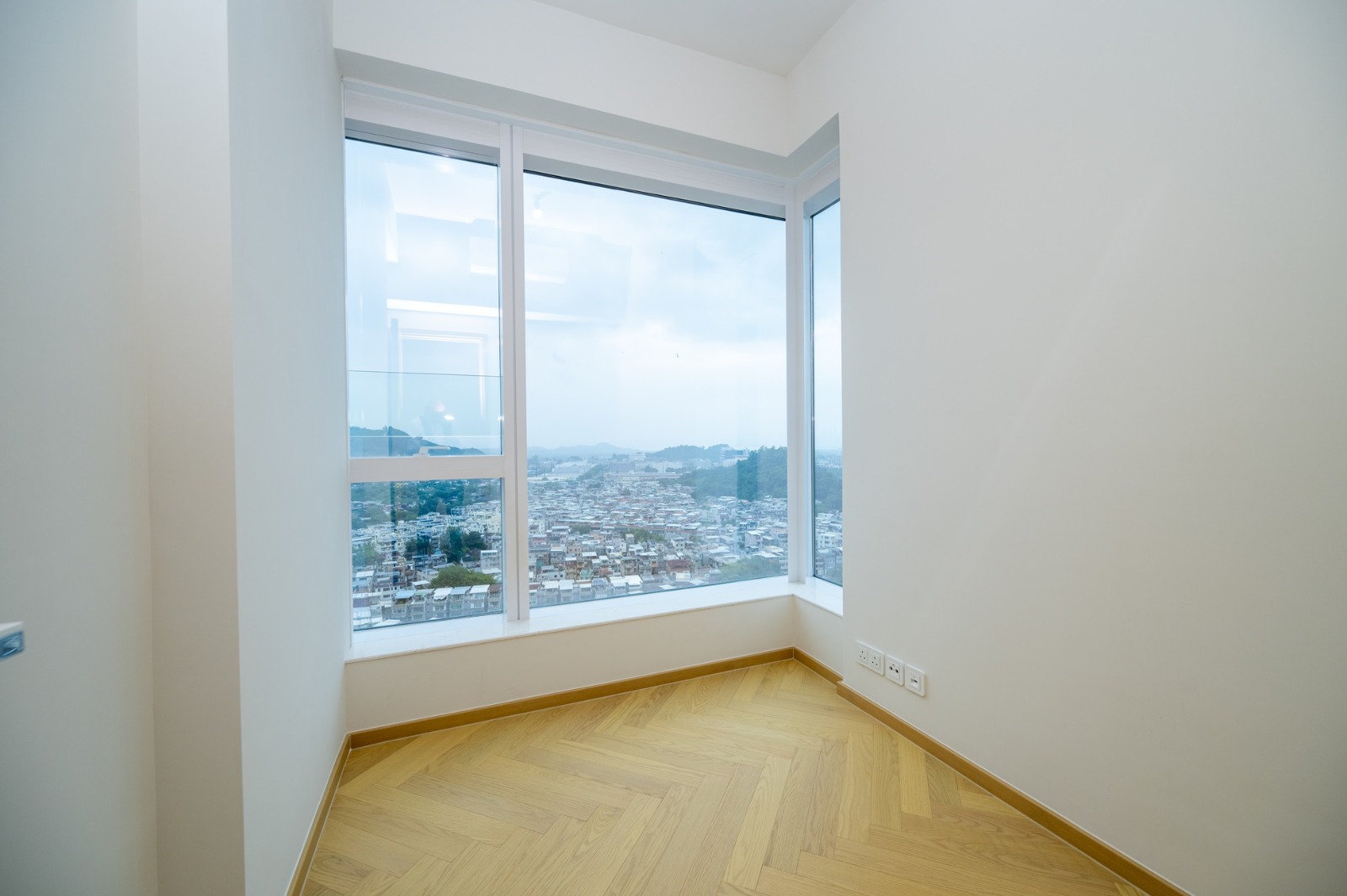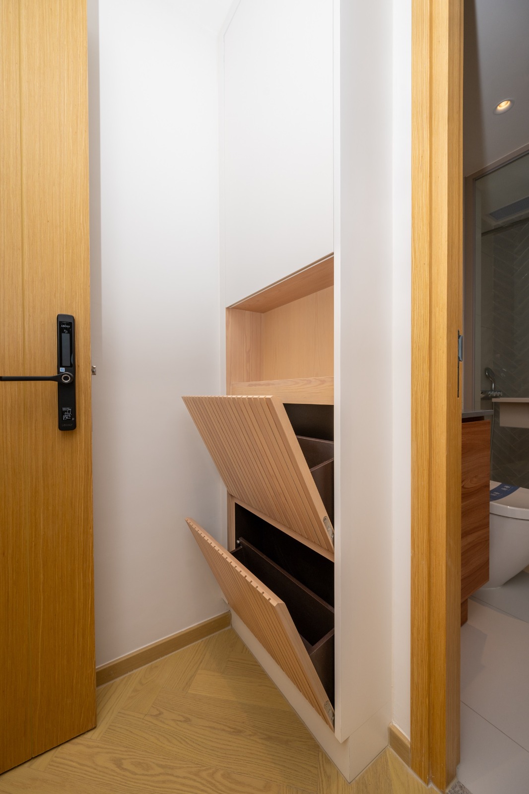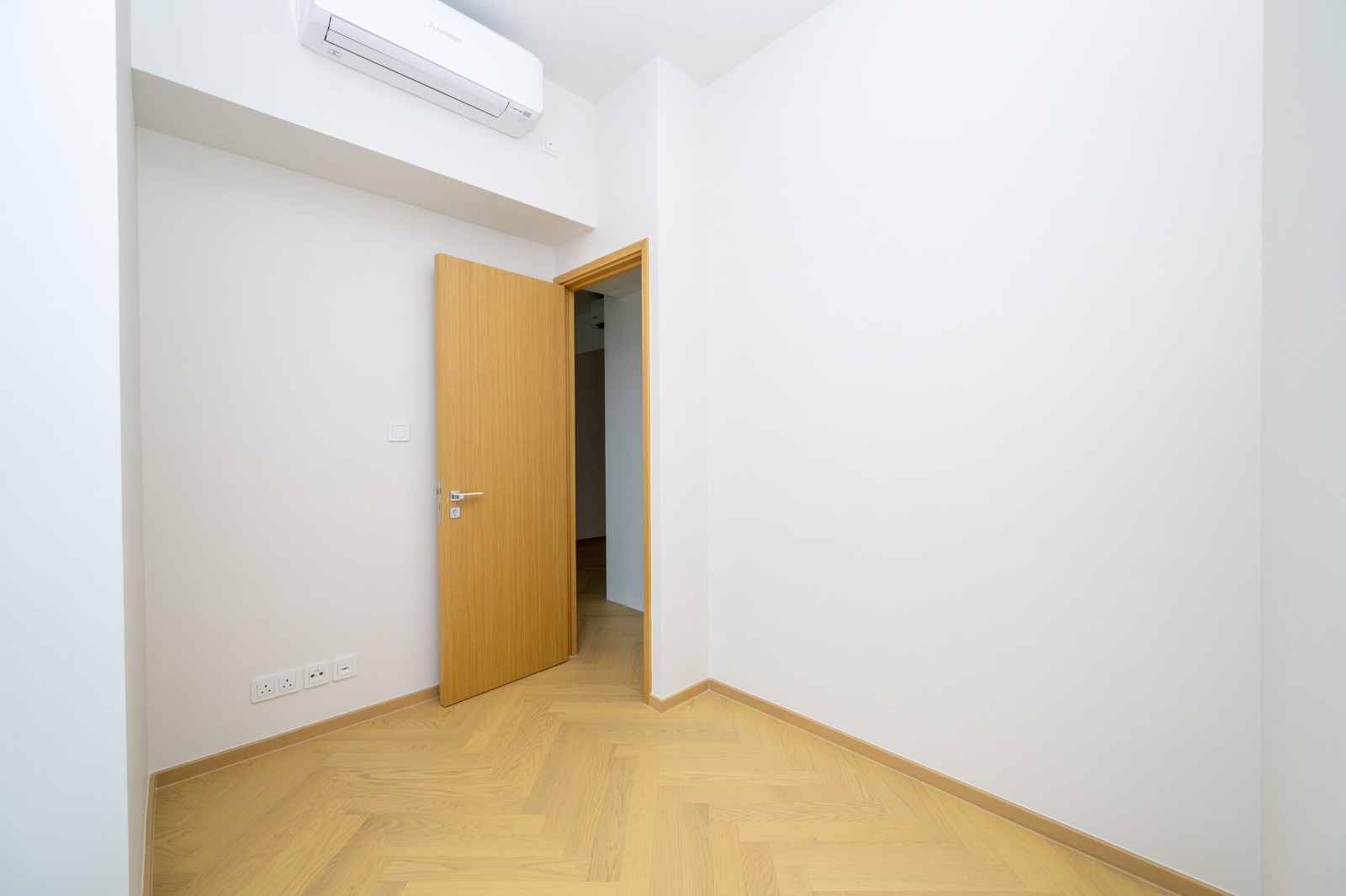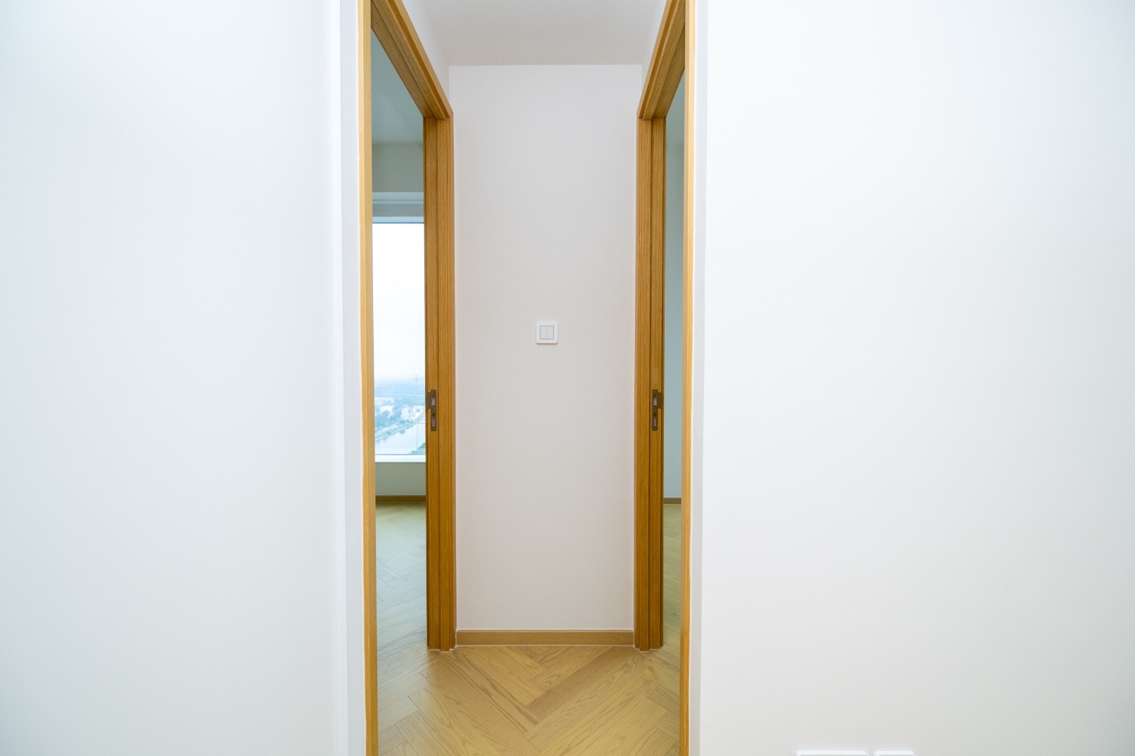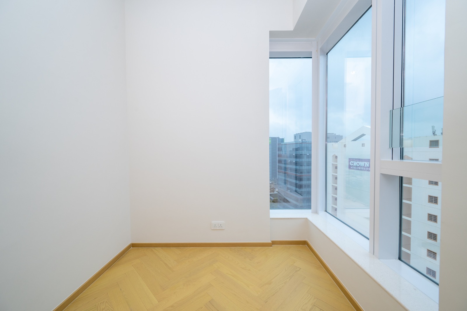 單位大門採用LOCKLY纖幼智慧電子門鎖,多種開鎖方式,為住戶提供高私隱度且便捷的生活享受。單位內的地板亦貼心鋪砌減衝擊噪音墊層,大大降低衝擊所產生的噪音,住戶盡享寧謐安逸的居住環境。單位客飯廳空間寬敞實用,長方形設計讓住戶可隨意放置各種大型傢俬,更以玻璃趟門設計連接室外空間,為屋內提供大量自然光線,延伸室內空間,令客飯廳更顯寬敞明亮。