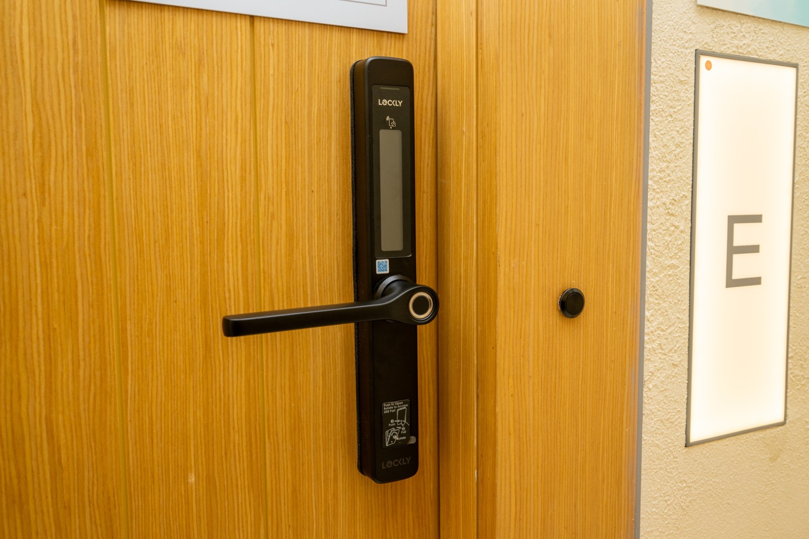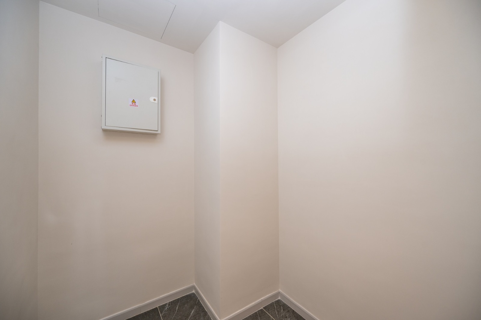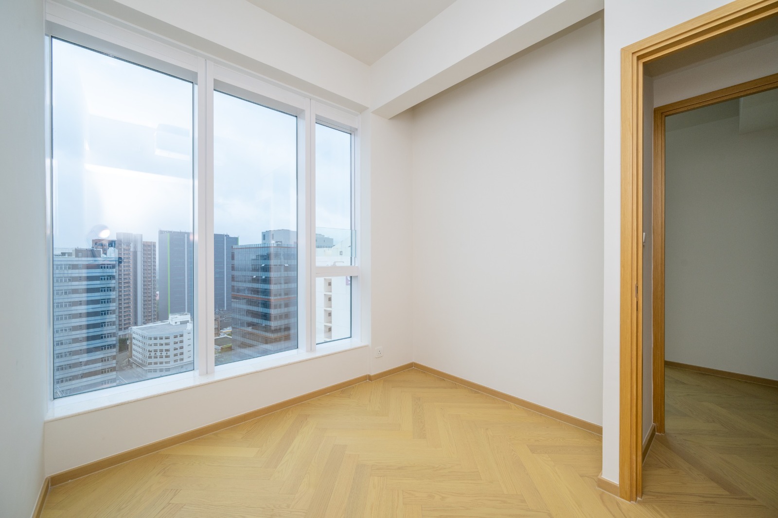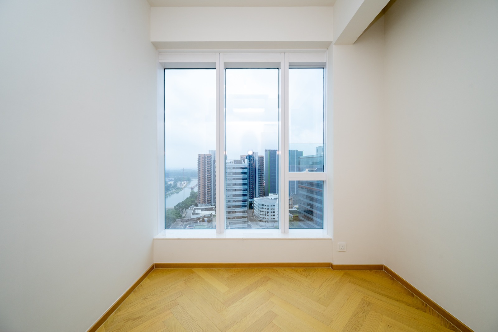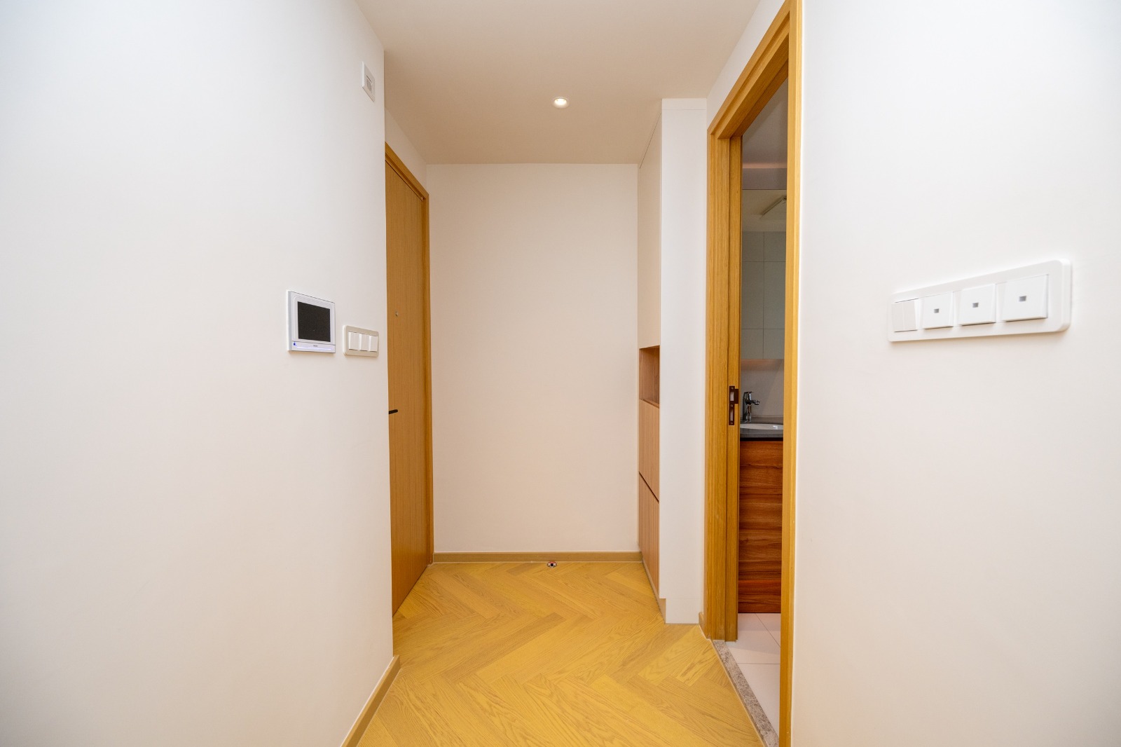 單位大門採用LOCKLY纖幼智慧電子門鎖,多種開鎖方式,為住戶提供高私隱度且便捷的生活享受。單位內的地板亦貼心鋪砌減衝擊噪音墊層,大大降低衝擊所產生的噪音,住戶盡享寧謐安逸的居住環境。單位客飯廳空間寬敞實用,長方形設計讓住戶可隨意放置各種大型傢俬,更以玻璃趟門設計連接室外空間,為屋內提供大量自然光線,延伸室內空間,令客飯廳更顯寬敞明亮。