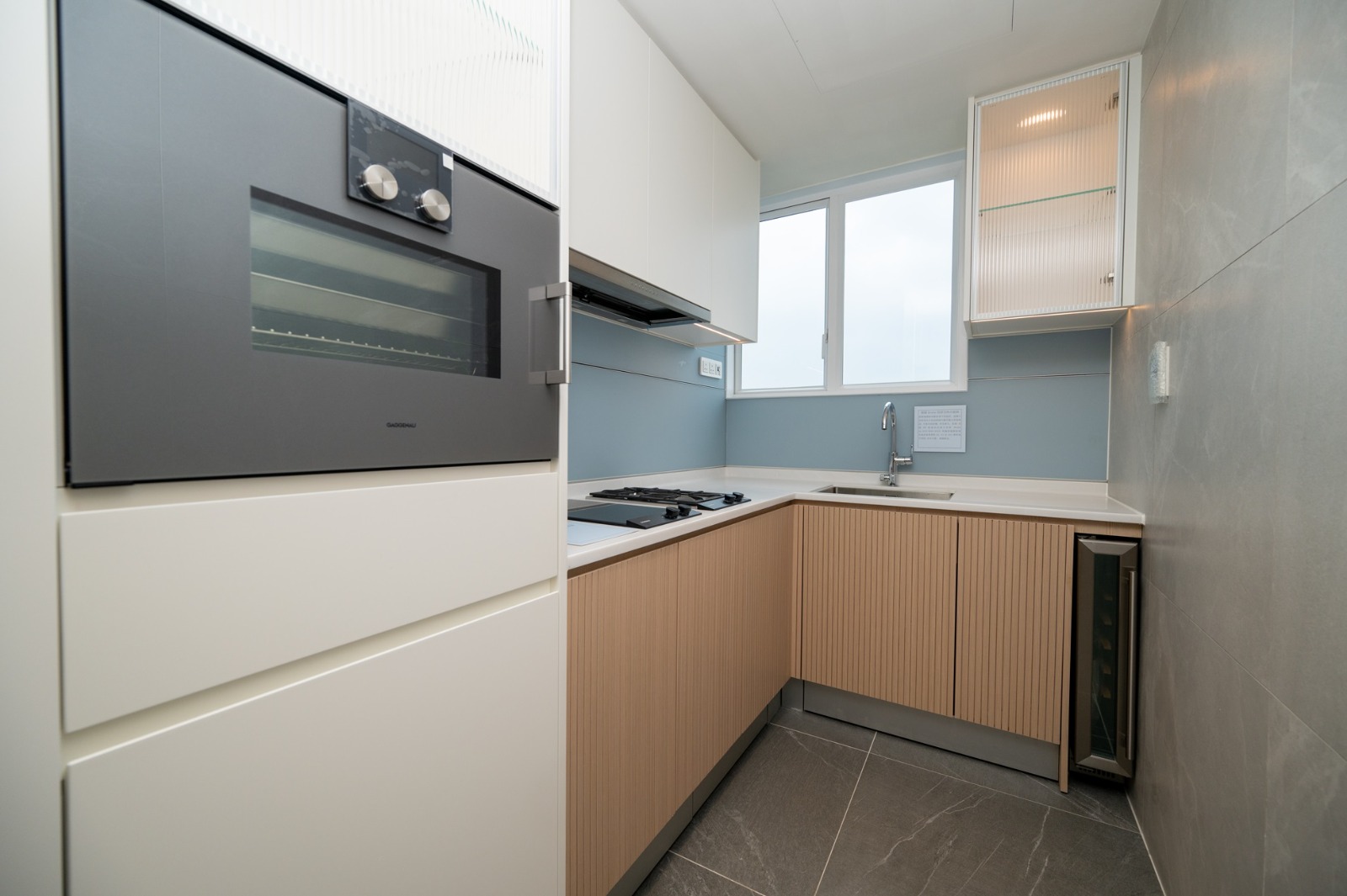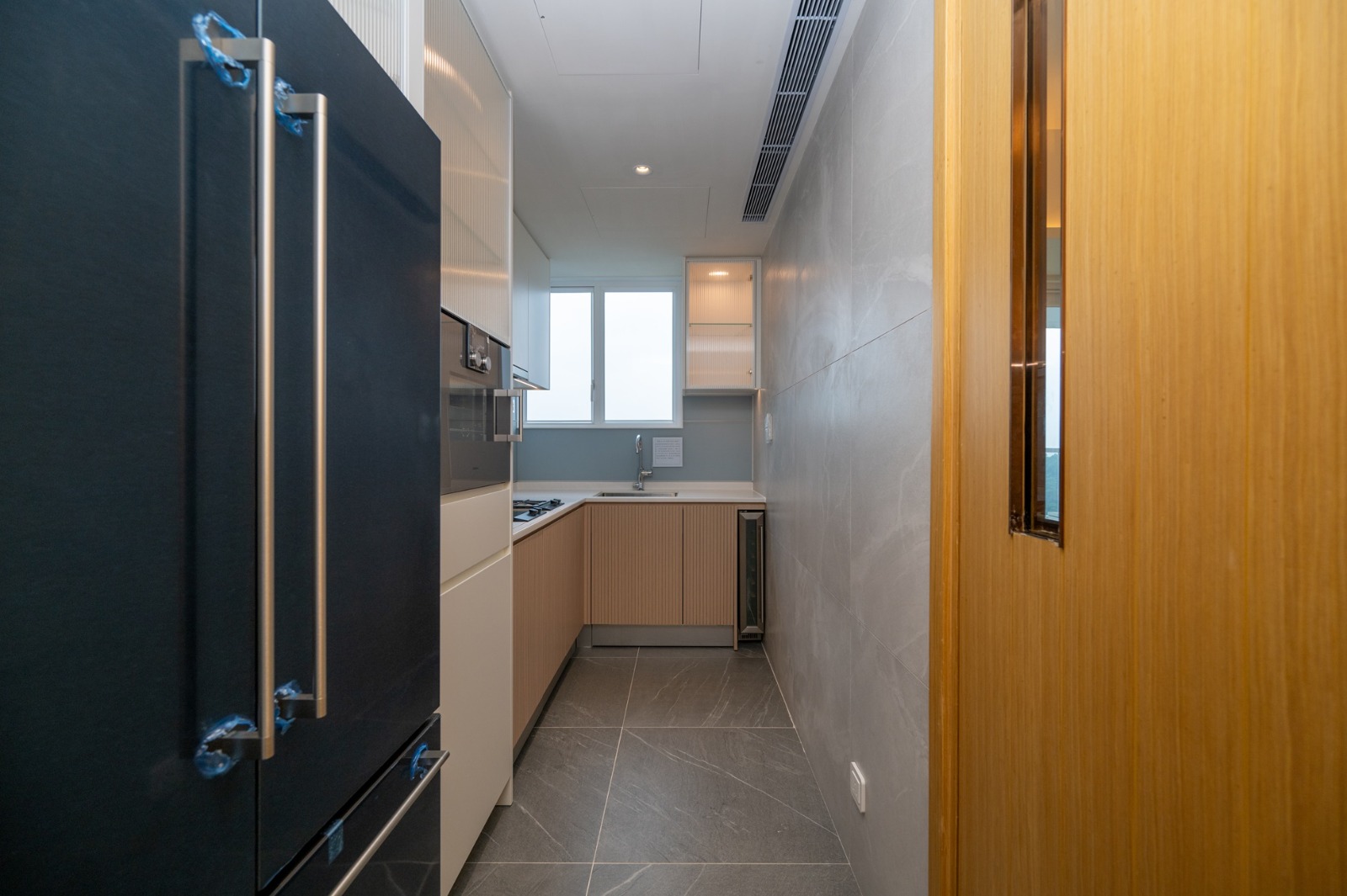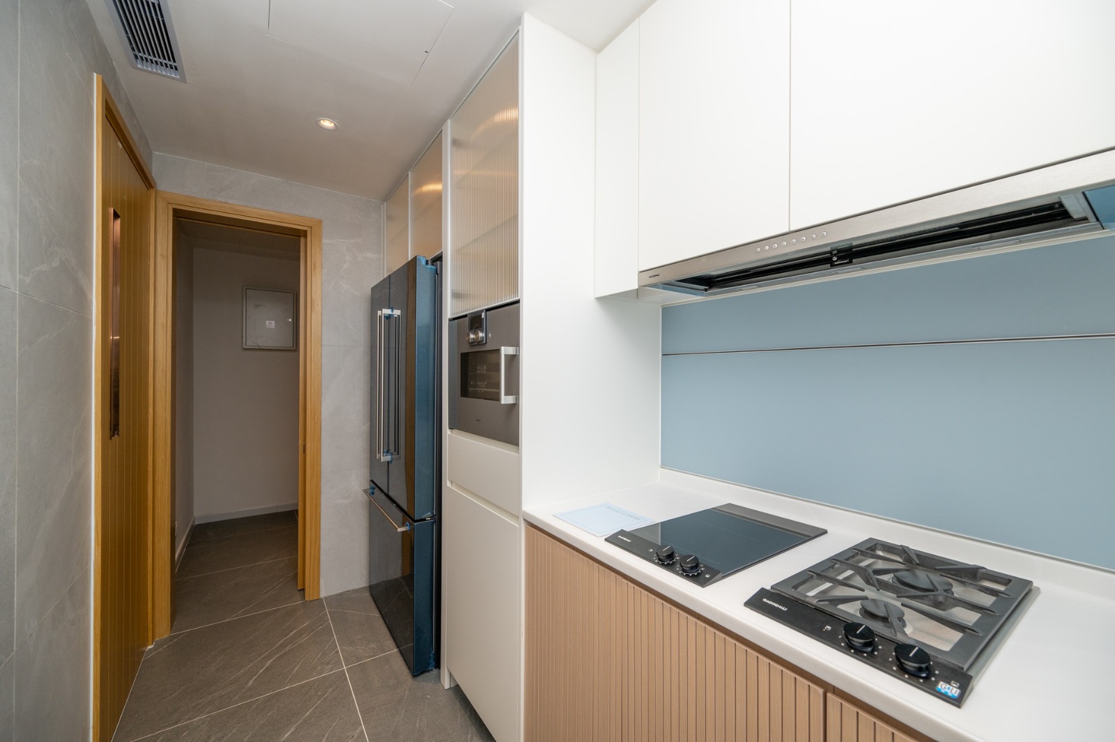 單位採用長形獨立廚房設計,設置L形工作檯面,方便住戶作日常煮食備料之用。廚房配備Gaggenau蒸焗爐、雪櫃、電磁爐、雙爐頭煤氣煮食爐、洗衣乾衣機及抽油煙機,更附設Vinvautz酒櫃,方便住戶貯藏心中所愛,獨享尊貴的品味生活空間。廚房旁的儲物房間隔工整實用,提供充裕的儲物空間。