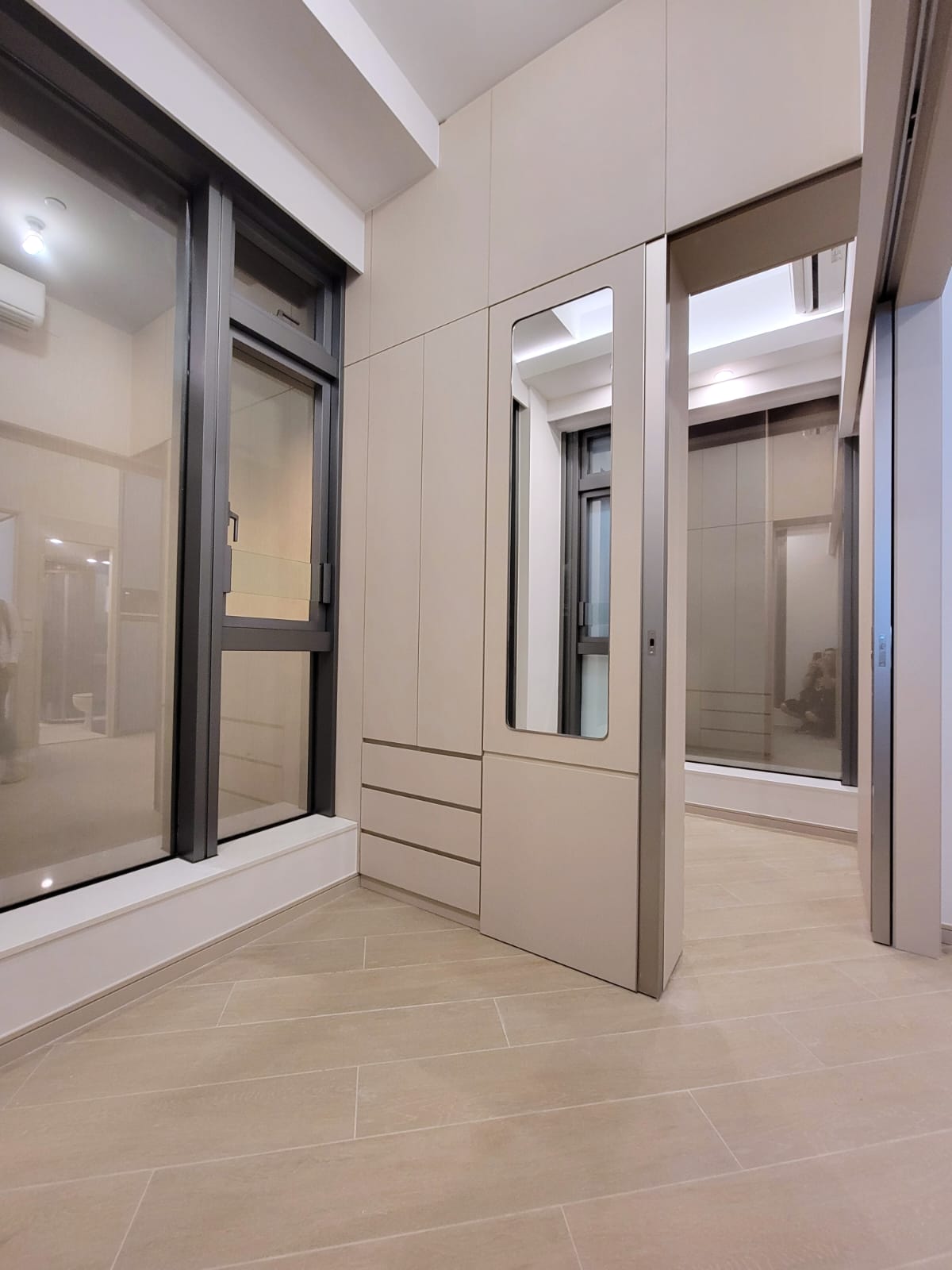 單位的客飯廳、主人睡房及睡房均面向東面,景觀開揚,可坐擁主教山山景及可遠眺翠綠山巒。主人睡房空間特大,長約4.7米,闊約2.3米,附送雙面衣櫃,増加收納空間。
