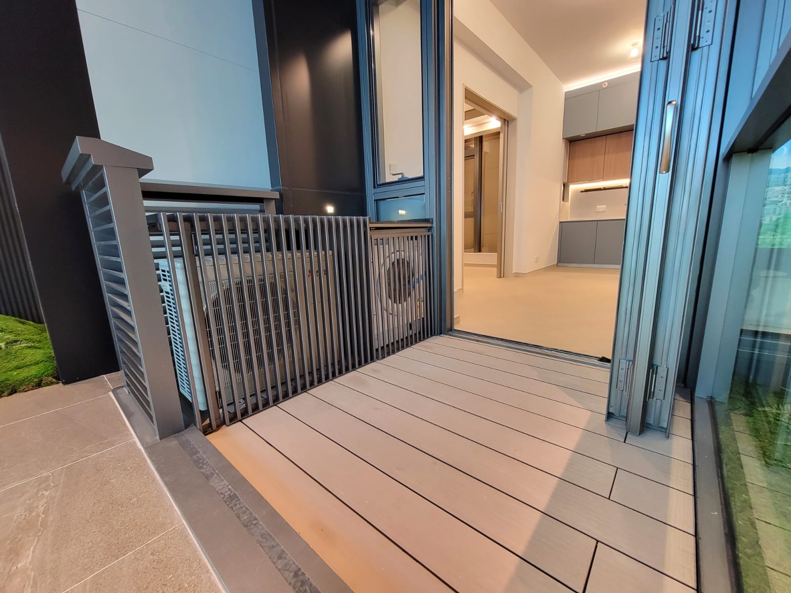 單位開則方正實用,可靈活擺放傢俬;長方型客飯廳連接38方呎的「三合一」露台建築,所延展長約6.7米的寬敞通透視野,闊約2.5米,空間感從室內伸延至室外,廣納自然光線,令整體空間開闊明亮,配合開放式廚房,締造明亮溫馨的家居。