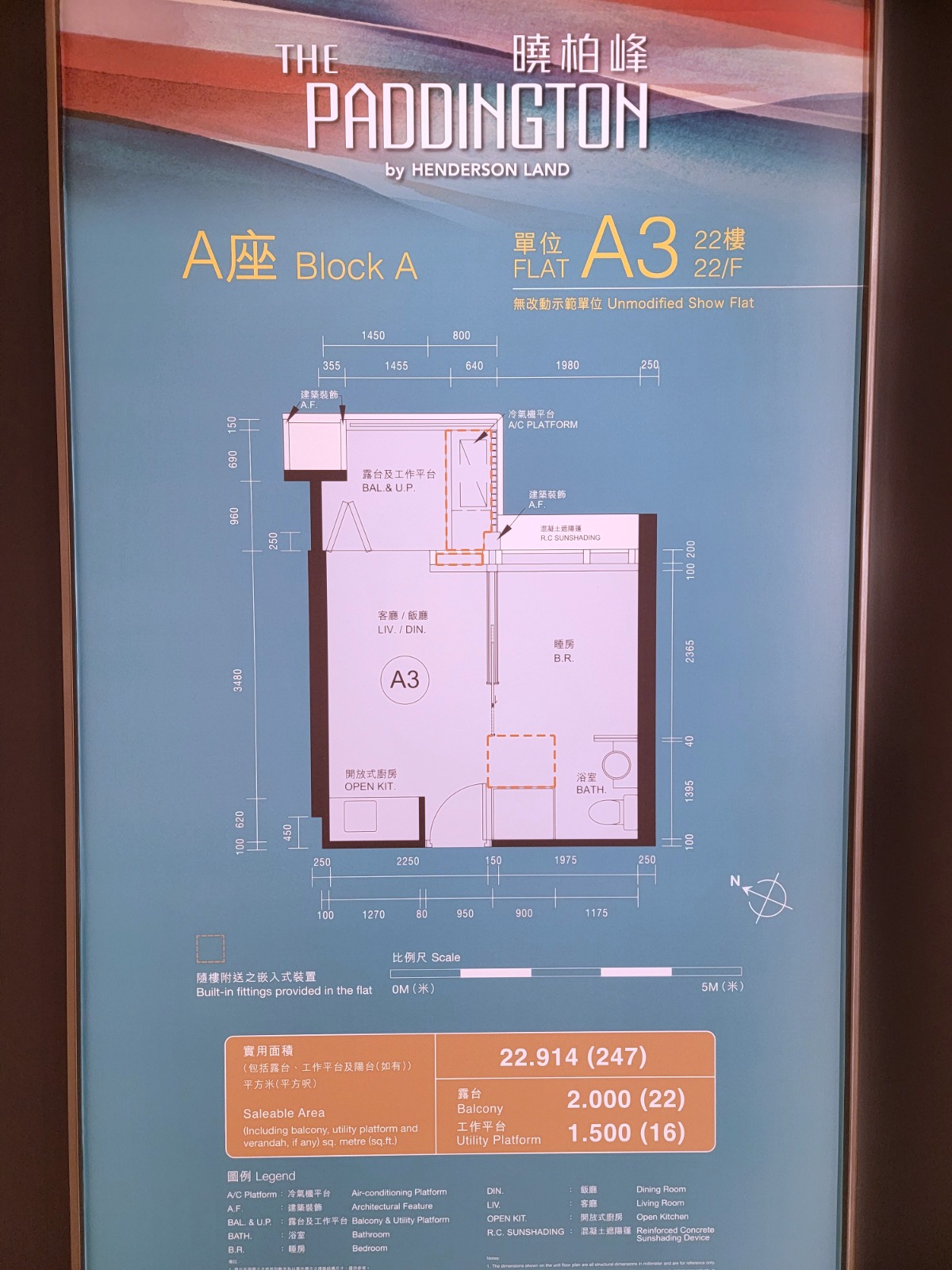 恒基地產(012)長沙灣「曉柏峰」提供492伙,當中以一房單位為主,佔近六成,發展商提供兩款無改動示範單位,當中以A座22樓A3室為藍本搭建,實用面積247方呎,一房間隔。單位開則方正實用,可靈活擺放傢俬,將每寸室內空間發揮極致,寸寸實用;特高樓底設計,層與層之間高度約3.5米,別具空間感。