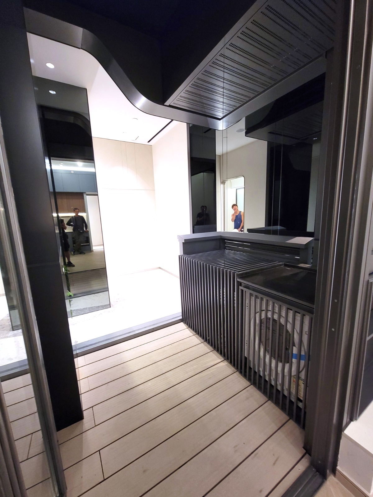 單位長方型客飯廳連接38方呎的「三合一」露台建築,空間感從室內伸延至室外,廣納自然光線,令整體空間開闊明亮,配合開放式廚房,與客飯廳營造輕鬆餐廚互動空間。另外,單位的客飯廳及睡房屬同一坐向,景觀開揚,擁主教山及可遠眺獅子山一帶翠綠山色。