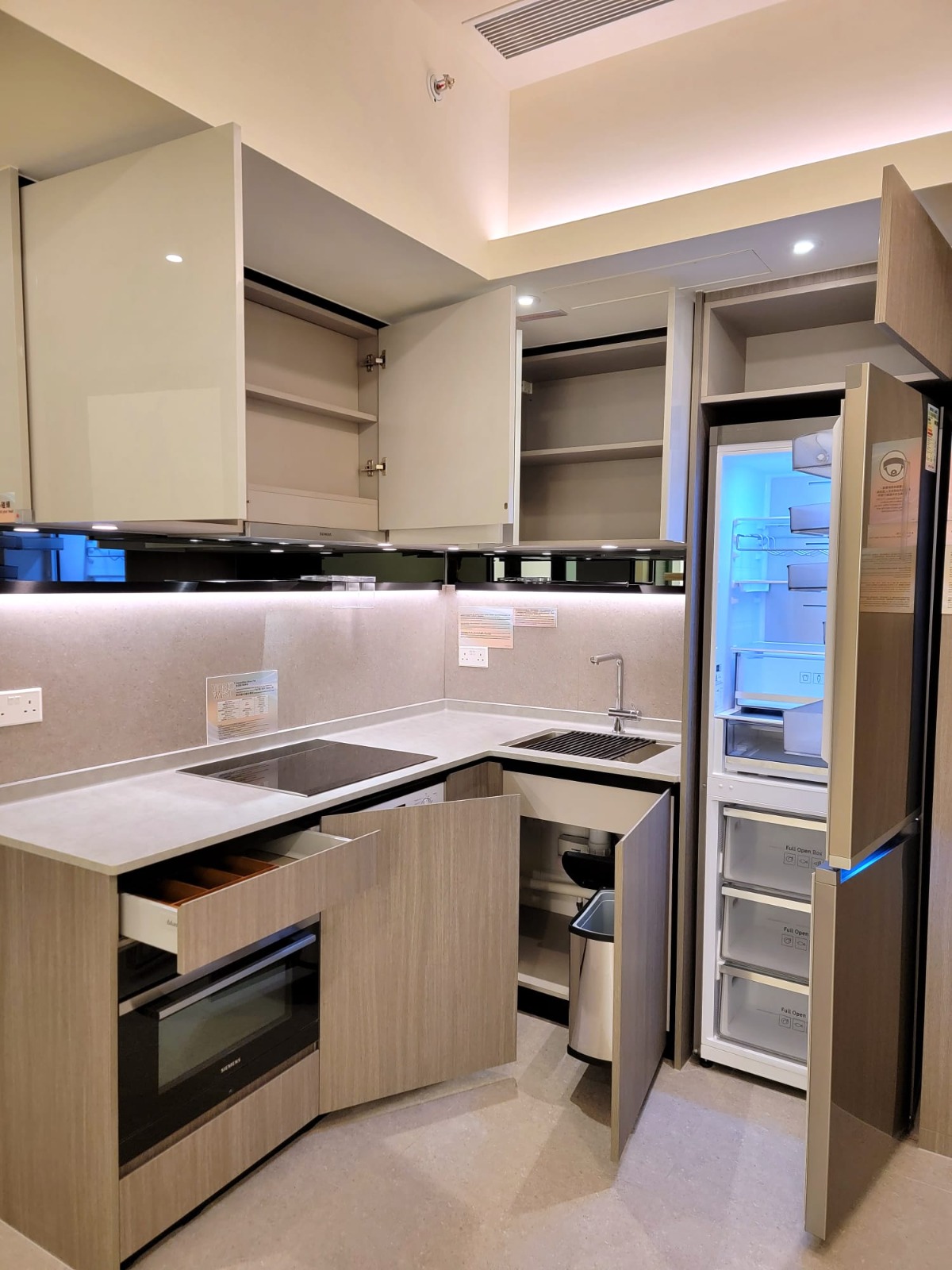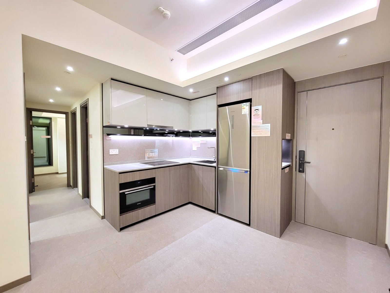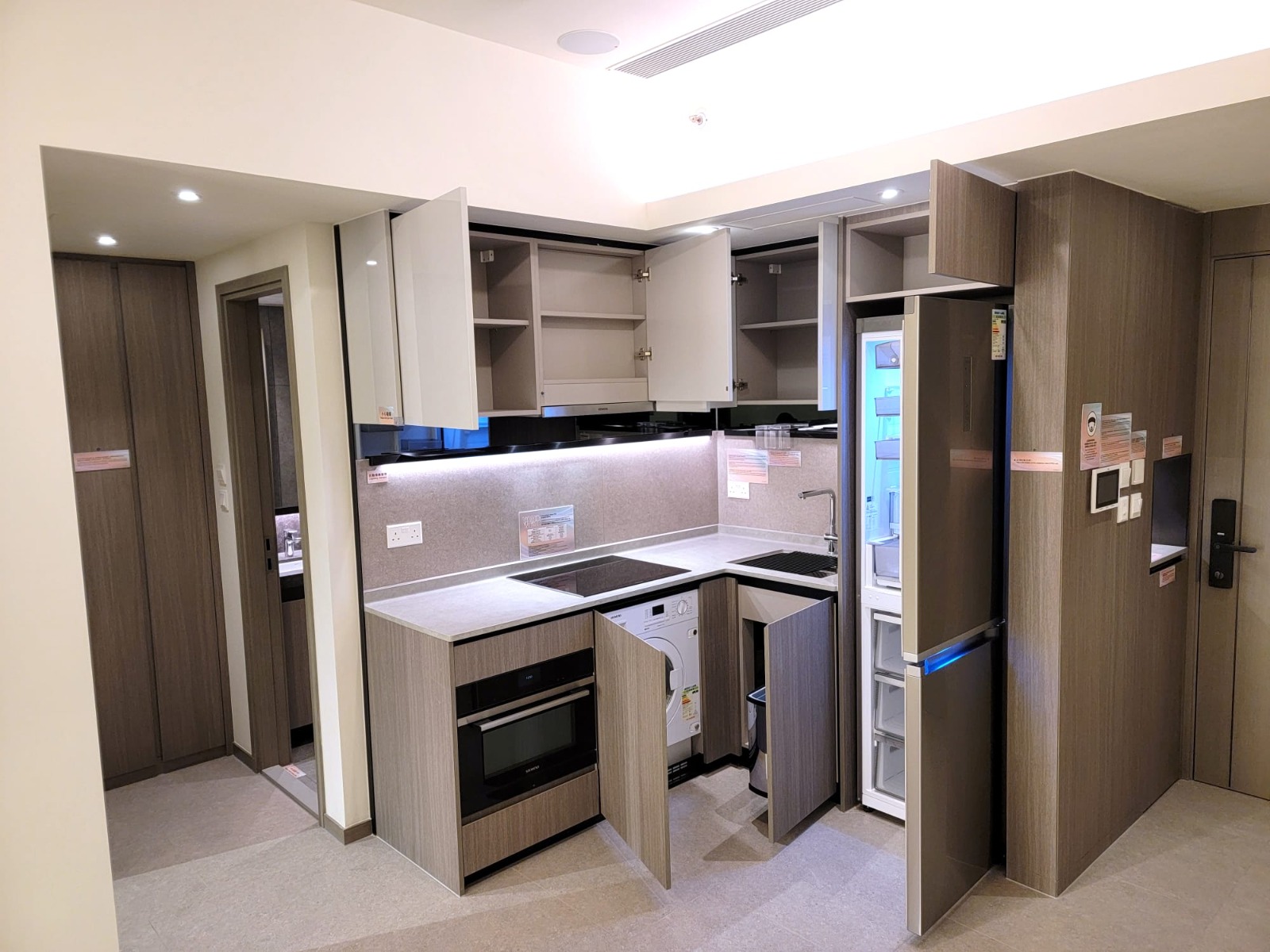 發展商提供2個交樓標準示範單位,以第3A座36樓A11室為藍本搭建的兩房無改動示範單位,實用面積426方呎。全屋不設走廊,開放式廚房設於大門右邊,單位客飯廳連接面積合共38方呎的「三合一」露台,所有單位的露台均附設格柵架,設有活動式工作檯,讓住戶晾衫、種植盆栽、小酒吧檯等增添實用性。兩間睡房位處客飯廳左右兩邊,與客飯廳享同一坐向景觀。浴室不設窗戶,但設備有浴室寶,保持室內通風乾爽。
