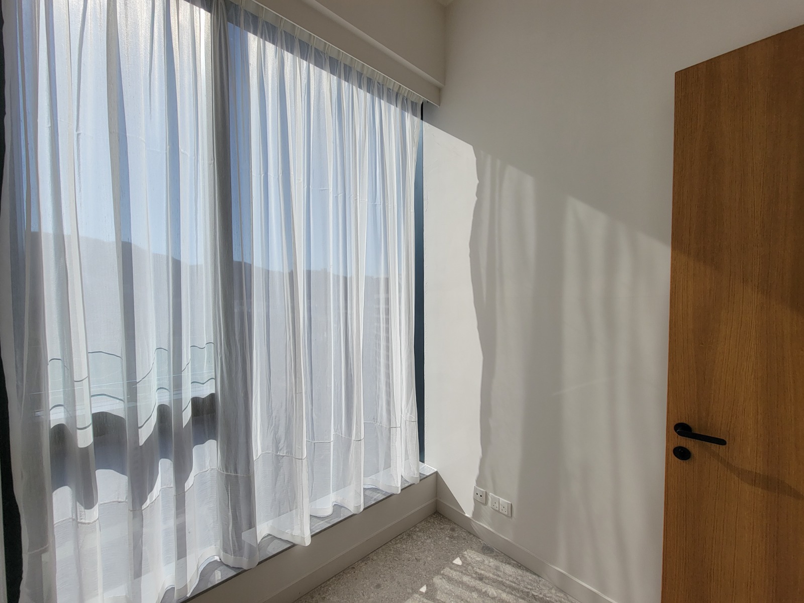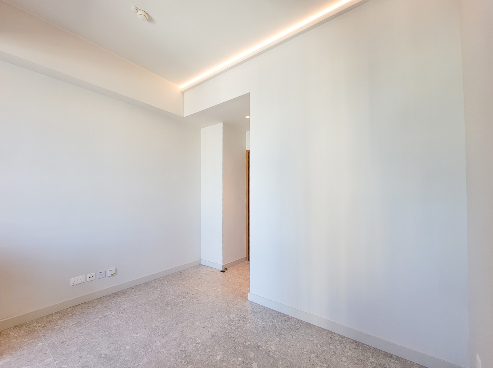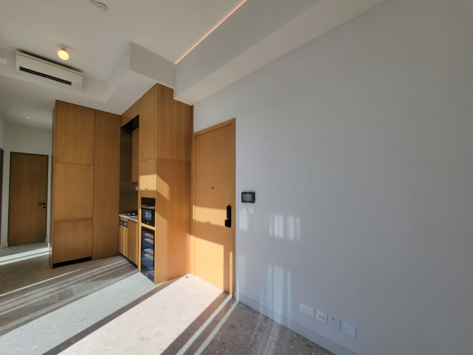位於B座31樓B8室無改動示範單位,實用面積224方呎,為開放式間隔。客飯廳以長形布局,間隔方正實用,易於擺放家具。客飯廳外接露台,提高室內採光度,亦將空間延伸至戶外,加上層與層之間高度約3.5米,空間感十足。