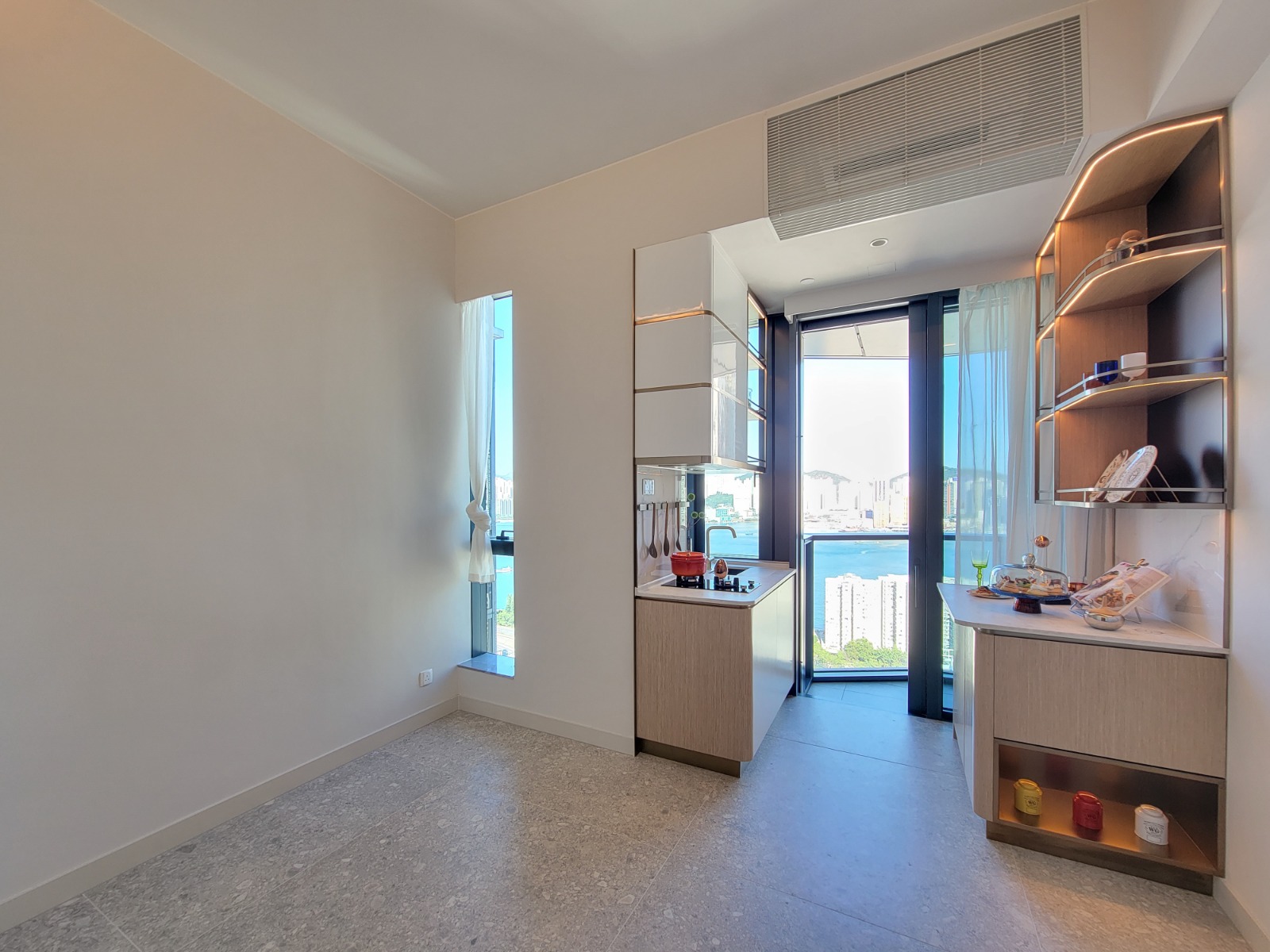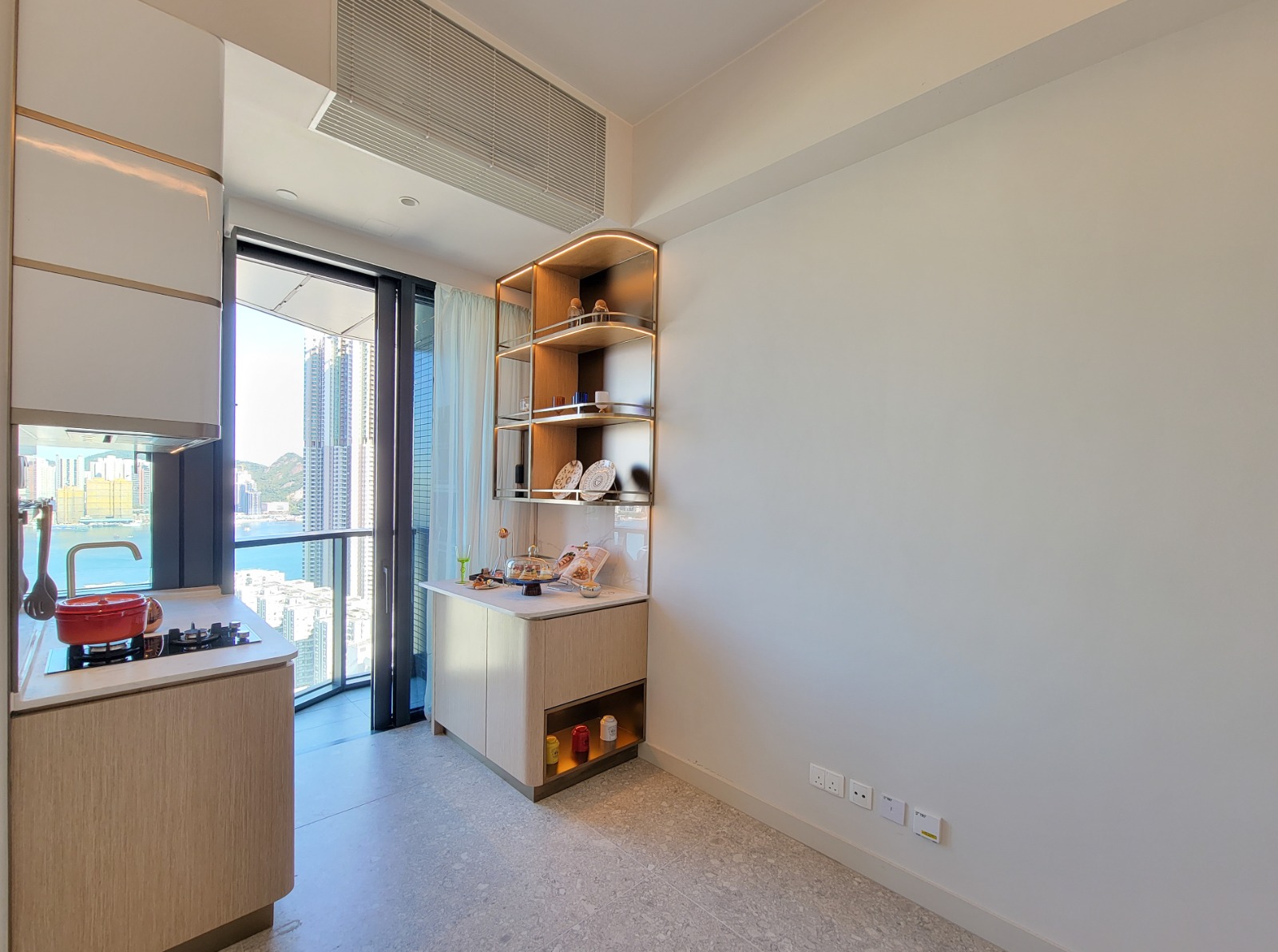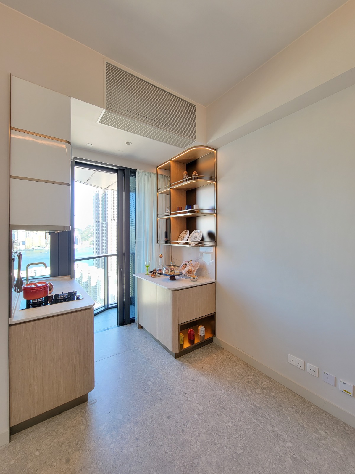廚房採用開放式設計,自成一角,配備意大利品牌Mia Cucina的嵌入式煤氣煮食爐,亦配有德國西門子抽油煙機、雪櫃、洗衣乾衣機及微波爐,時尚美觀。廚房設計創新,空間規劃匠心獨運,工作檯面並排而列。廚房位置更巧妙地連接露台,坐享維港海景,每天在家中也可來一場Alfresco Dining。