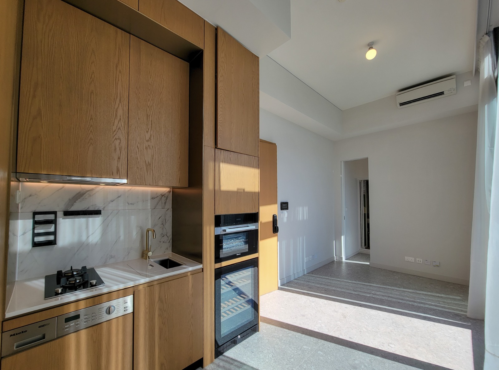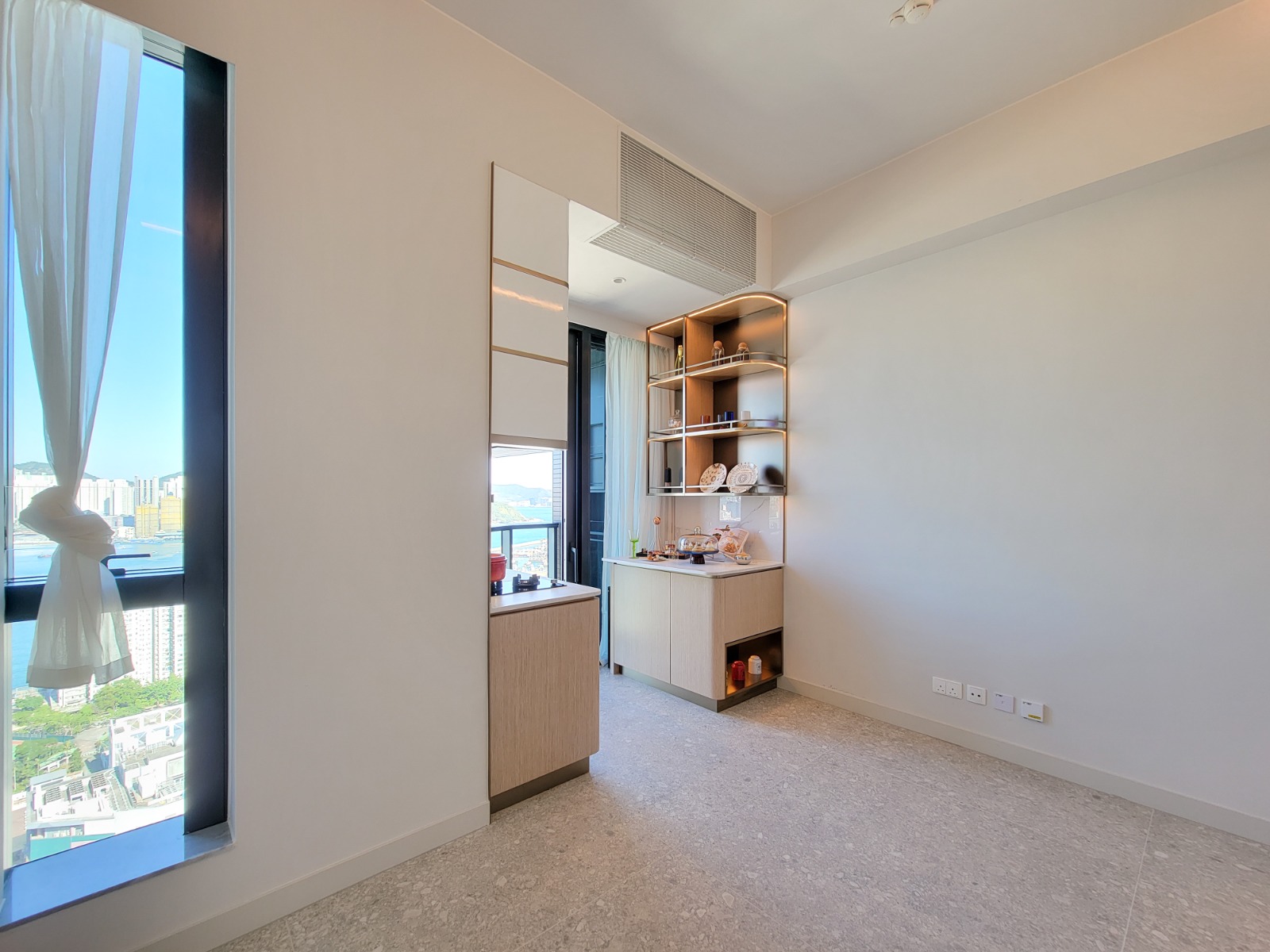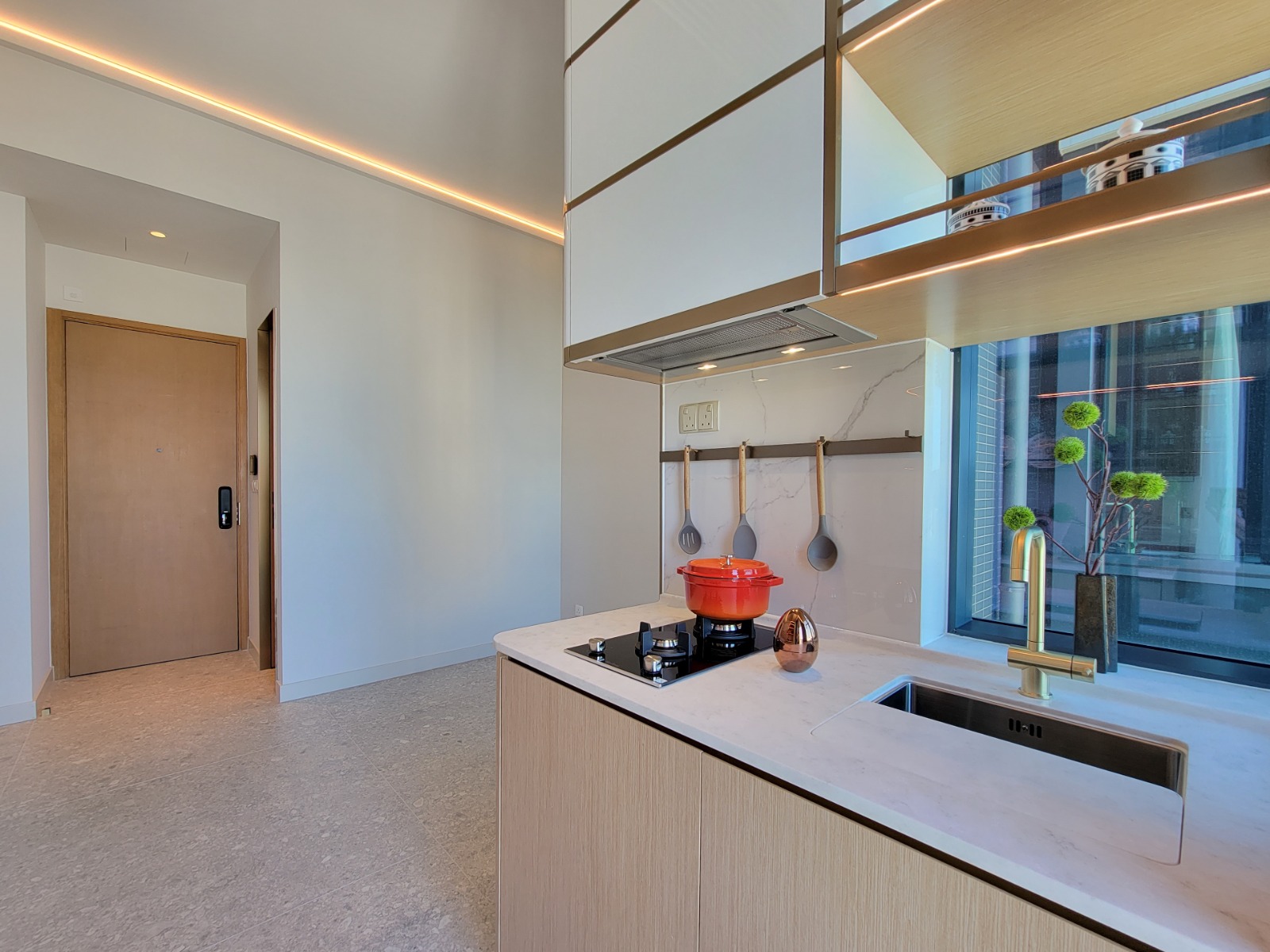 廚房採用開放式設計,自成一角,配備意大利品牌Mia Cucina的嵌入式煤氣煮食爐,亦配有德國西門子抽油煙機、雪櫃、洗衣乾衣機及微波爐,時尚美觀。廚房設計創新,空間規劃匠心獨運,工作檯面並排而列。廚房位置更巧妙地連接露台,坐享維港海景,每天在家中也可來一場Alfresco Dining。