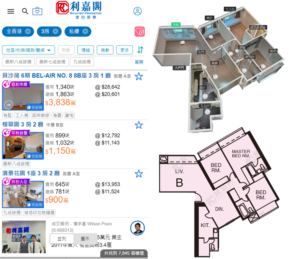 根據利嘉閣網站的真盤源放盤數量統計,截止11月底全港共有約7,845個3房的私人住宅放盤,當中港島區有1,972個,佔比25.1%;九龍區有2,700個,佔比34.4%;新界東有1,362個,佔比17.4%;而新界西則有1,811個,佔比23.1%。有意換樓的業主,可登上利嘉閣網站,根據自己喜好篩選出最適合自己的放盤。