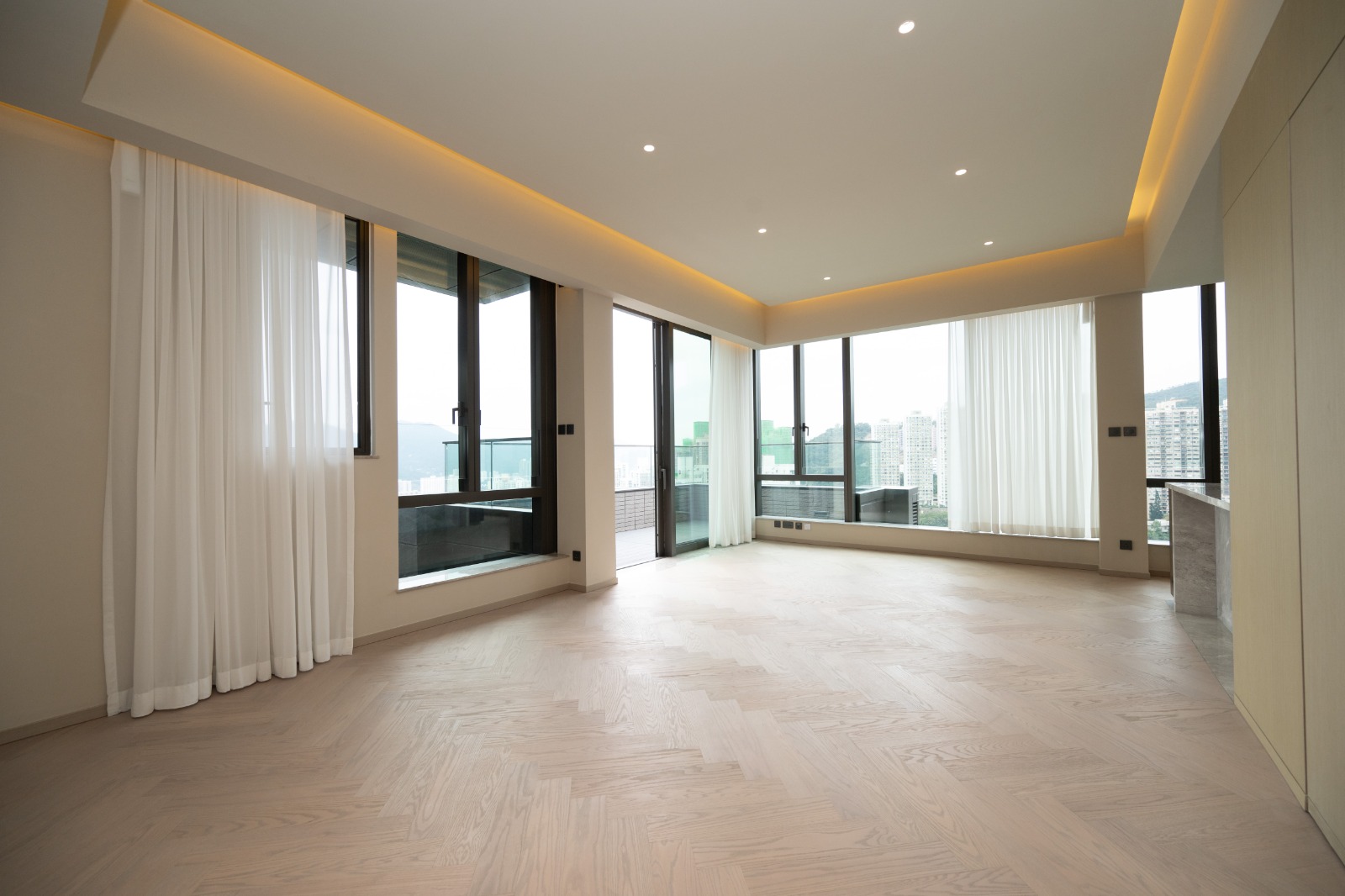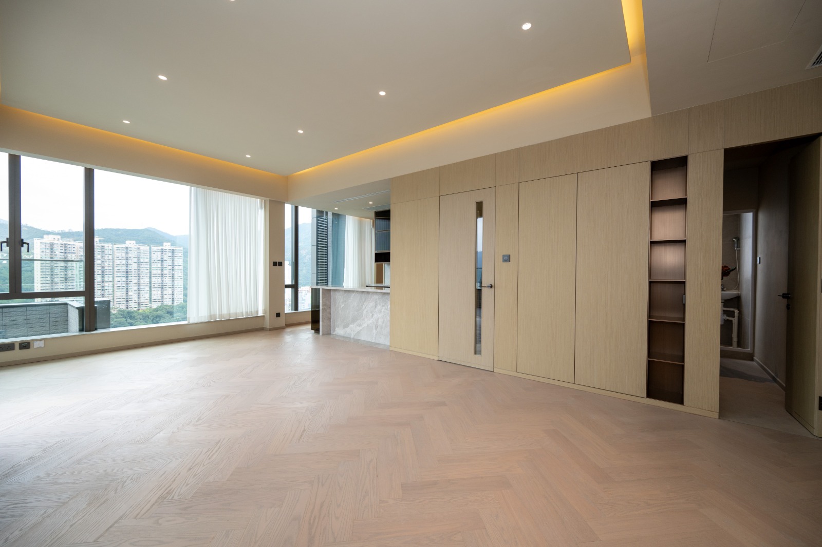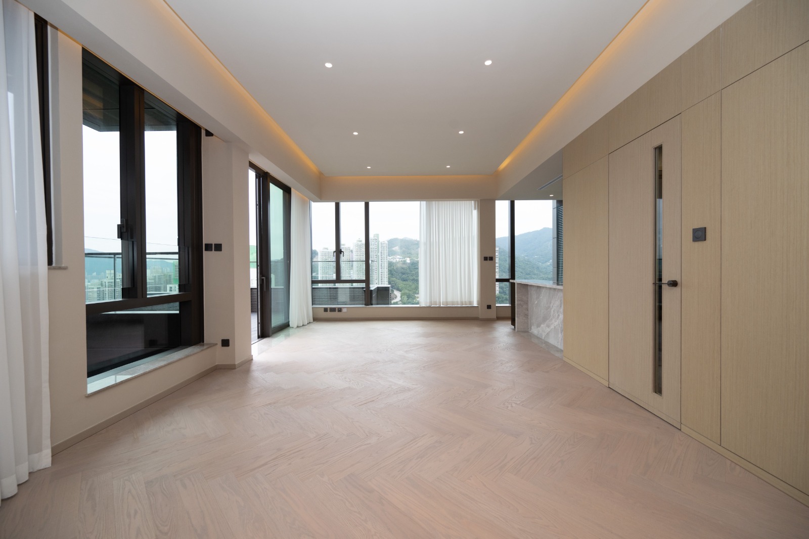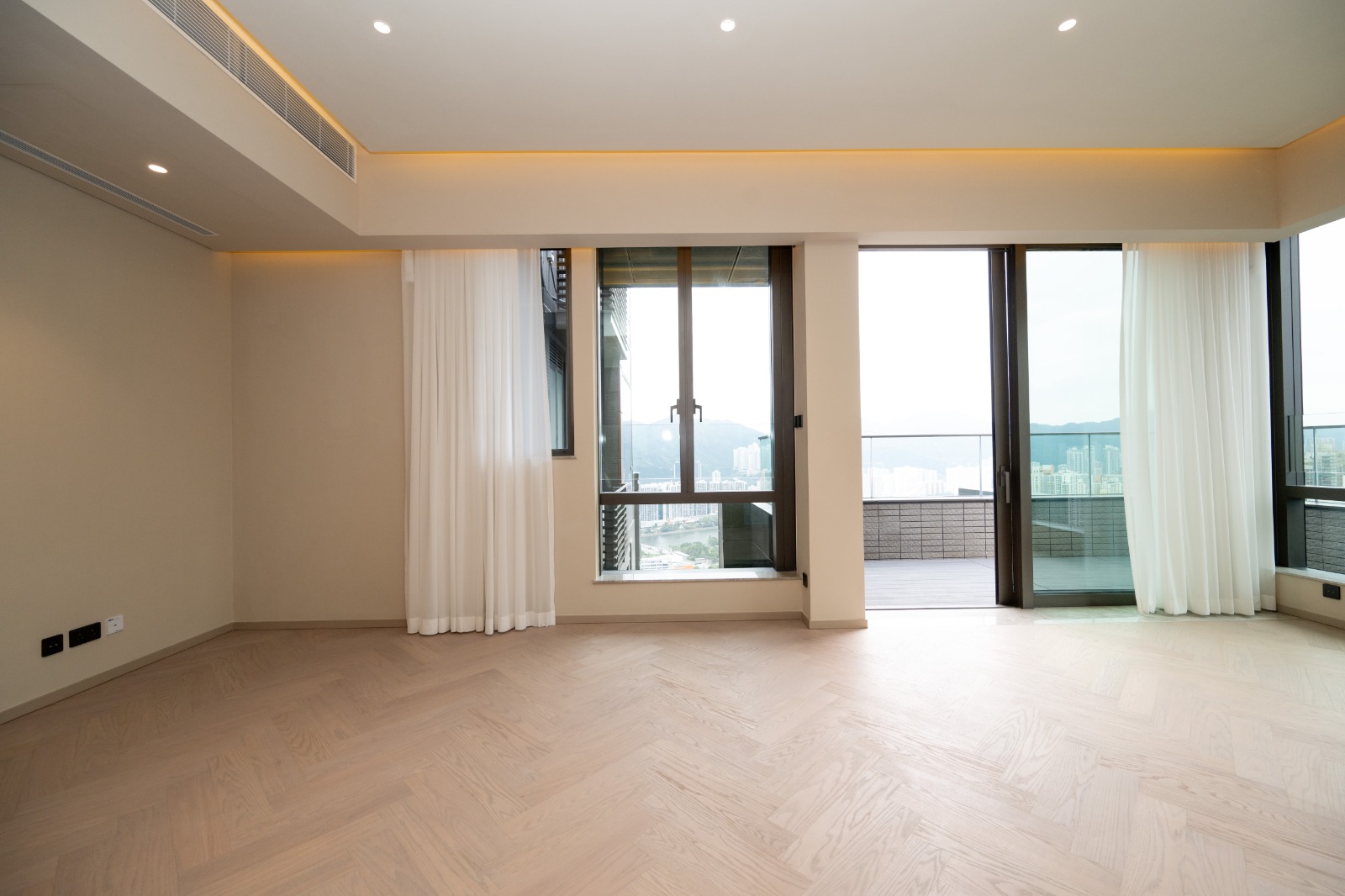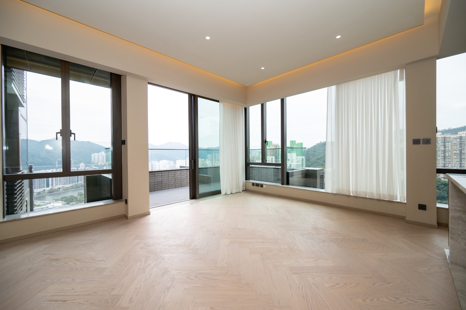 位於5座單邊樓皇現樓頂層複式A單位,屬全盤面積最大單位,實用面積約2,001方呎,大廳長形開則,長約7.4米、闊約3.96米,實用面積約315方呎,配合3.5米樓層高度,空間感十足。客飯廳間隔分明,附連長約7米大型玻璃窗,開揚景致盡收眼底。此外,大廳附設面積約109方呎、呈L型的特大平台,盡享開揚城門河景、沙田市中心繁華景致及翠綠山景。
