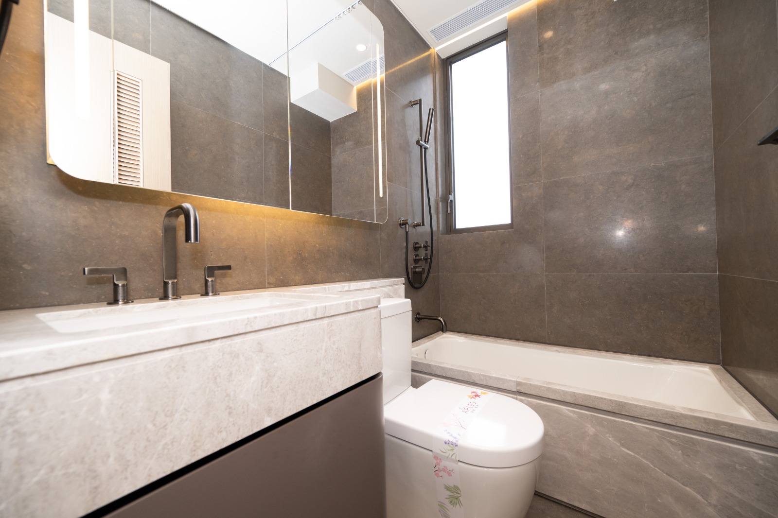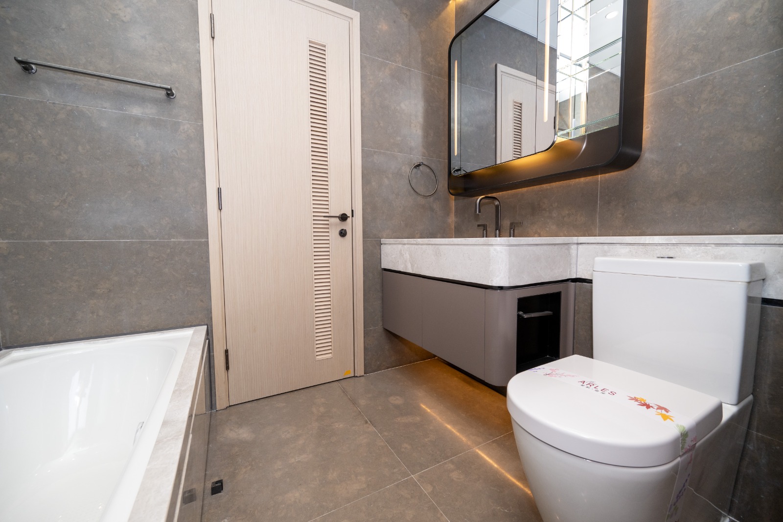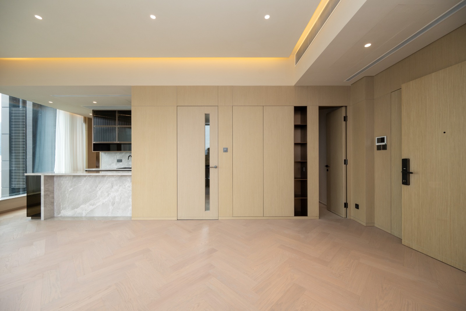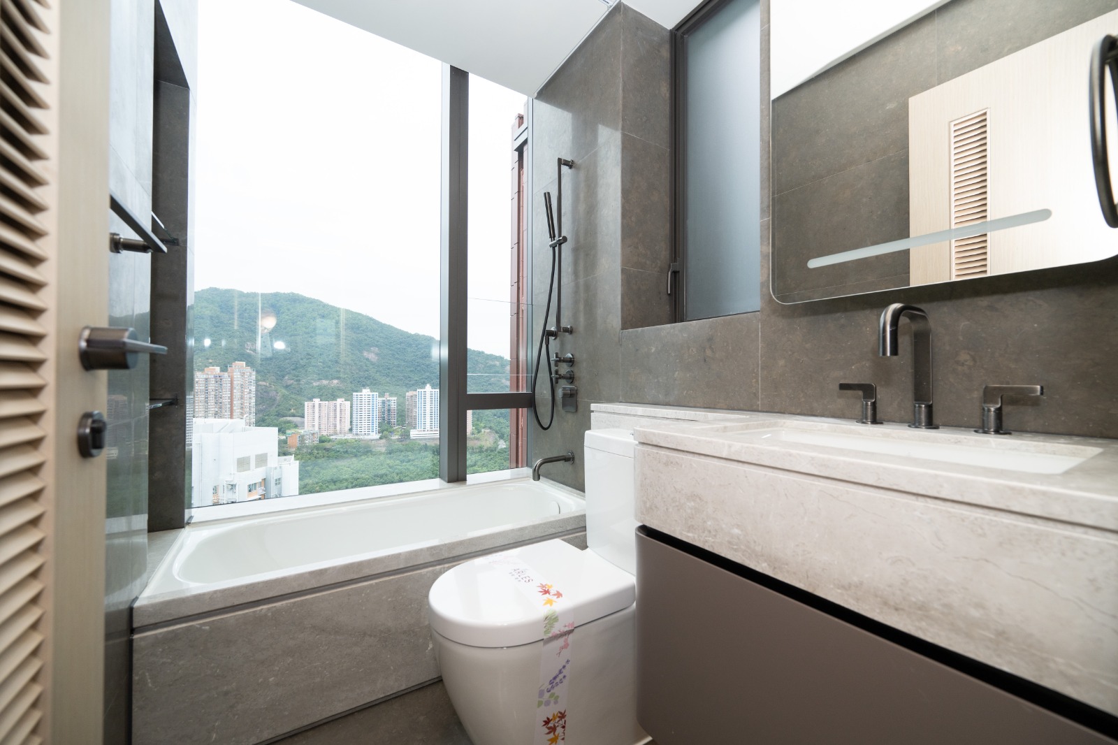 至於另一伙5座50樓及51樓B室,採四房三套設計 南向外望開揚城門河景及沙田開揚景致。單位實用面積約1,569方呎,大廳長形開則,樓層高度3.5米,長約8.85米,闊約4.65米,實用面積約443方呎,外接大型玻璃窗及面積約86方呎平台,盡享絕佳景觀。廚房設中西廚,附設名貴家電,包括Sub-Zero雪櫃及Miele雪櫃,另外亦設有Miele氣體煮食爐、組合式雙頭氣體煮食爐、蒸焗爐、組合式燒烤爐、咖啡機及洗衣乾衣機等,讓住戶隨時可以大展廚藝。
