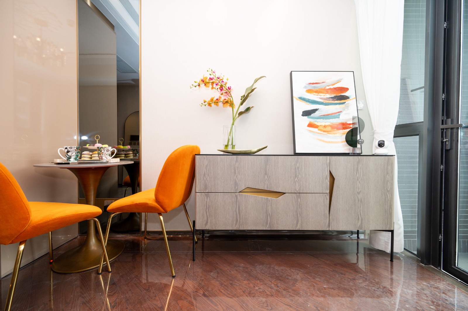 該示範單位以「cozy chic」的設計風格,打造擁有寬敞明亮的室內空間和大片的窗戶,讓自然光充分進入室內。設計強調將舒適的、愜意的、溫馨的風格及元素融入室內空間,創造出溫暖舒適令人放鬆和平靜的氛圍。