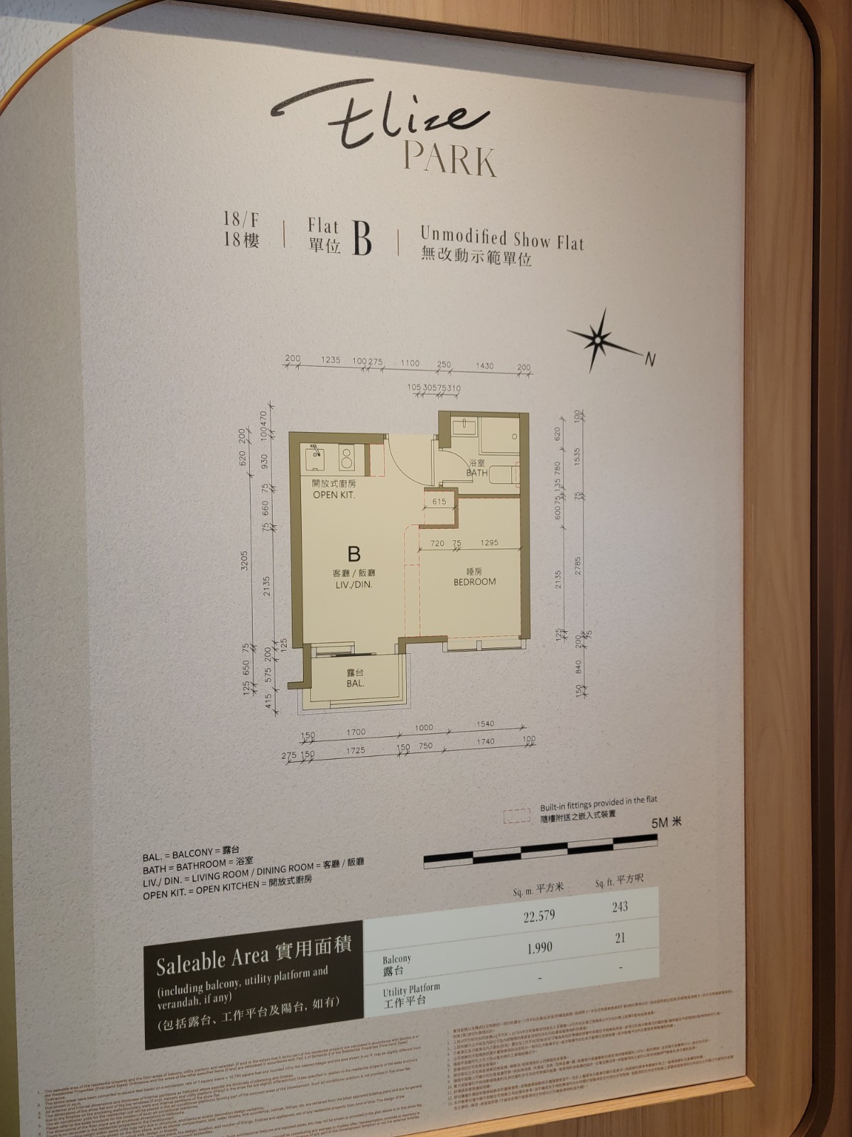 18樓B室一房 面積243方呎