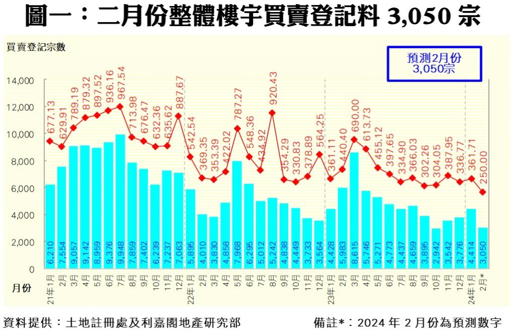 二月假期多及觀望政策 整體登記恐下試3,050宗