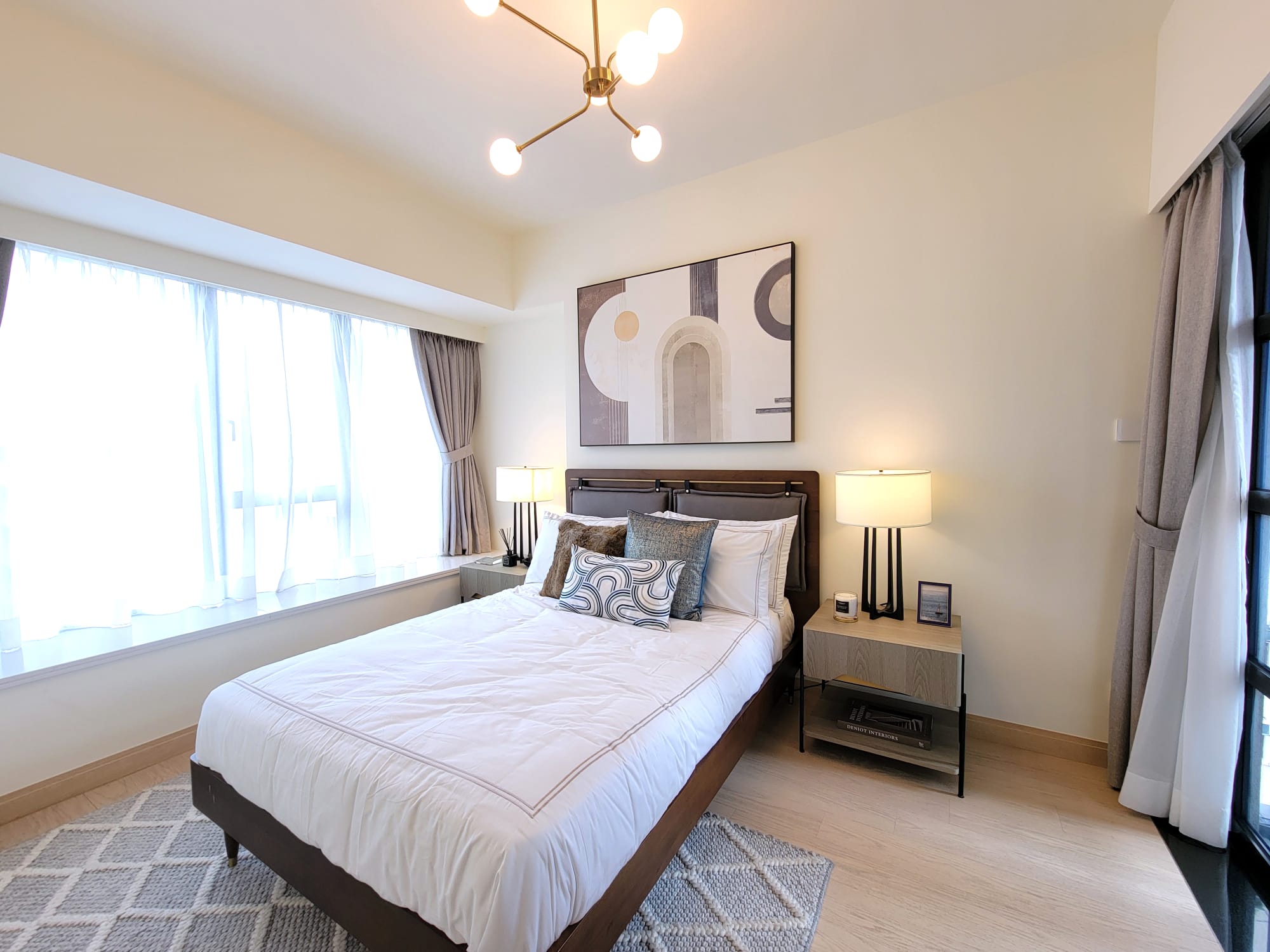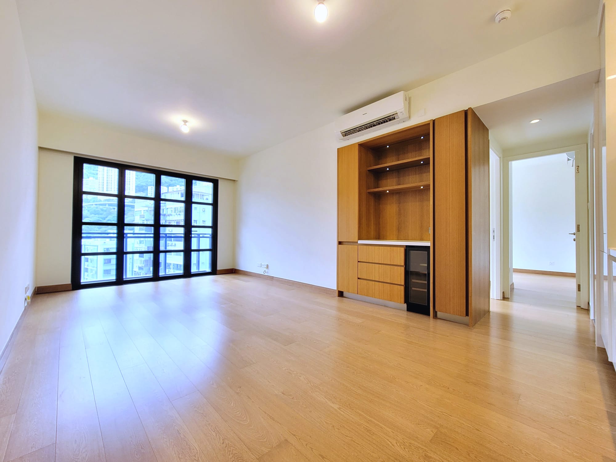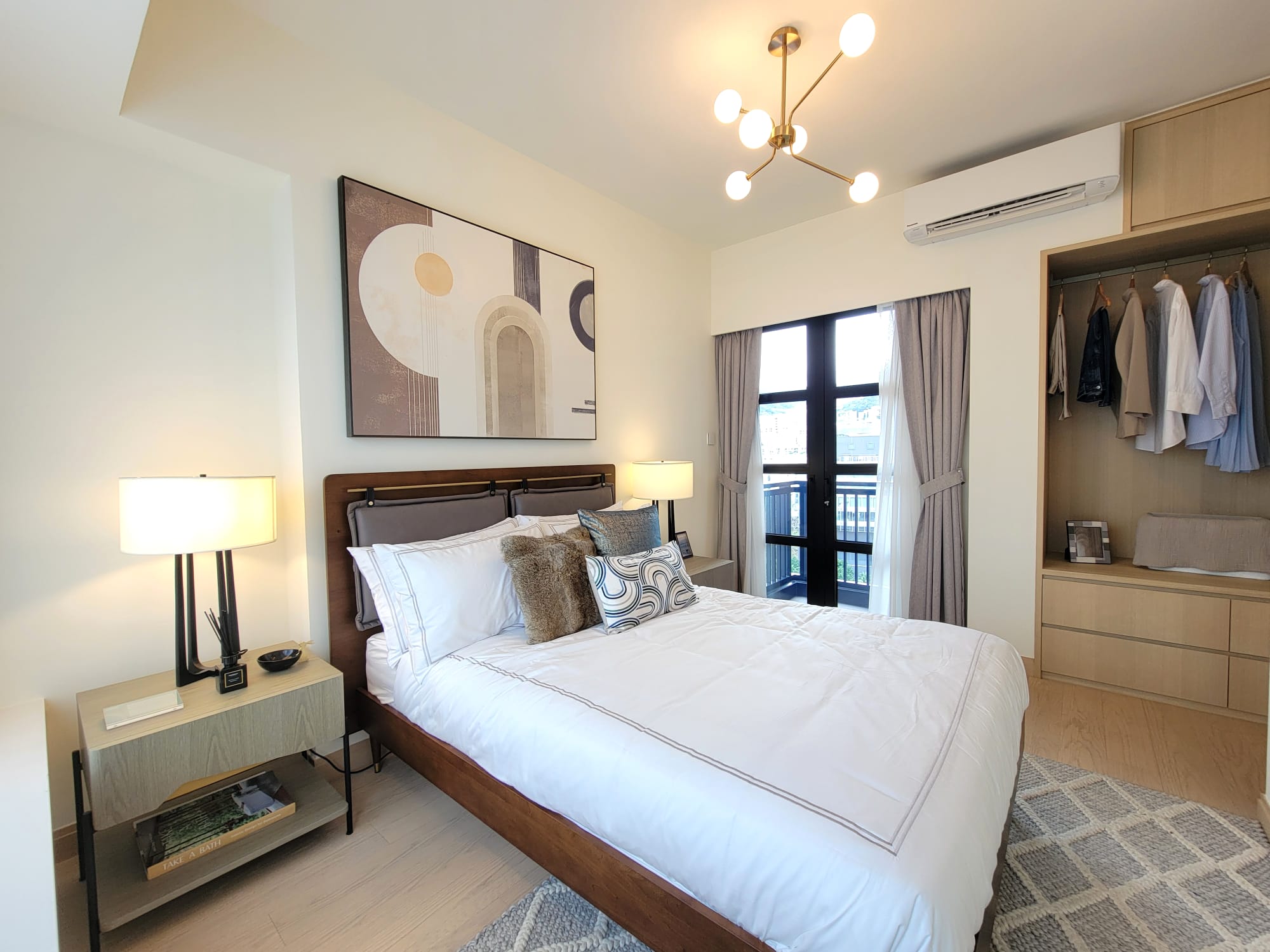 單位的客飯廳與睡房均為同向,主人睡房特設特大窗戶廣納室外景觀及自然光線。主人睡房空間感十足,放置雙人床後仍可三邊落床,並特別預留位置擺放大型衣櫃,同時連接約16方呎工作平台。