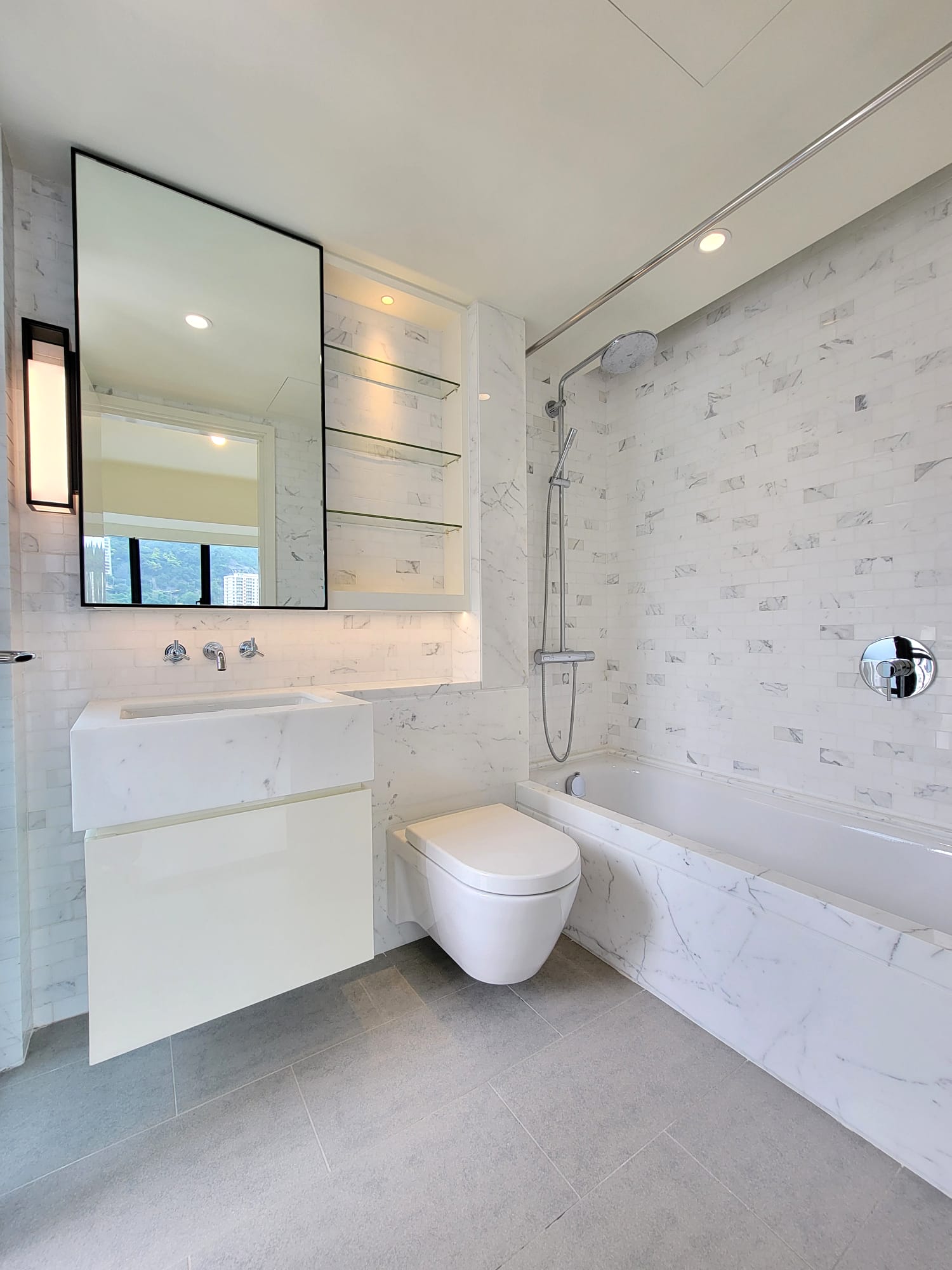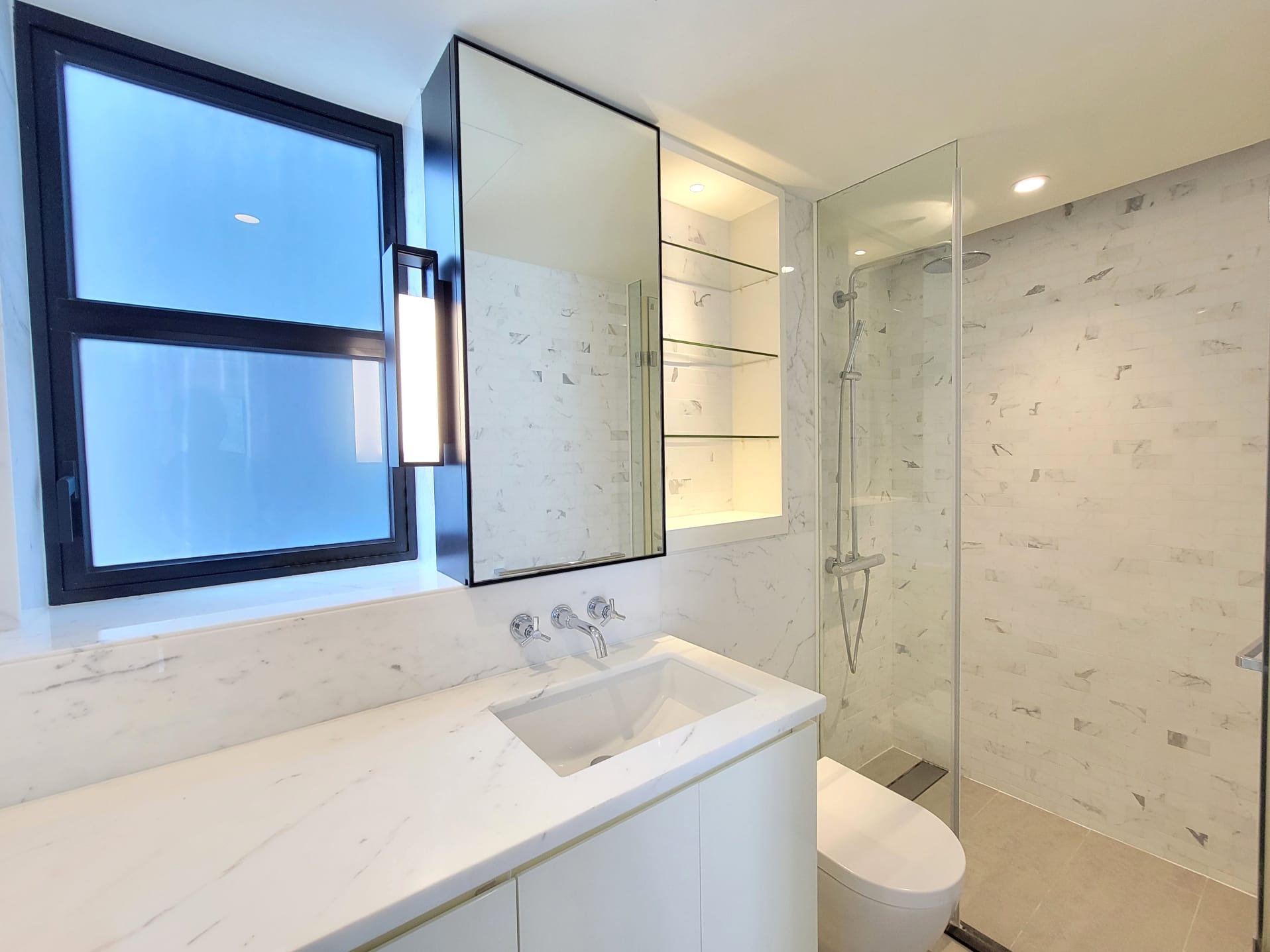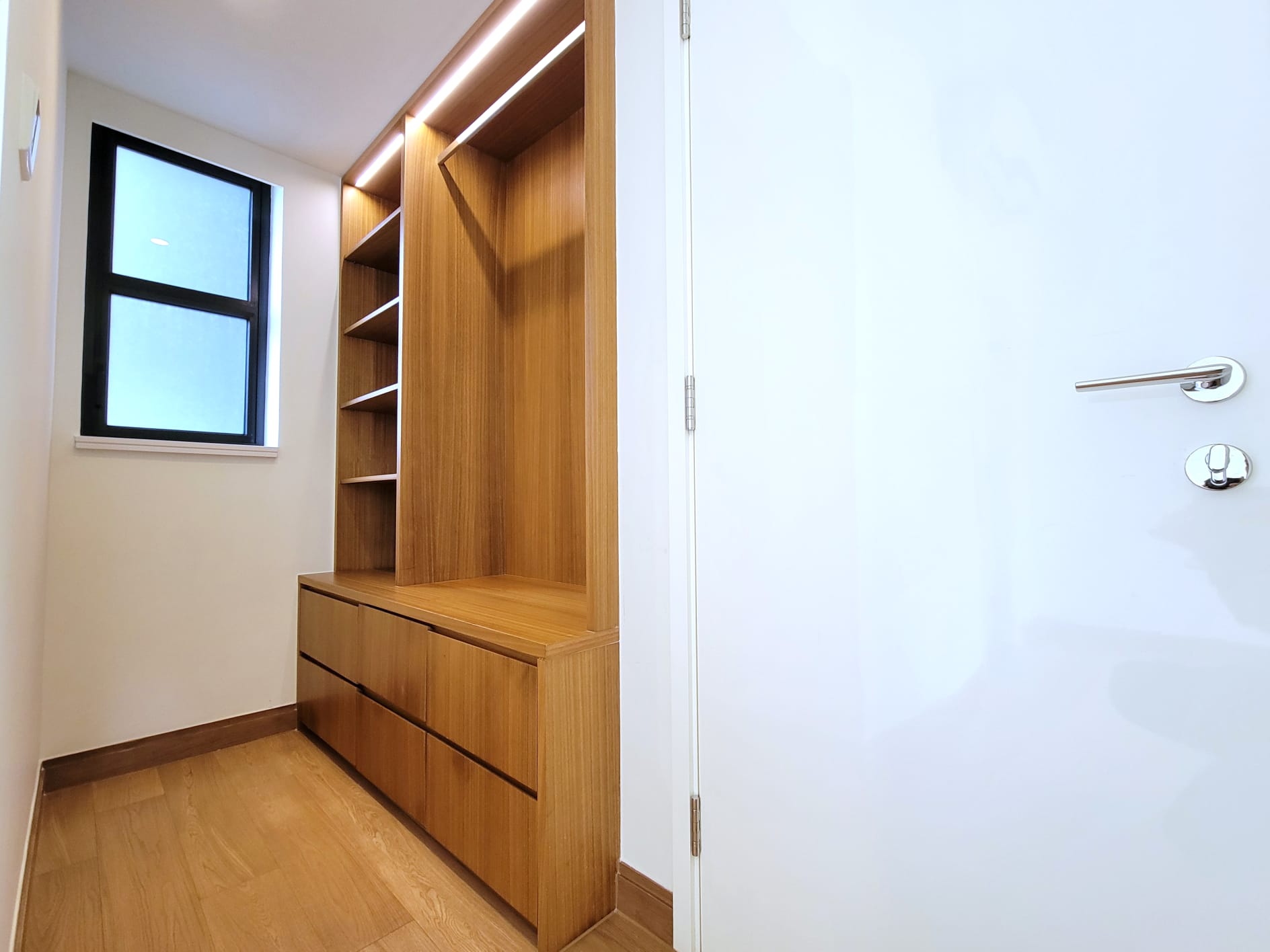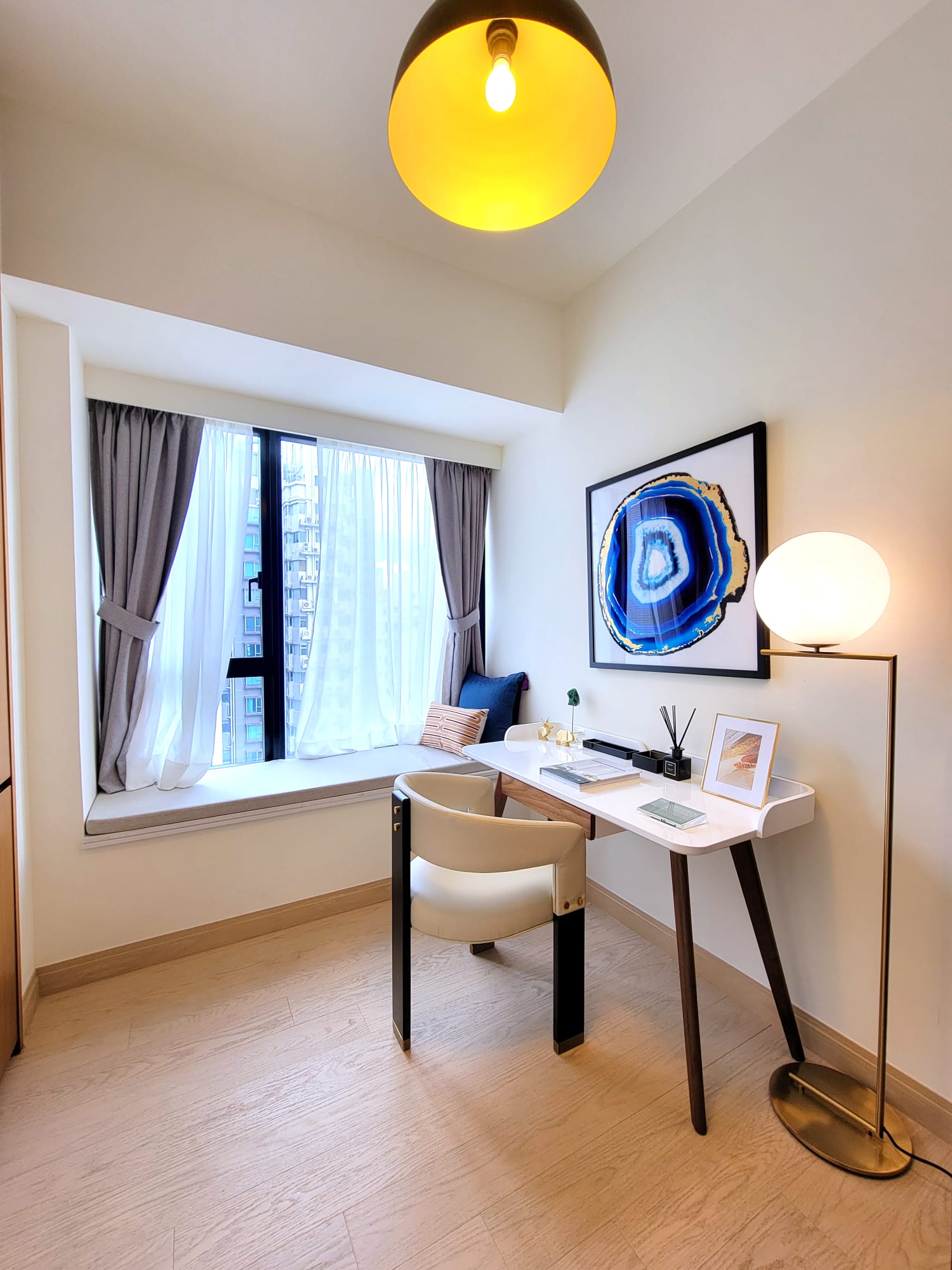 單位的客飯廳與睡房均為同向,主人睡房特設特大窗戶廣納室外景觀及自然光線。主人睡房空間感十足,放置雙人床後仍可三邊落床,並特別預留位置擺放大型衣櫃,同時連接約16方呎工作平台。