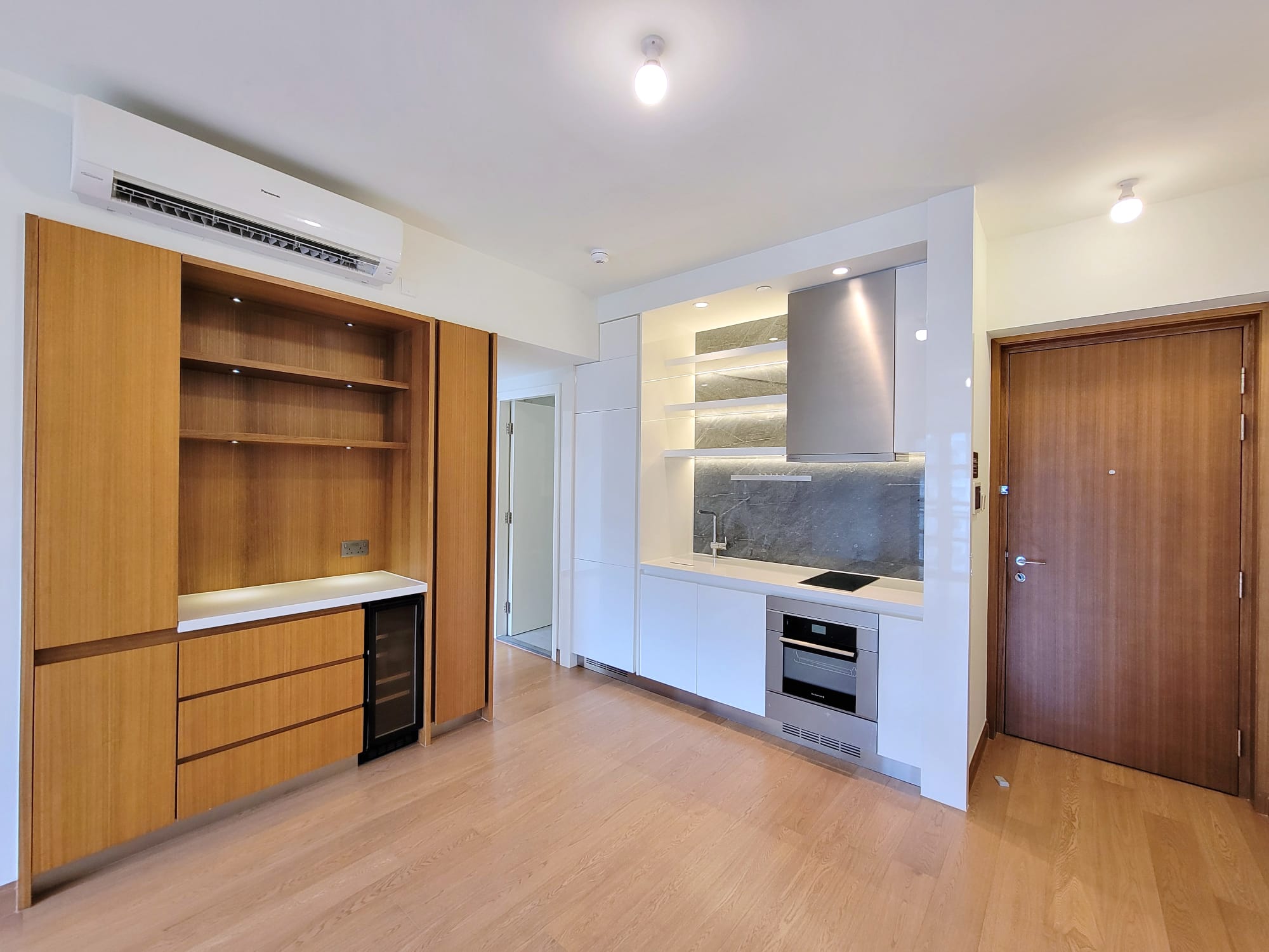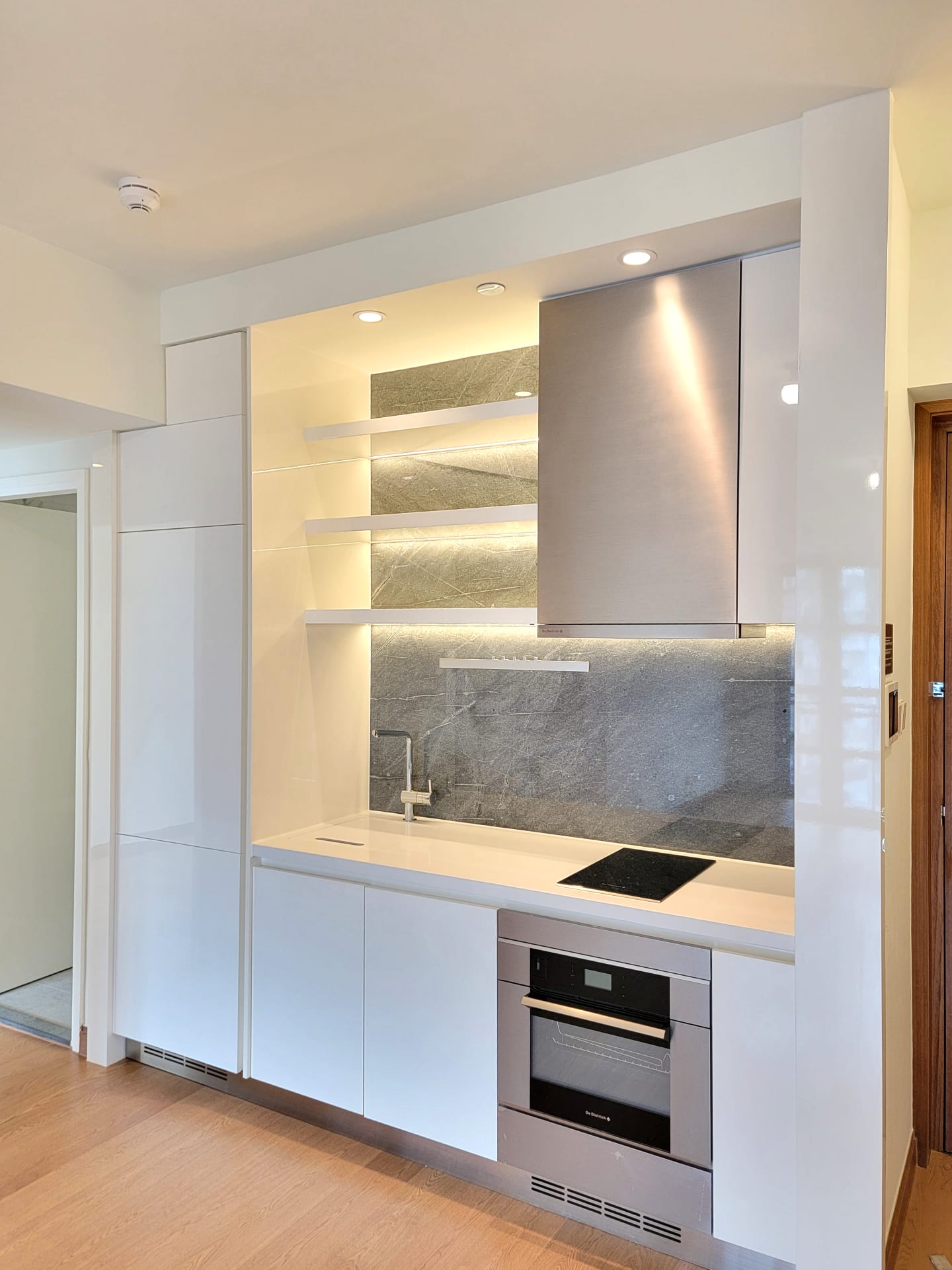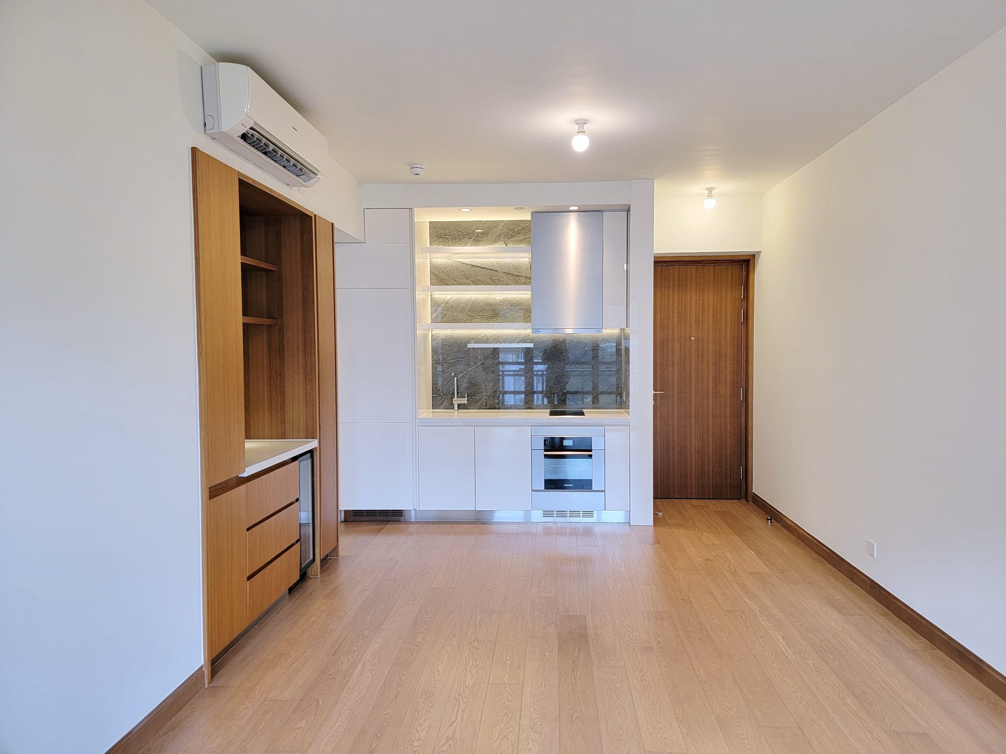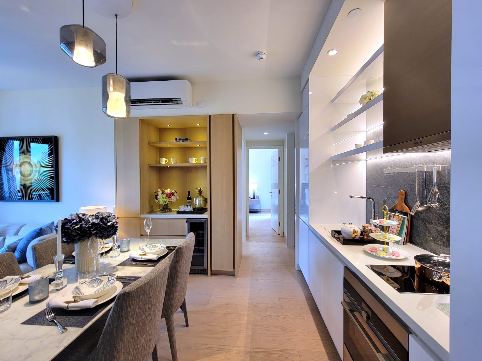 另外,開放式廚房配備多款名牌家電,包括高級法國廚具品牌De Dietrich的電磁爐、抽油煙機、雪櫃、蒸焗爐、洗衣乾衣機,以及Vinvautz酒櫃。