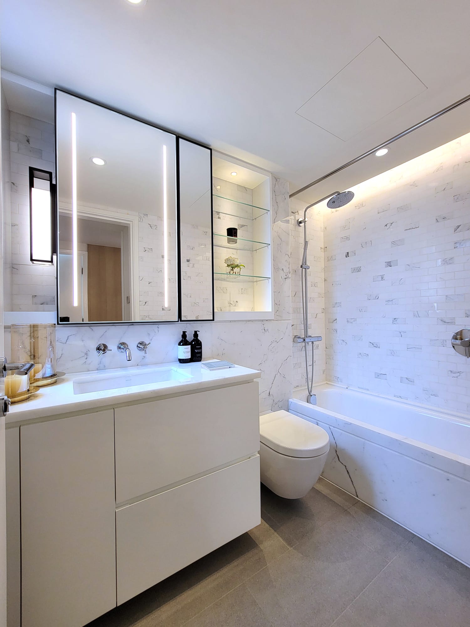 開放式廚房設備齊全、配備多款名牌家電,包括高級德國廚具品牌Siemens的電磁爐、抽油煙機、雪櫃、蒸焗爐及洗衣乾衣機;另更設有法國Vinvautz酒櫃。另外,浴室牆身採用歐洲高級雲石,備有美國著名品牌KOHLER的洗面盆及德國品牌Duravit的坐廁等。