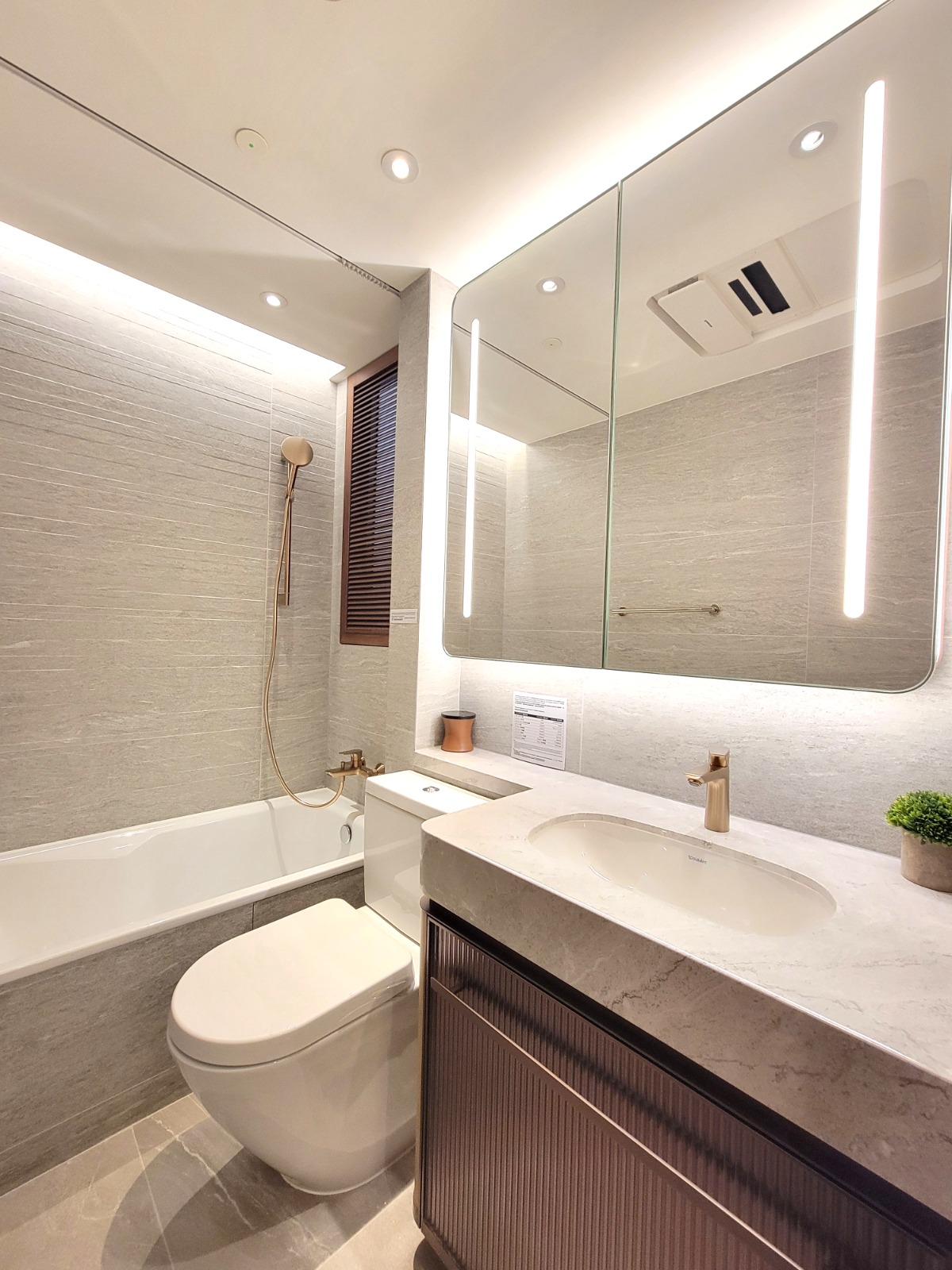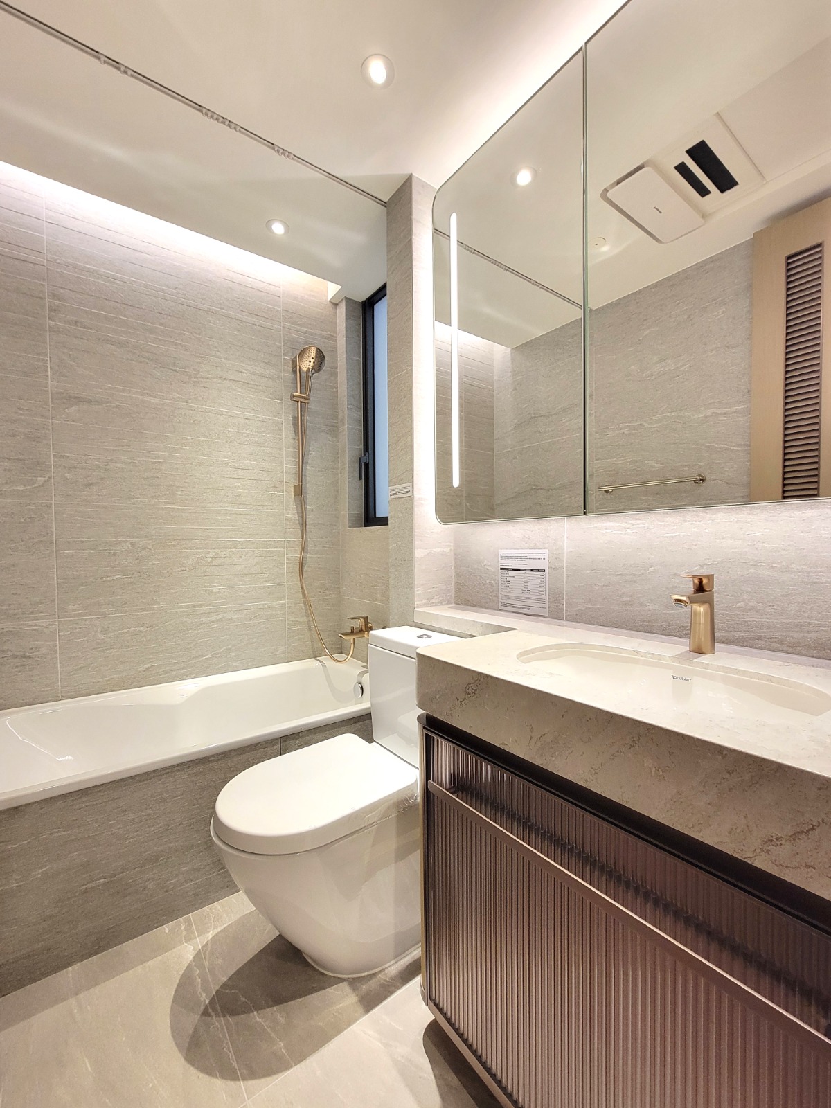 浴室採明廁設計,浴缸並選用國際知名品牌Hansgrohe洗手盆水龍頭及花灑套裝、TOTO坐廁、URAVIT洗手盆及Panasonic換氣暖風機。另外,大門採用LOCKLY智能電子門鎖,設有3D指紋認証、專利PinGenie防窺視電子觸控屏幕及智能門鈴等多項功能。