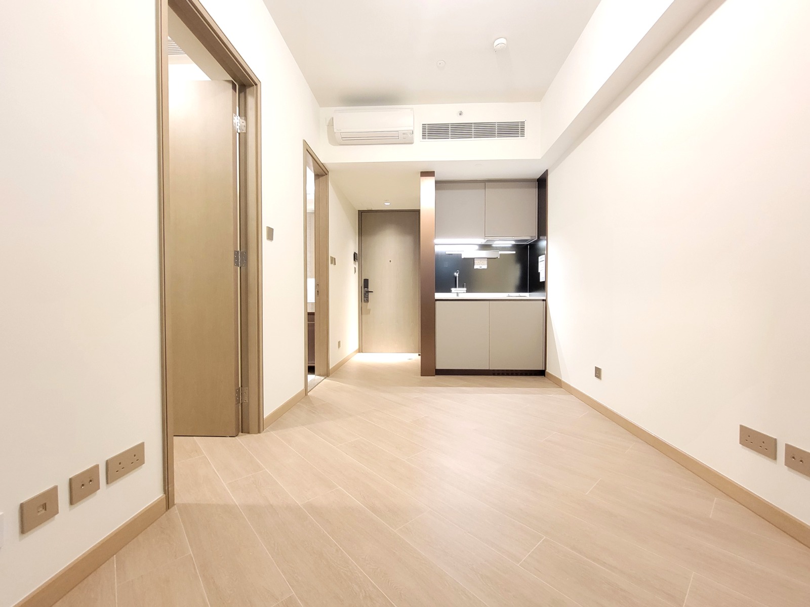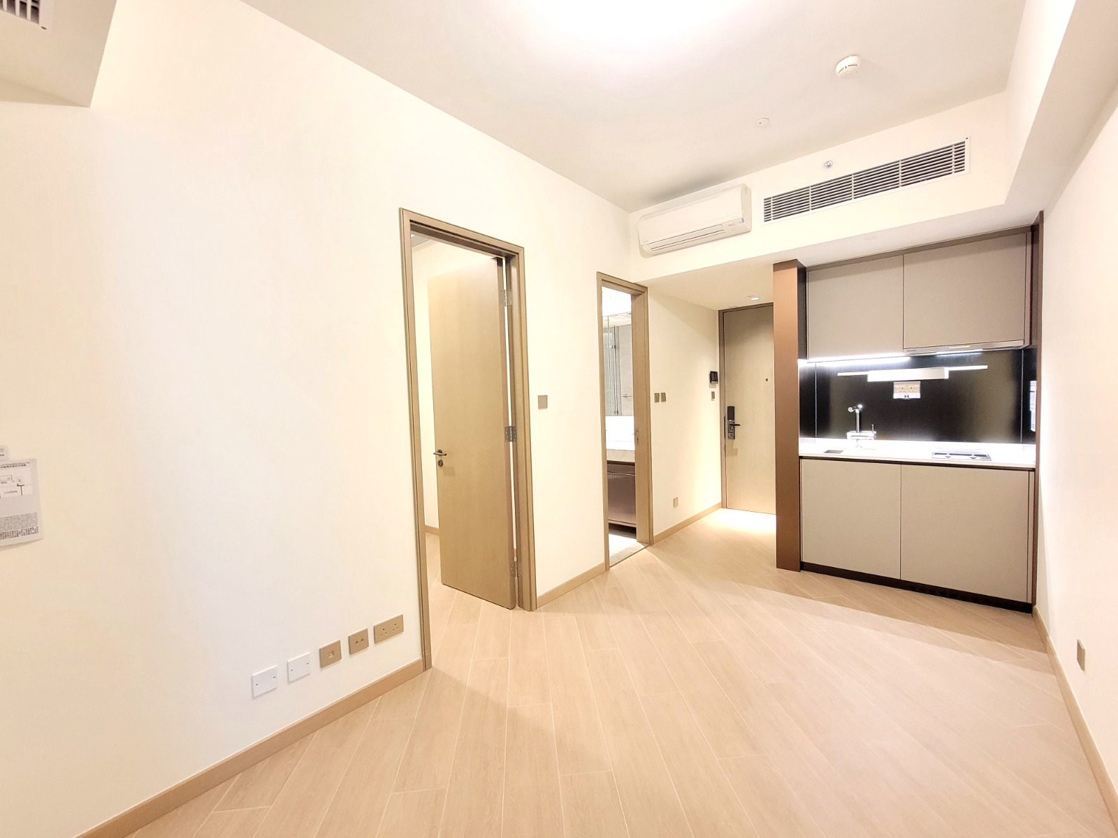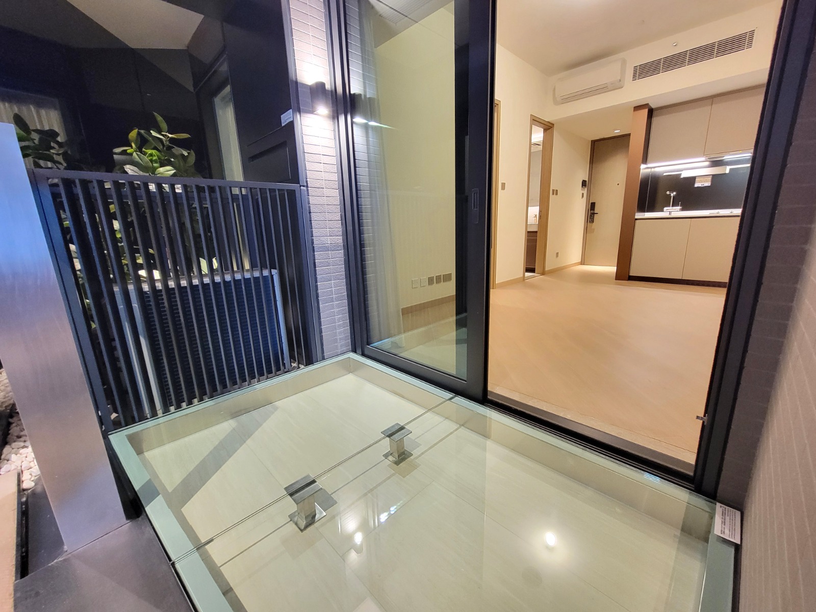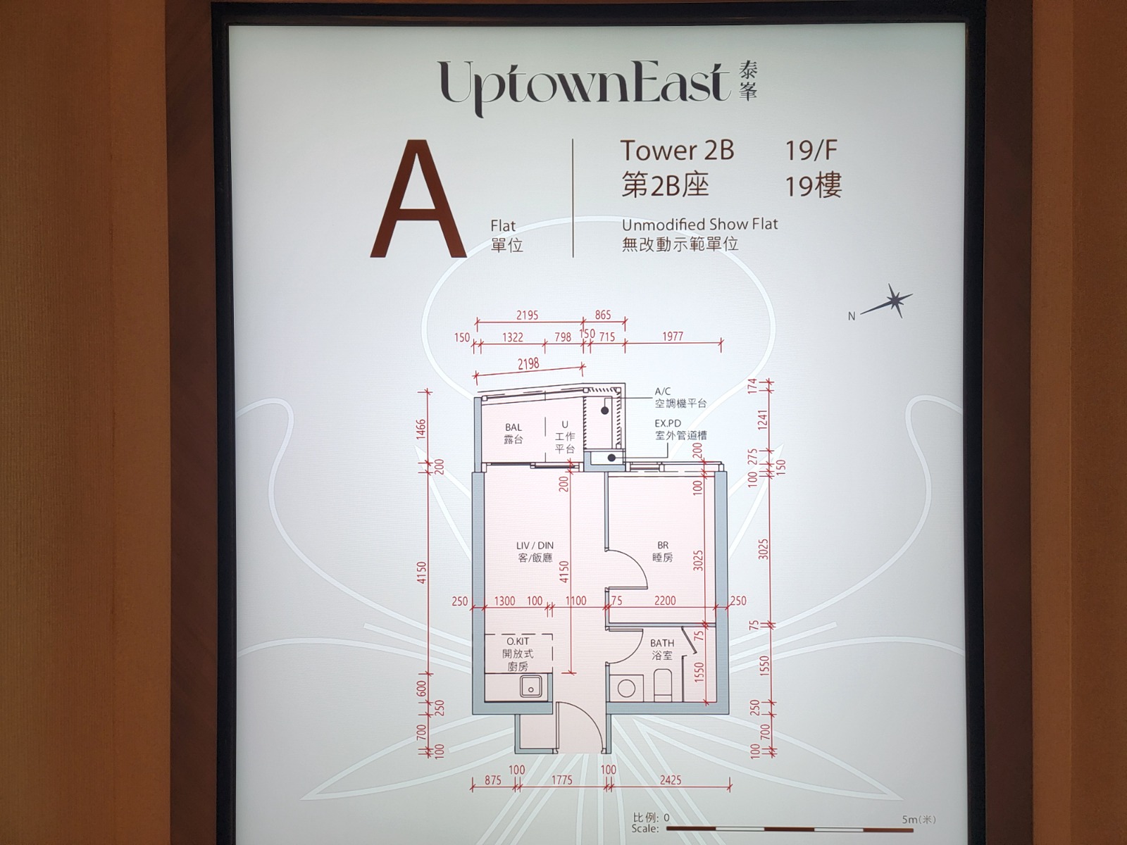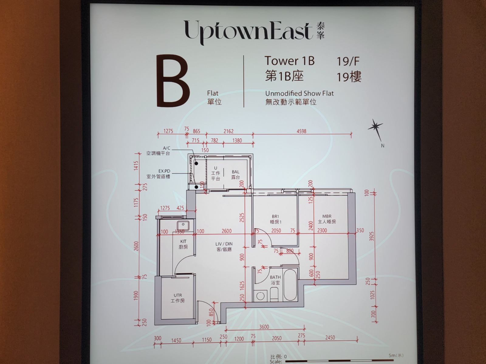 以第1B座19樓B室為藍本搭建的兩房無改動示範單位,實用面積550方呎。大門配備LOCKLY智能電子門鎖,單位屬連工作間間隔,長型客飯廳長達5米、闊約2.6米,間隔涇渭分明。大廳外接約22方呎露台及約16方呎工作平台,可享開揚都市景致。單位設計廳房同向,主人睡房空間充裕,長約4米、闊約2.3米,可供擺放衣櫃及書桌及雙人床,睡房均設有大型窗戶,有助採光及通風。
