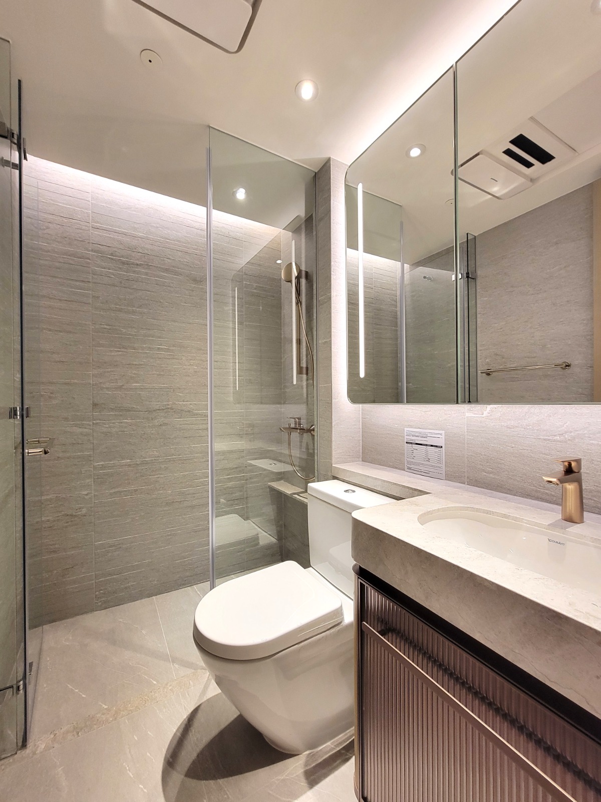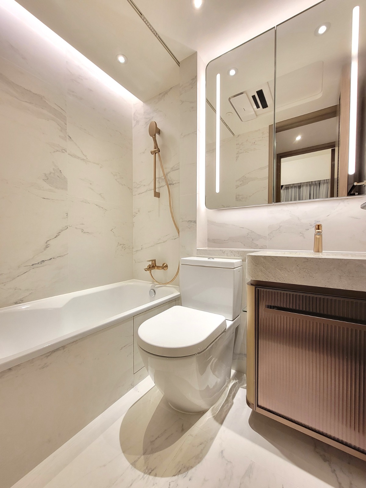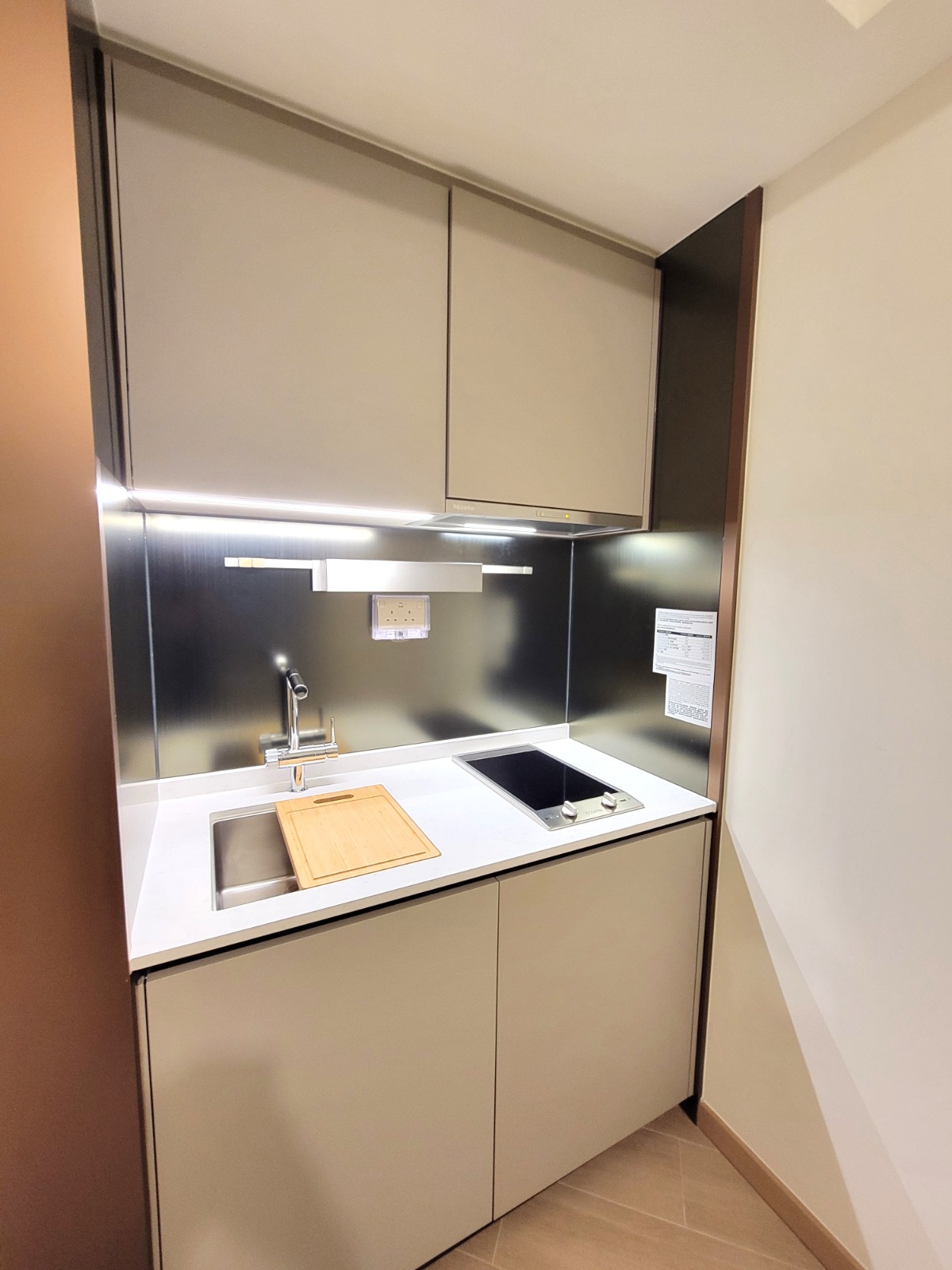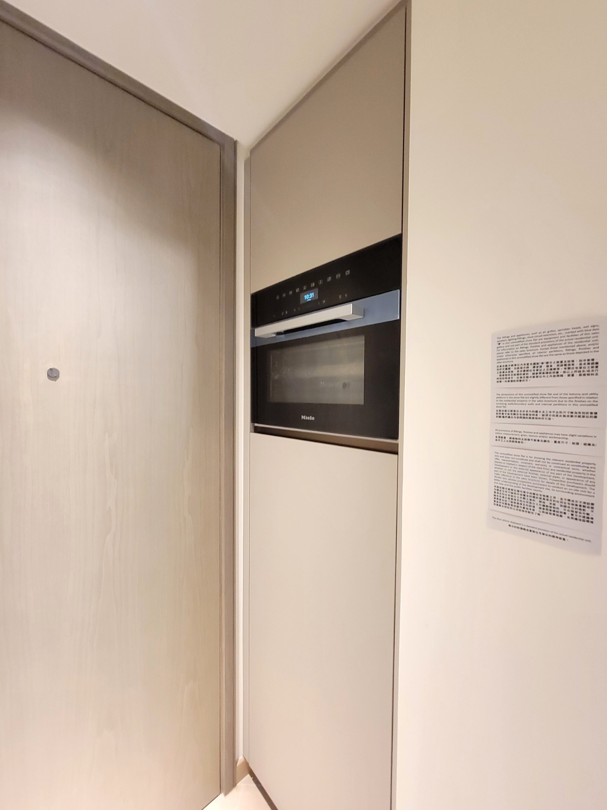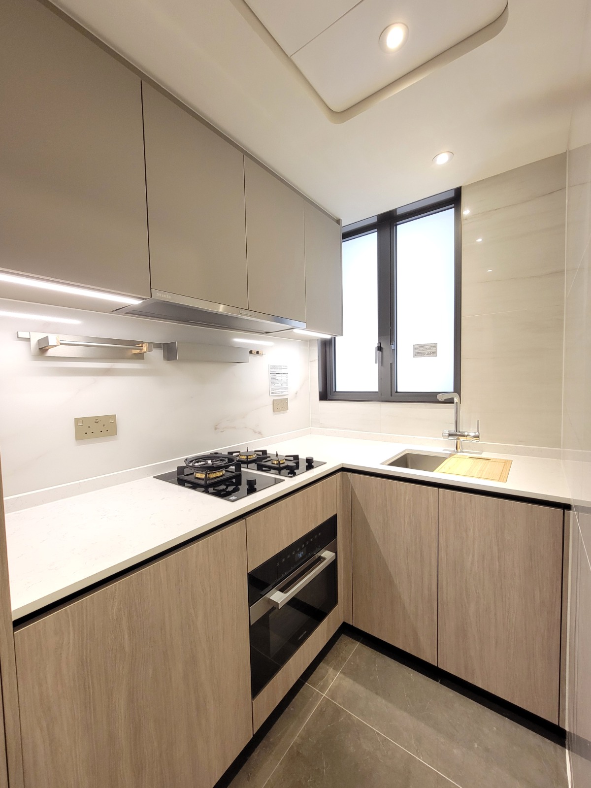 單位屬梗廚設計,廚房更設有大窗,同時配備一系列經典歐洲名牌廚具,包括Miele SmartLine煮食爐、蒸焗爐、嵌入式雪櫃連冰箱及纖巧型抽油煙機,以及配備西門子嵌入式洗衣乾衣機。浴室除選用TOTO坐廁、DURAVIT洗手盆,以及Panasonic換氣暖風機外,亦設浴缸及國際知名品牌Hansgrohe洗手盆水龍頭及花灑套裝。