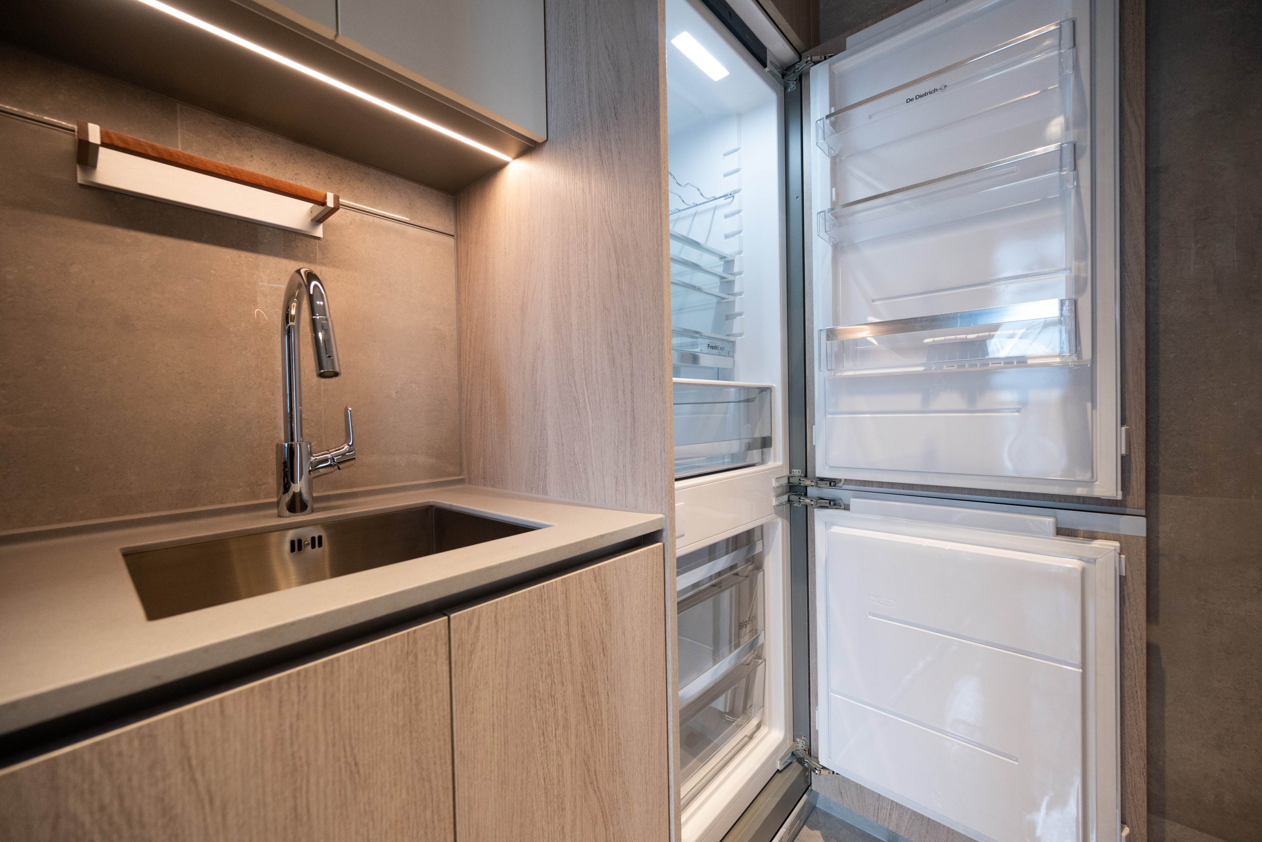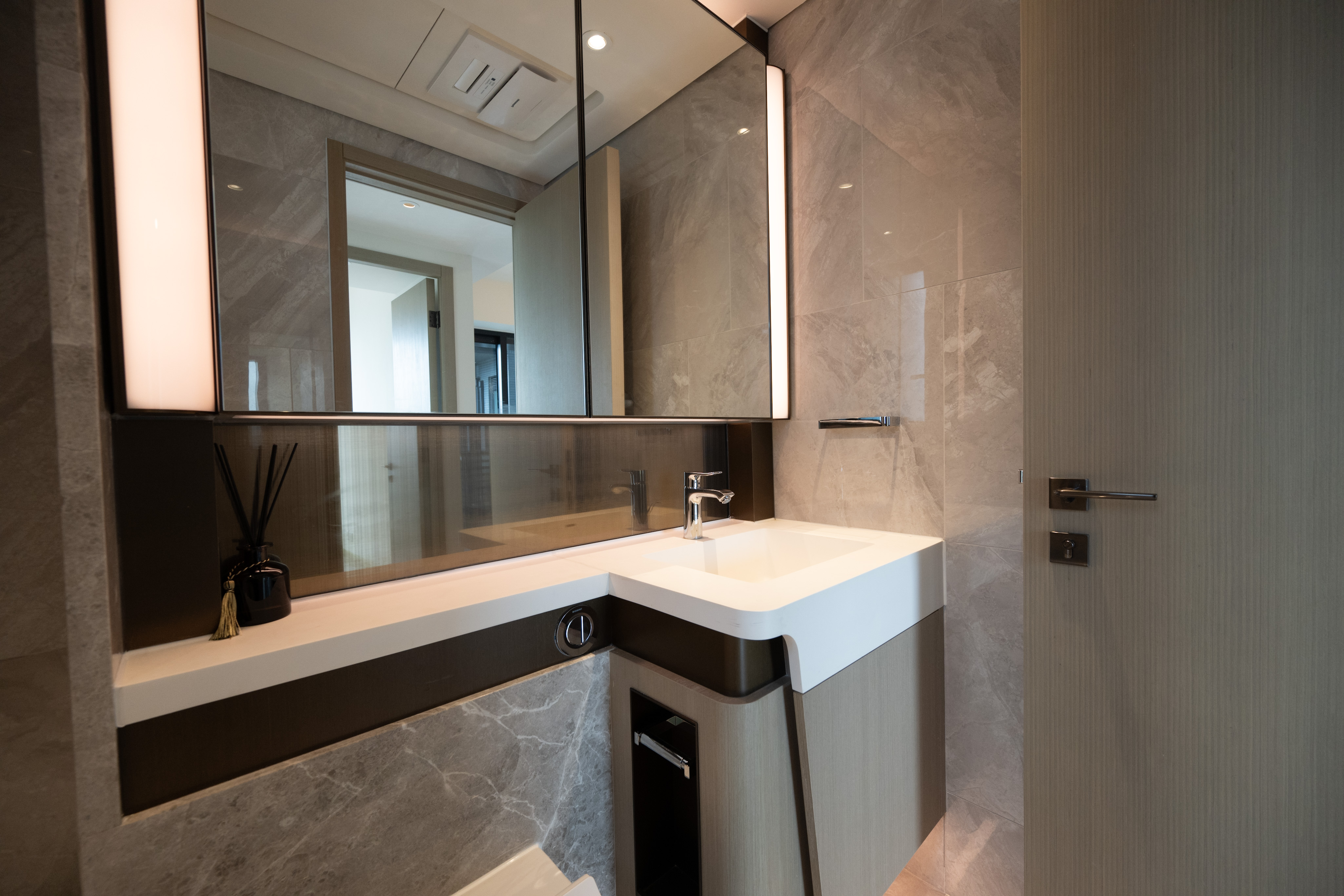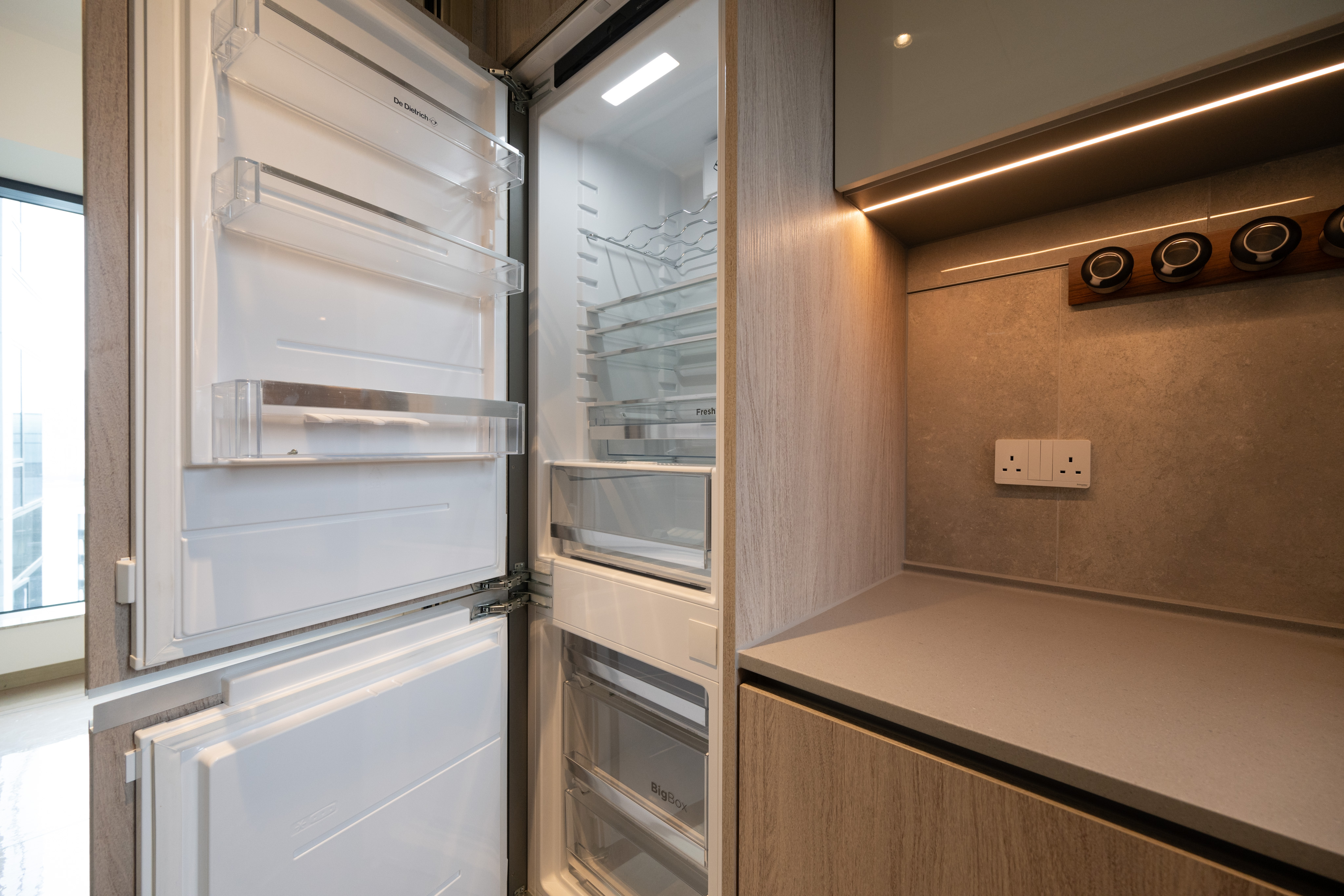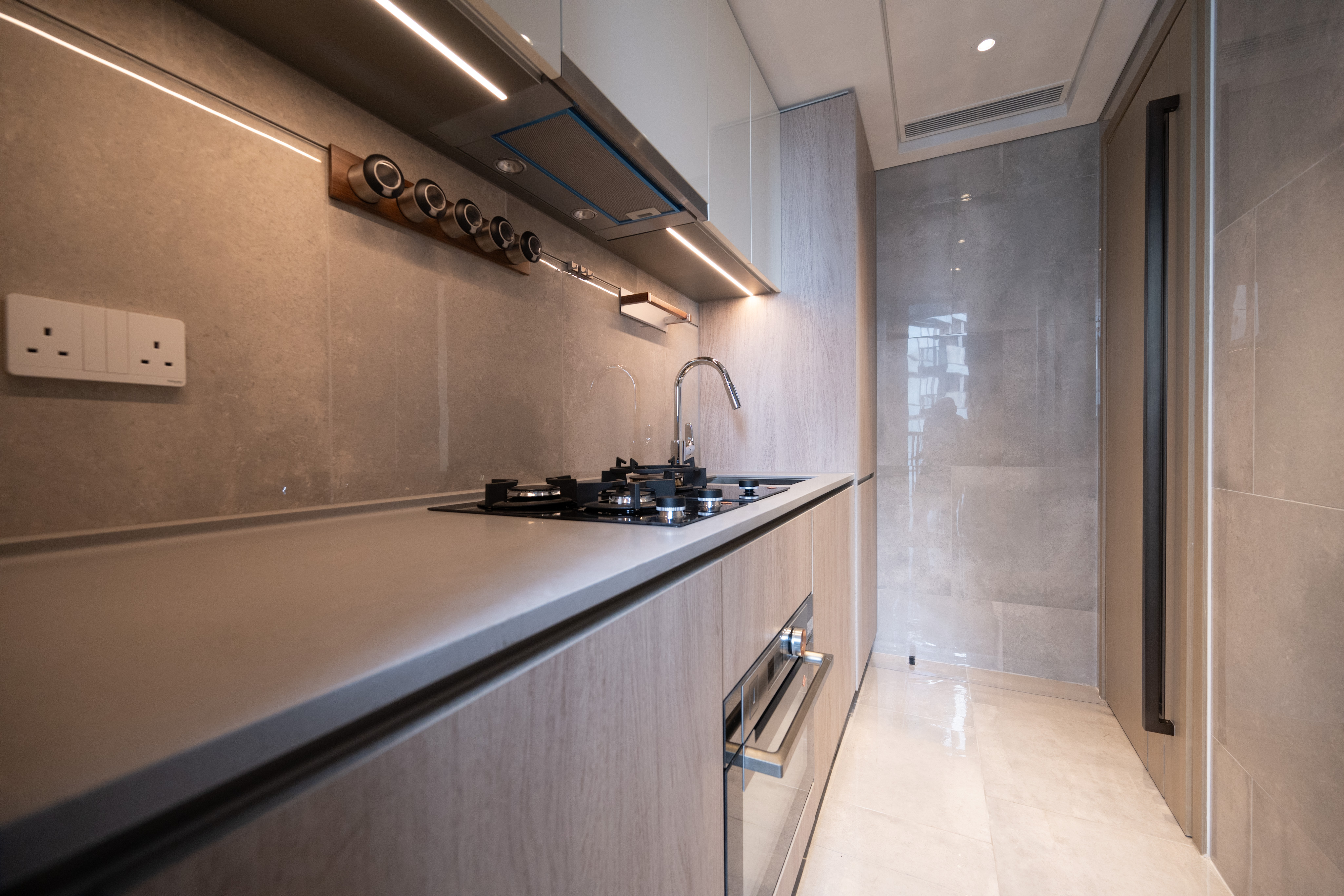 睡房1可擺放衣櫃及睡床等傢俱,空間寬敞。睡房2設有曲呎大窗,視野遼闊,增強採光。單位設有獨立廚房並外連工作平台,方便引入鮮風煮食。廚房設有直排長身廚櫃,櫃底設有LED燈帶,入廚時光線充足,牆身設有掛鈎及吊架,櫃內設有內置垃圾桶,布局與細節設計均以用家角度出發。酒店式浴室設有窗戶,可以採納鮮風入戶。除了設有兩房戶少有的浴缸外,浴室櫃亦有充足的儲物空間及電掣位。
