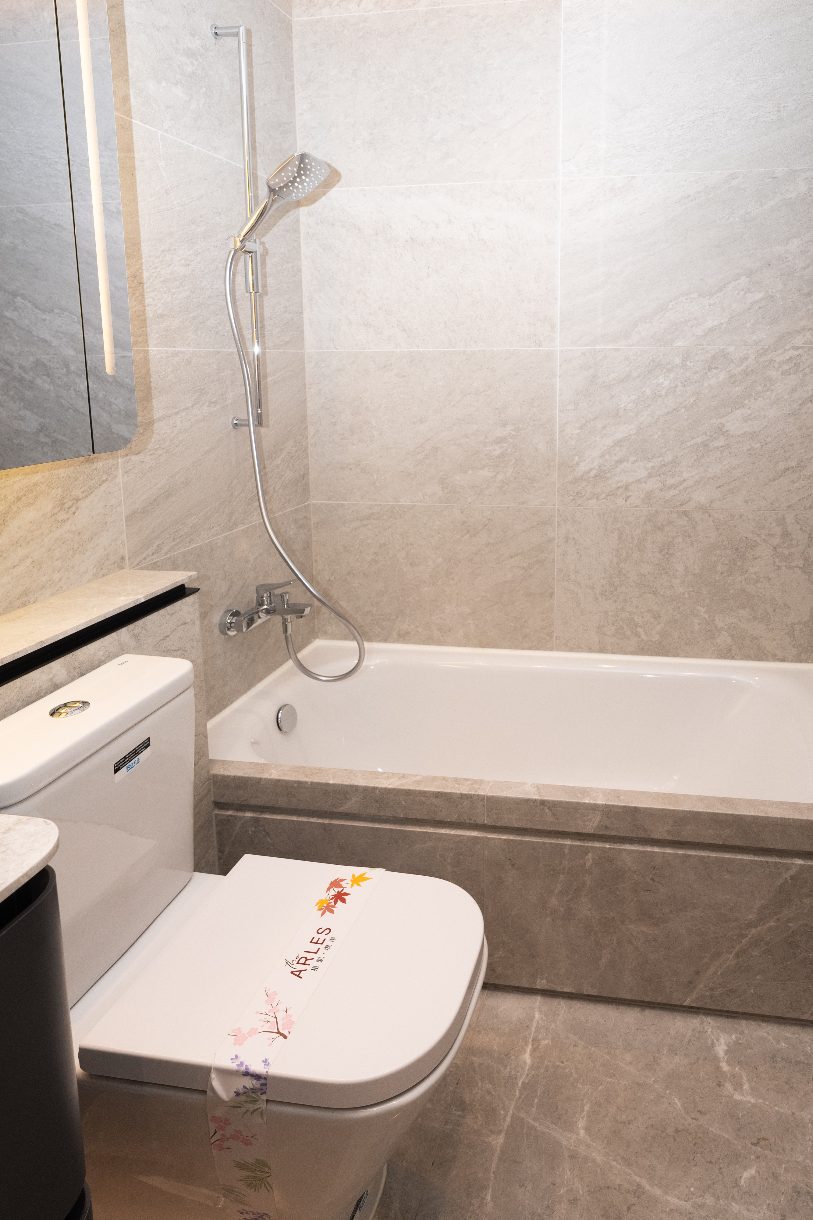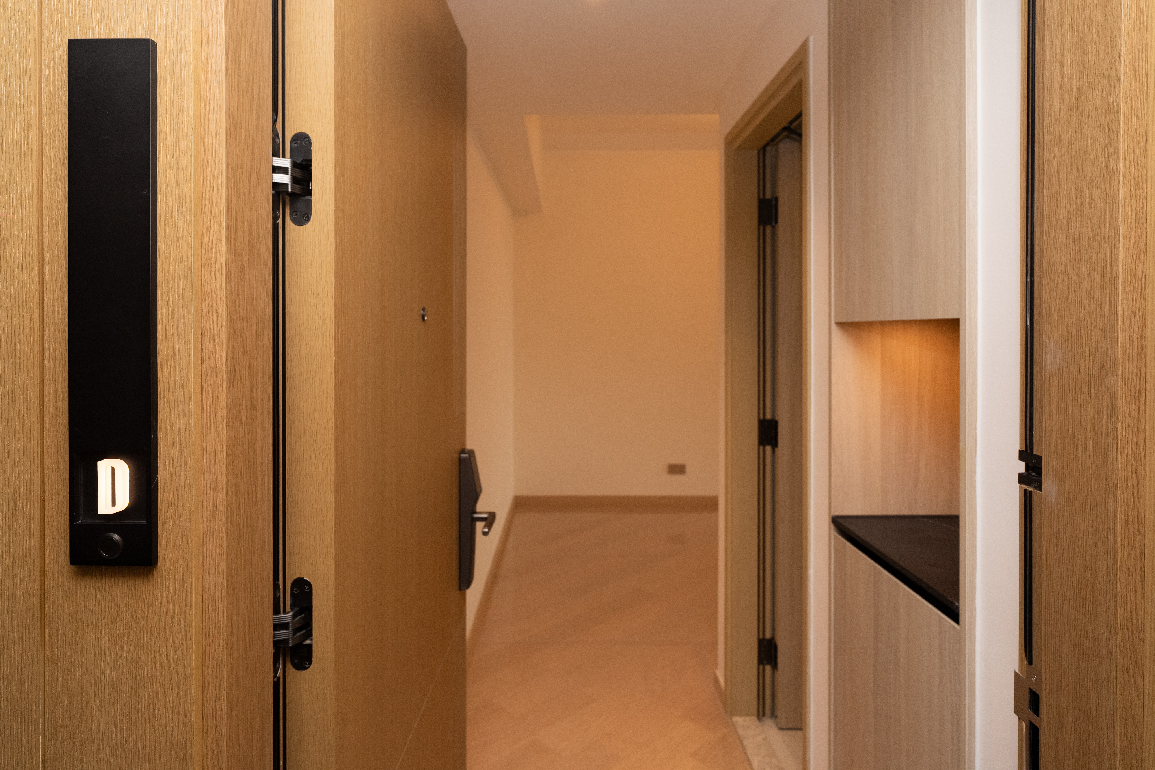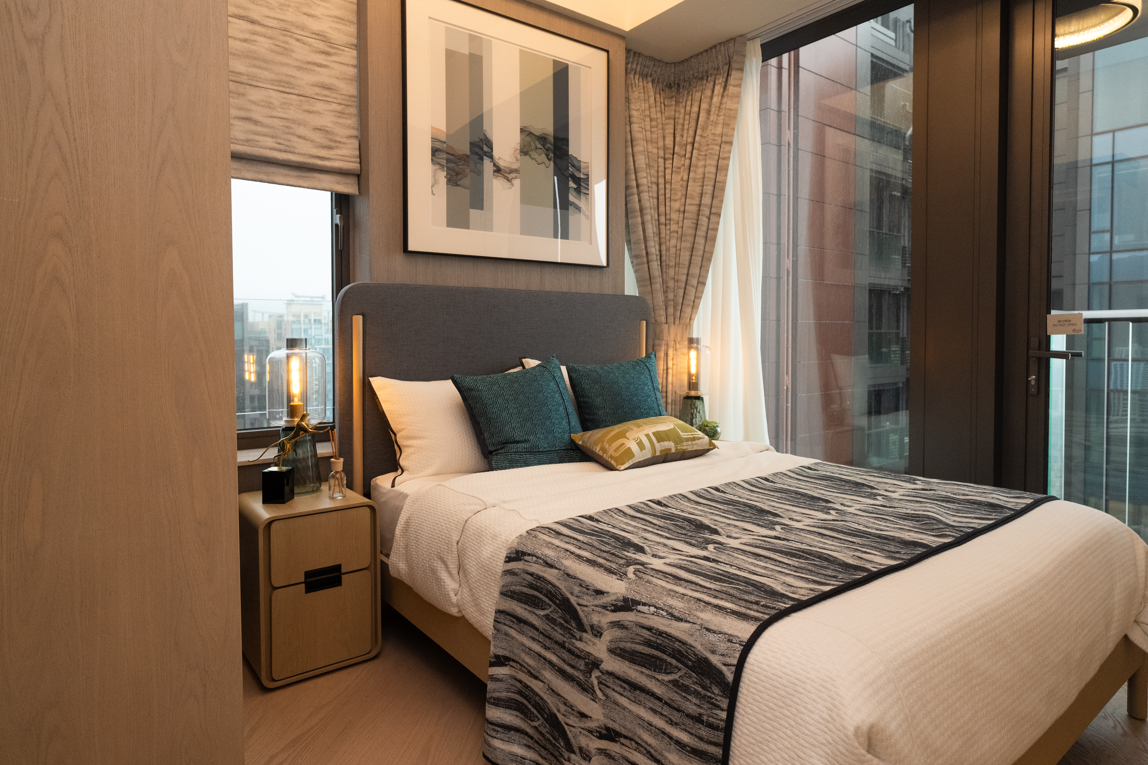 寢區則設有三個房間及一個儲物室,當中主人房空間寬敞且外接工作平台,主人房與睡房同向,同享開揚沙田及城門河美景;而睡房2則可享部分馬場景致。浴室設有浴缸,可享私人休閒空間外,更設有智能鏡,可提供多項功能,包括瀏覽天氣、新聞、交通情況,查看日程提醒甚至屋苑通告。