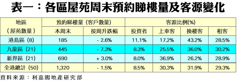 撤辣效應加持 新盤攻勢頻頻 50指標屋苑周末預約睇樓量微跌1.5%