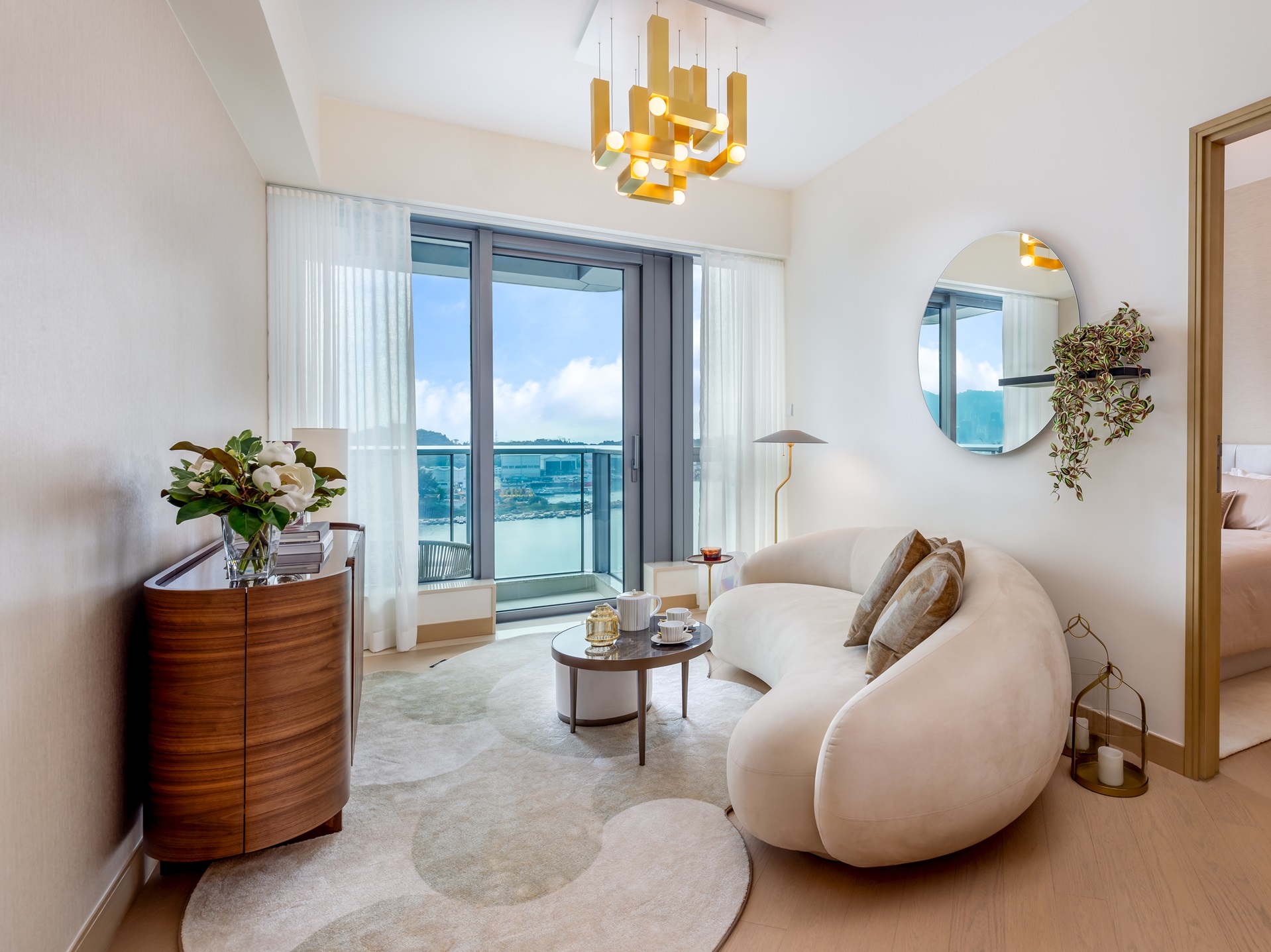 「維港滙III」今日(21日)開放1個連傢私示範單位,為第1A座15樓B室,實用面積1,001方呎,三房連套房及多功能房連洗手間間隔。單位以輕奢遊艇風為設計概念,大量採用弧形線條的傢私,並利用金屬及銅等材質配搭木材,映襯窗外開揚海景與和煦日光,營造遊艇上的度假氣氛。