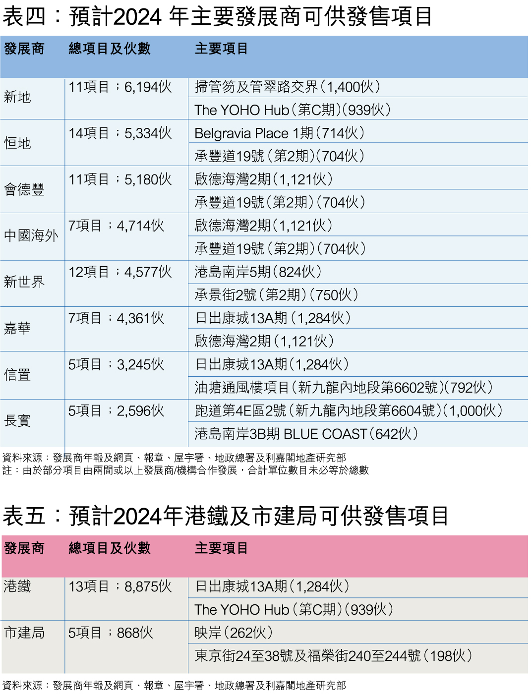資料來源:發展商年報及網頁、報章、屋宇署、地政總署及利嘉閣地產研究部
