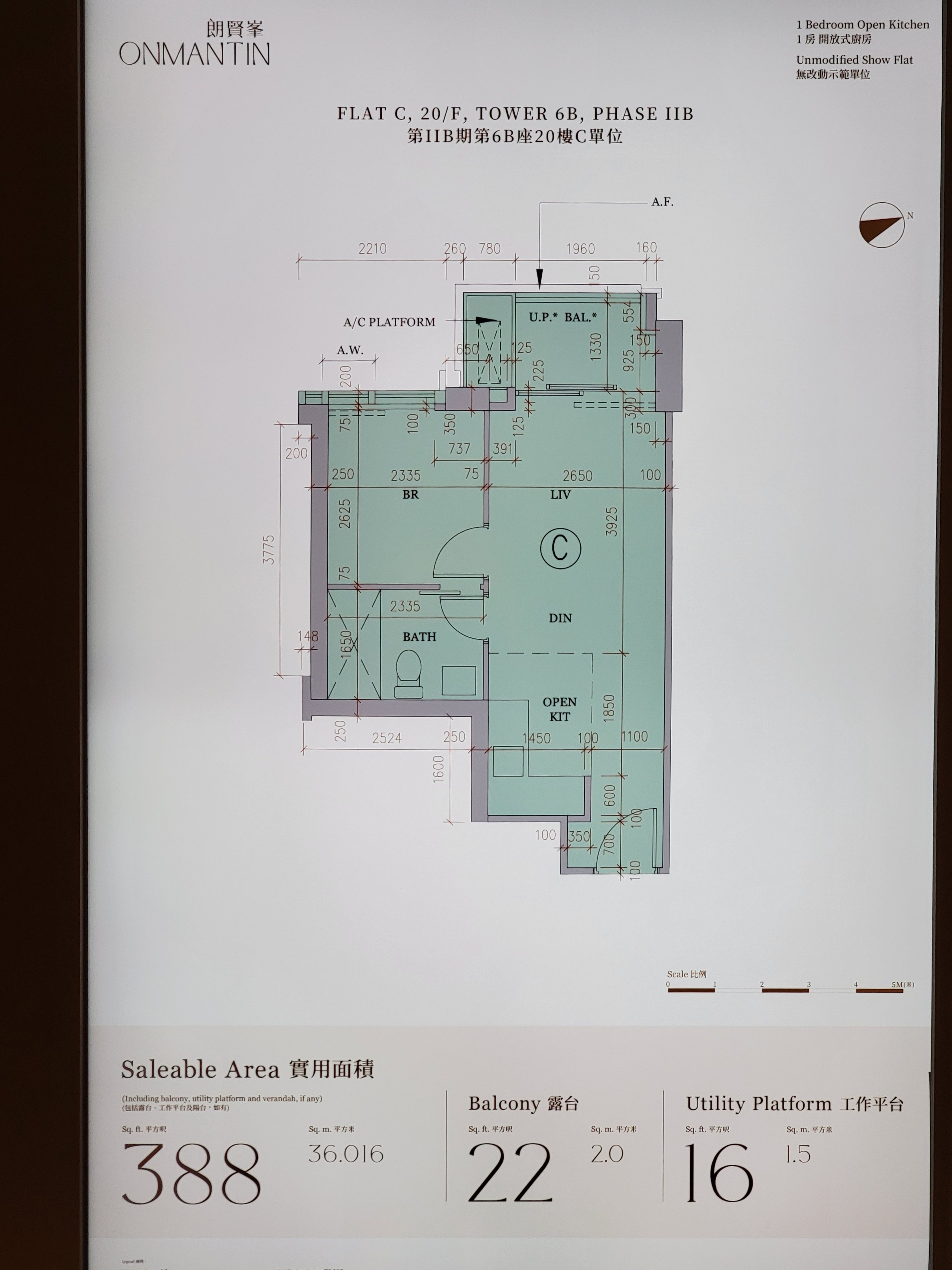 港鐵何文田站上蓋壓軸大型住宅項目、鷹君集團與港鐵合作發展的「朗賢峯」分為IIA期及IIB期發展,由5座24層高的住宅大樓組成,合共提供990伙。發展商提供一房開放式廚房無改動示範單位,以IIB期6B座20樓C室為藍本搭建,實用面積388方呎。