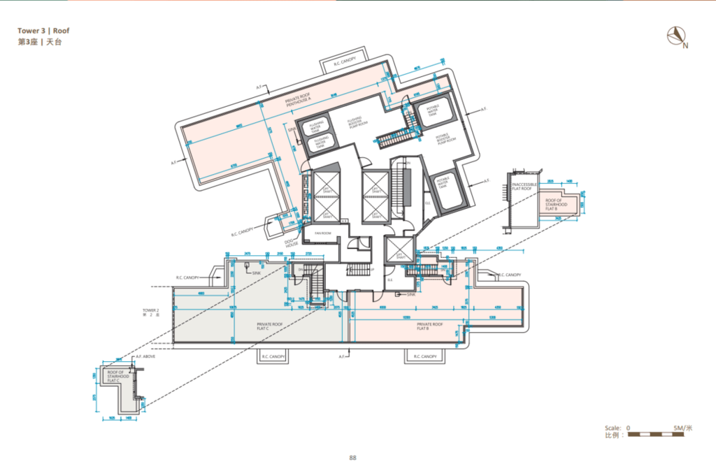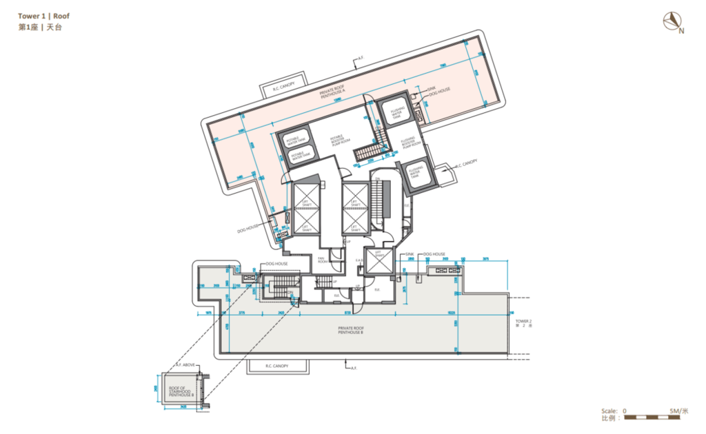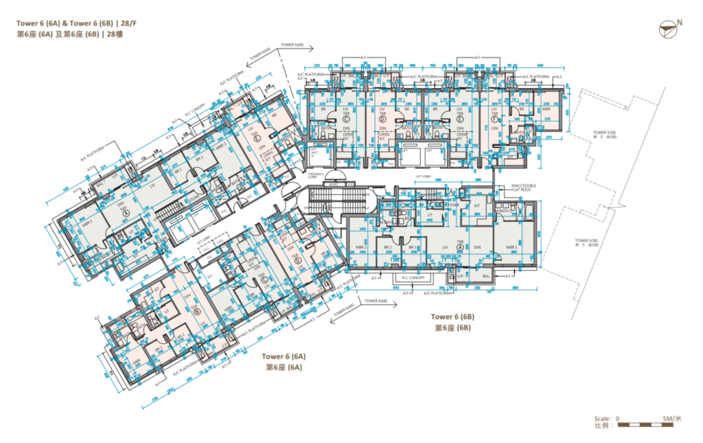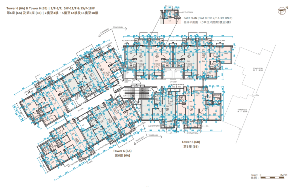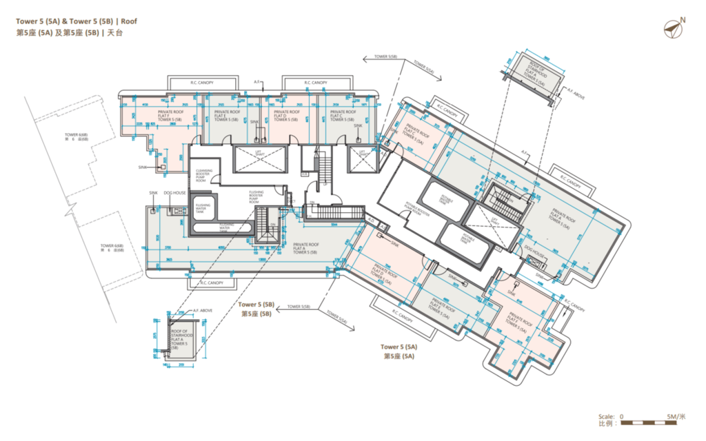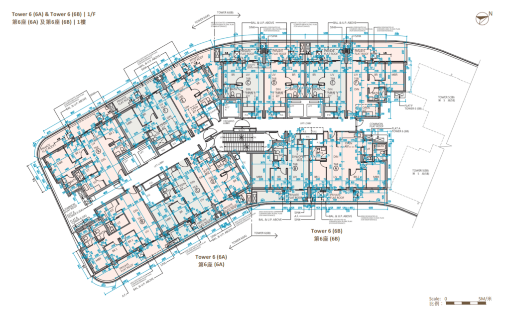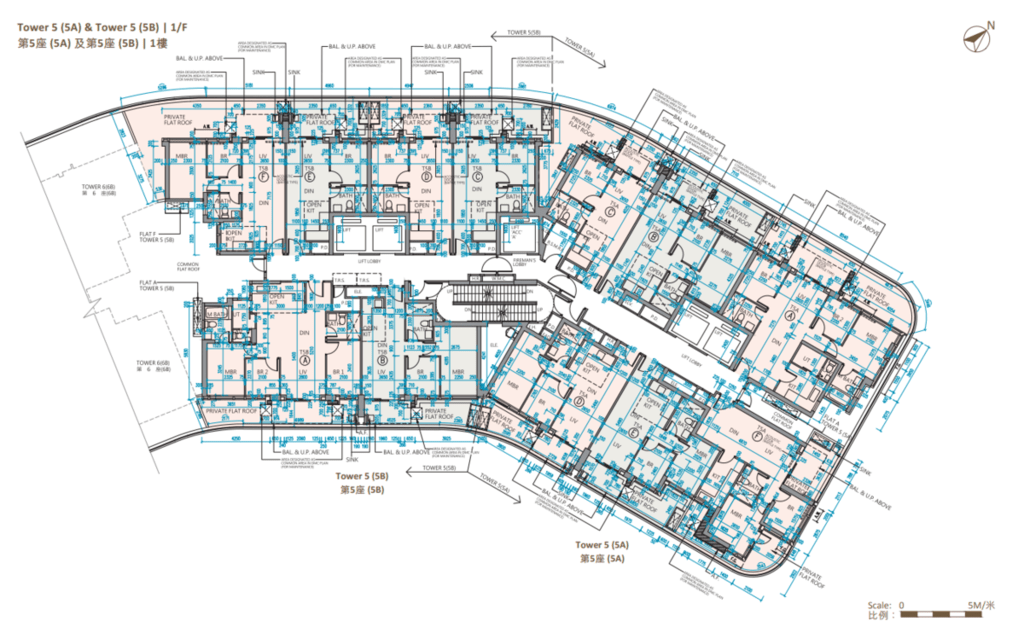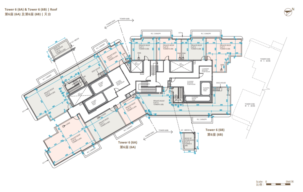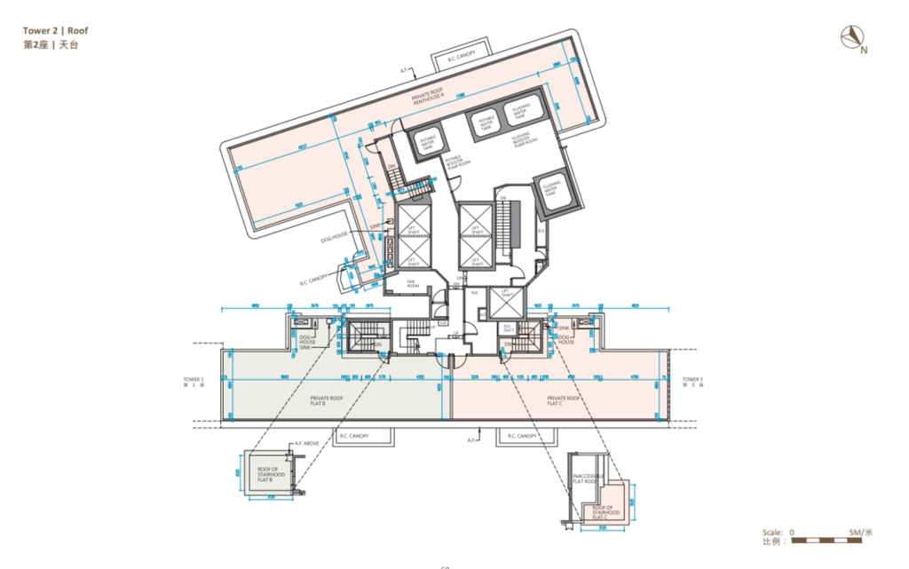 值得一提的是,除第IIB期第5A座、第5B座及第6B座28樓C至F室,以及第6A座28樓B至E室外,其餘連天台單位的天台,均由內置樓梯連接。
