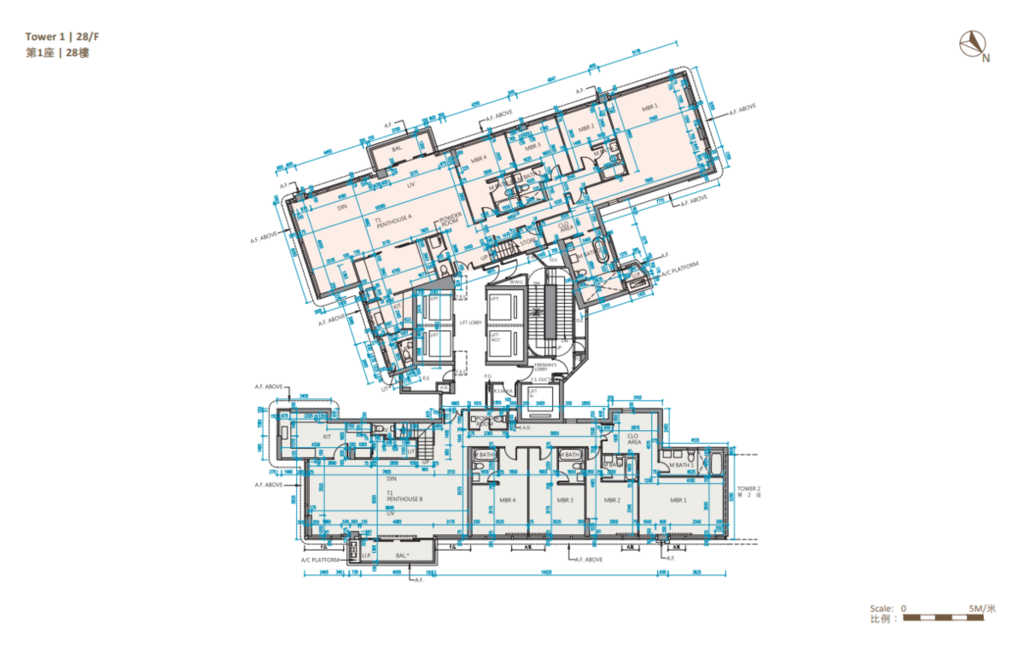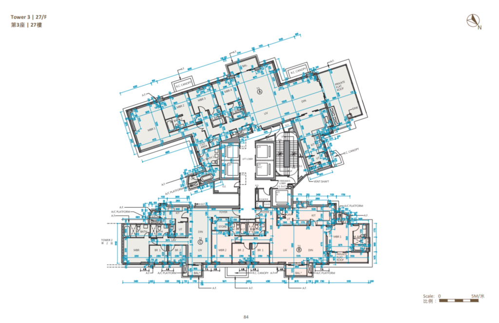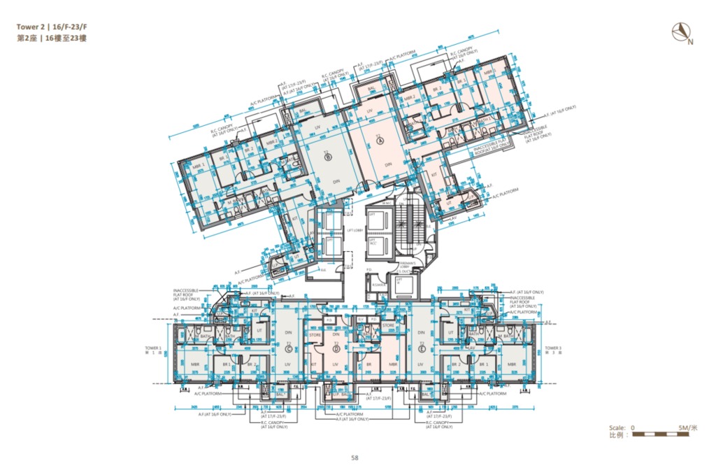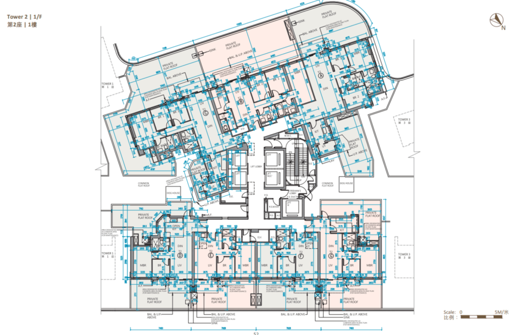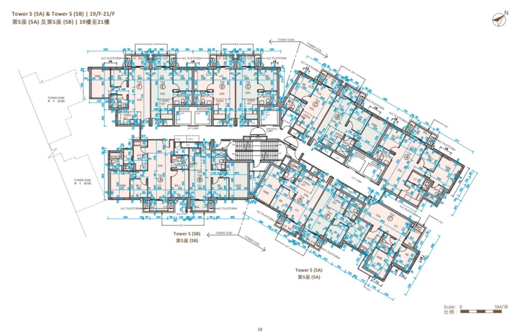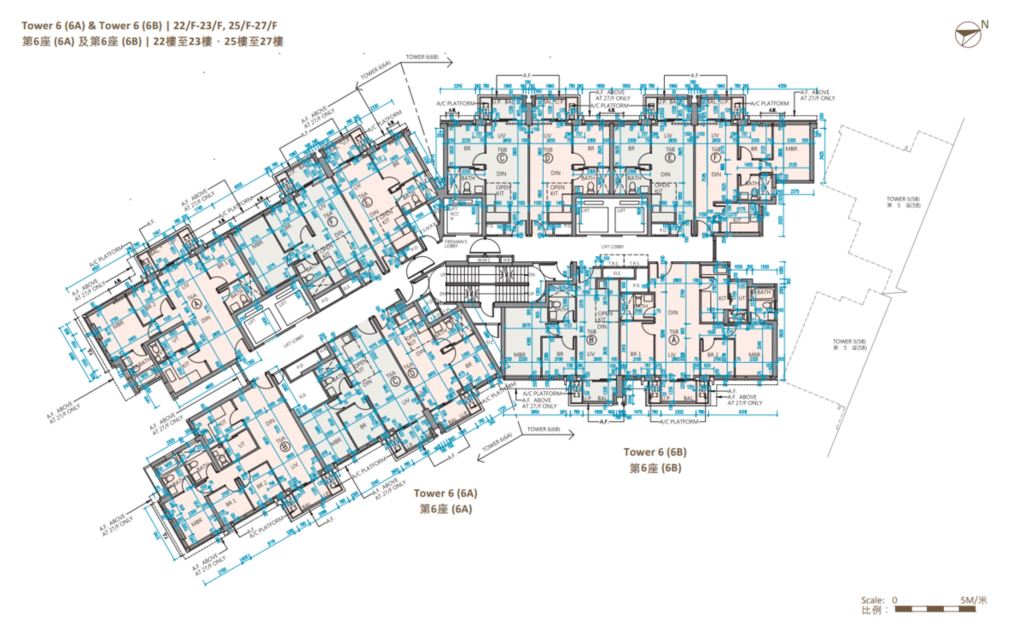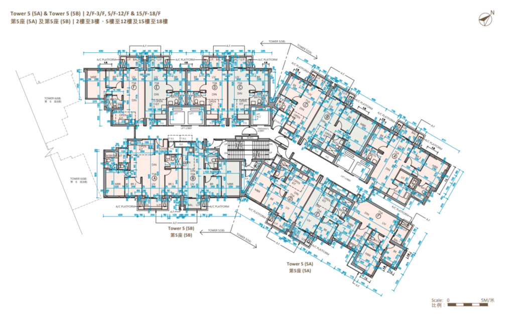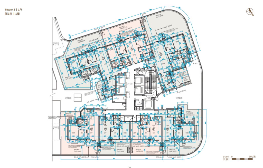 值得一提的是,除第IIB期第5A座、第5B座及第6B座28樓C至F室,以及第6A座28樓B至E室外,其餘連天台單位的天台,均由內置樓梯連接。