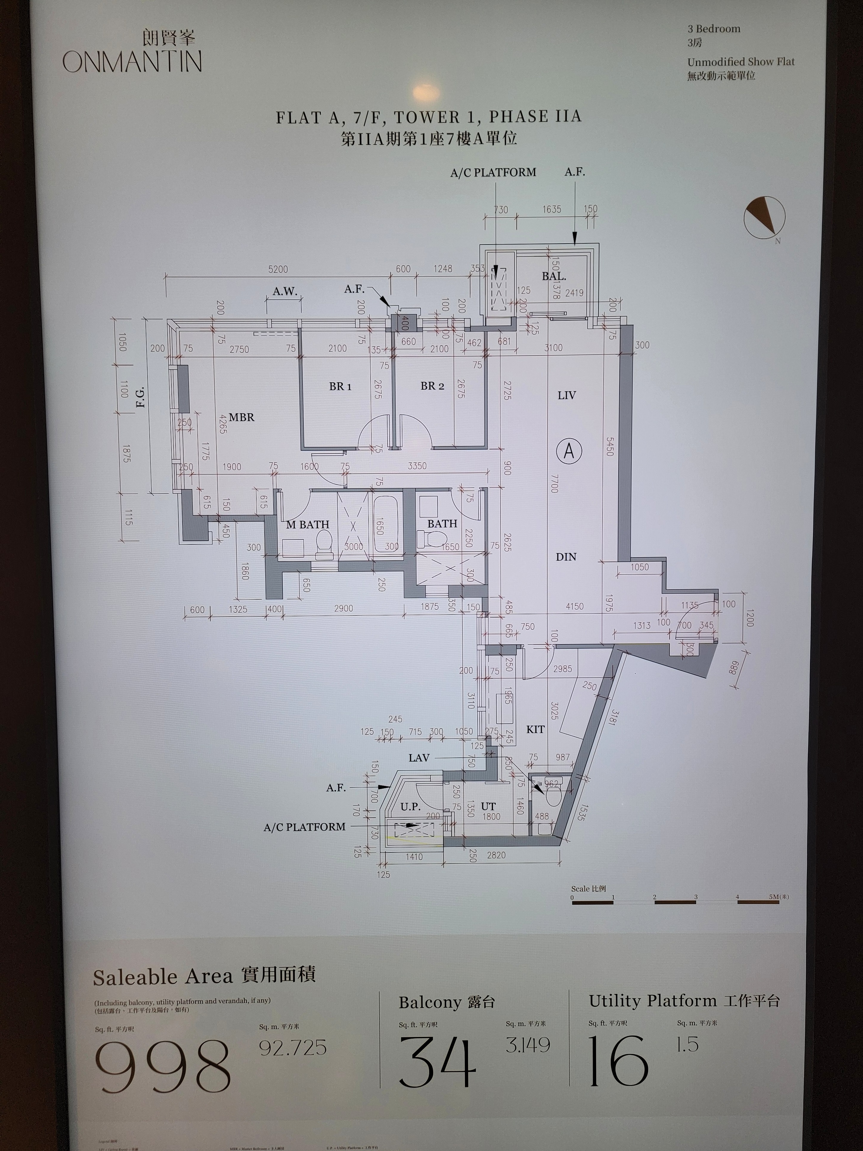 港鐵何文田站上蓋壓軸大型住宅項目、鷹君集團與港鐵合作發展的「朗賢峯」分為IIA期及IIB期發展,由5座24層高的住宅大樓組成,合共提供990伙。發展商提供三房一套連工作間的無改動示範單位,以IIA期1座7樓A室為藍本搭建,實用面積998方呎。單位向南,層與層之間的高度達3.3米,空間感十足。